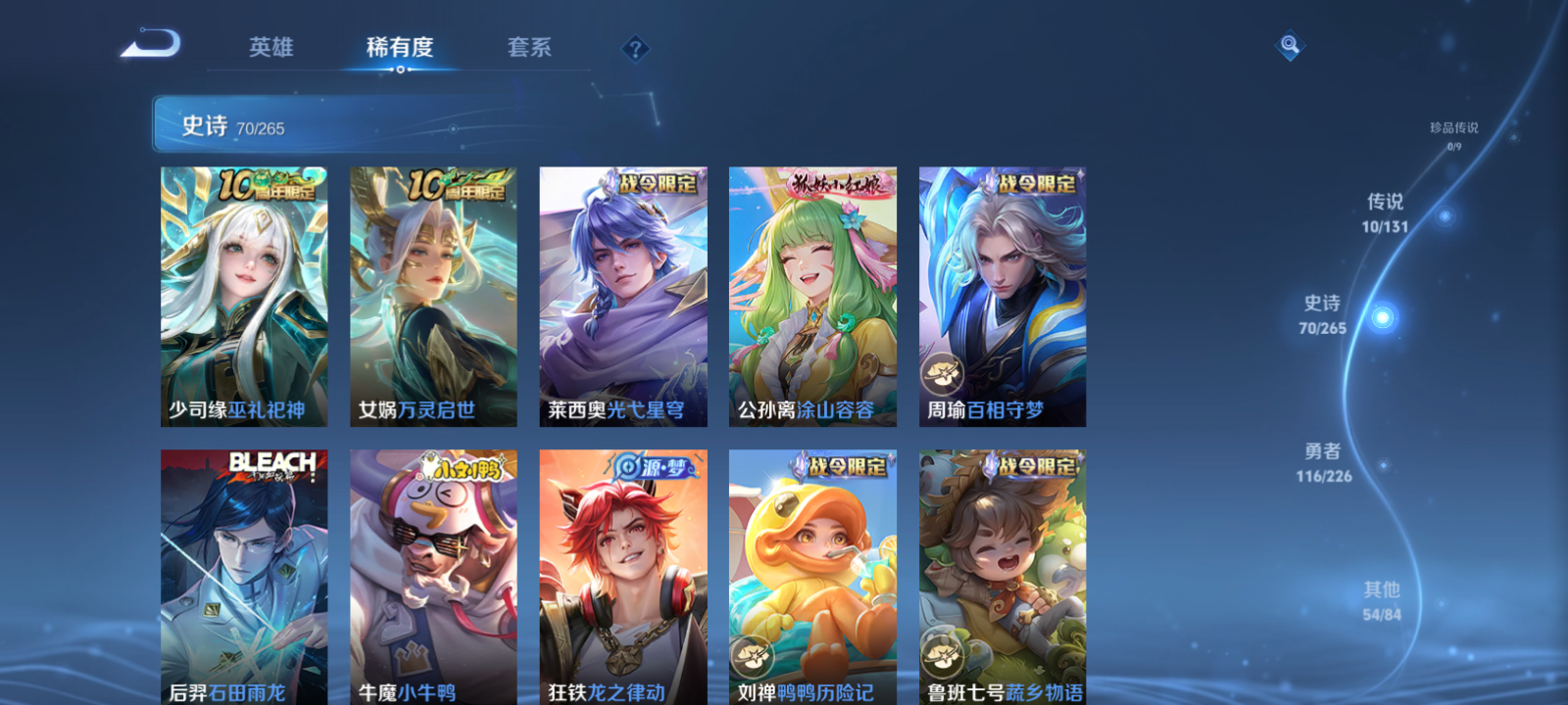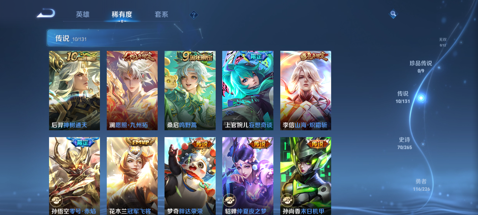 【王者荣耀】【lywz21766】珍品无双0 典藏1 无双0 珍品传说0 传说10 史诗70 英雄126 皮肤251 贵族7级 荣耀典藏:星域神启__传说皮肤:鸣野蒿|胖达荣荣|仲夏夜之梦|冠军飞将|孙尚香-末日机甲|零号·赤焰|妄想奇谈|山海·炽霜斩|愿照·九州拓|神树通天__稀有限定:奔雷神使|蔷薇恋人|女儿国国王|傲雪梅呛|冰霜恋舞曲|大漠名商|繁星吟游|高山流水|古海寻踪|海滩派对|海盐诗旅|皇家上将|混沌棋|剑破天穹|金庭之子|狂想玩偶喵|黎明之约|魔术师|女武神|奇幻香踪|千军破阵|擒涛扼浪|穷奇|驱傩正仪|燃音魔法|荣光圣徽|沙漠行僧|探海日志|醍醐杖|天狼狩猎者|天穹祈灯|万华元夜|演武夺筹|疑决卦|阴阳师|银河之约|驭风魔法|御銮|云间偶戏|暗隐猎兽者|缤纷独角兽|冰冠公主|冰雪圆舞曲|乘风破浪|乘龙·聚宝船|大乔-猫狗日记|德古拉伯爵|地狱岩魂|电玩小子|伽罗-琥珀纪元|功夫厨神|鬼剑武藏|节奏热浪|金属风暴|乐园奇幻夜|李元芳-蔬乡物语|龙骑士|吕布-末日机甲|魅力维加斯|女仆咖啡|圣诞狂欢|鲁班七号-蔬乡物语|水果甜心|水晶猎龙者|孙策-猫狗日记|天才门将|天秀·启明|晚萤|赵云-未来纪元|星夜王子|摇滚巨星|鹰眼统帅|幽灵船长|逐浪之夏|紫霞仙子|噬灭天穹|虞姬-夏日便利店|天穹之誓|曙光守护者|心灵战警|千年之狐|孙尚香-时之恋人|舞动绿茵|特工魅影|心灵骇客|谧流熔炉|御霄|烛龙|原初探秘者|云中旅人|玲珑珍味|灵卜魔法|苍威无极|刘禅-鸭鸭历险记|沈梦溪-鸭鸭历险记|龙之律动|布丁狗之约|虚灵犬护|小牛鸭|石田雨龙|逆浪荇歌|孙策-百相守梦|周瑜-百相守梦|涂山容容|光弋星穹|往忆晖光|荣光之誓|万灵启世|巫礼祀神|鹤鸣心笺__优质皮肤:尼罗河女神|一千零一夜|创世神祝|孤猎|木偶奇遇记|午夜歌剧院|露花倒影|未来旅行|激情绿茵|锦衣卫|冰刃幻境|超能战警|英喵野望|海军大将|绯红之刃|踏雪寻梅|启蛰|伊势巫女|画中游|生化警戒|威尼斯狂欢|第七人偶|芝加哥教父|街头旋风|绝影神呛|幸存者|赤焰之缨|隐刃|前尘|特种部队|精灵王|剑舞者|星航指挥官|龙域领主|爱与和平|占星师|花间舞|极冰防御线|花见巫女|棒球奇才|东海龙王|蔷薇王座|灼热之刃|圣殿之光|战争女神|霓裳曲|加勒比小姐|精灵公主|功夫炙烤|潮玩探月行|秘密基地|次元突破|鲨炮海盗猫|野性能量|丁香结|奇妙博物学|虹云星官|守护之力|坚韧之力|幻乐之宴|功夫老勺|海滩丽影|黑猫爱糖果|兔女郎|死亡骑士|少女阿狸|天使之翼|东方不败|红桃皇后|忍·炎影|街头霸王|教廷特使|鸿运当头|金色潮汐|漠中幻影|时空谍影|破局者|王牌新星|零食大作战|西部游侠|重装意志|次元傲视|拳王|鲤鱼之梦|白色死神|程咬金-星际陆战队|大发明家|致命风华|哥特玫瑰|西施-雪境奇遇|星梦巡礼|缤纷绘卷|掌控之力|雾都夜雨|纽约教父|龙腾万里|乱世虎臣|西施-归虚梦演|热血海滩|龙舞盛年|汉昭烈帝|乓乓大师|五福同心|盾山-圆桌骑士|蒙犽-归虚梦演|曜-归虚梦演|唤灵魔甲|太乙真人-圆桌骑士|化身博士|花好人间|熔金海岸|春野之旅|潮玩骑士王|潮玩骑兵|蔚蓝守将|劲辣红锅|特工战影|炽热元素使|妄想特派|春野闲踪|命运加冕|小满鸭|死霸装|无双福将|踏浪烽翎|哪吒-罗小黑战记|张良-罗小黑战记__贵族等级:贵族7级__王者段位:非凡王者捡漏精品小号 诸葛亮典藏 愿照·九州拓,妄想奇谈,山海·炽霜斩,零号·赤焰,乘龙·聚宝船,天狼狩猎者,傲雪梅呛,女儿国国王,冰霜恋舞曲,奔雷神使等等限定皮肤