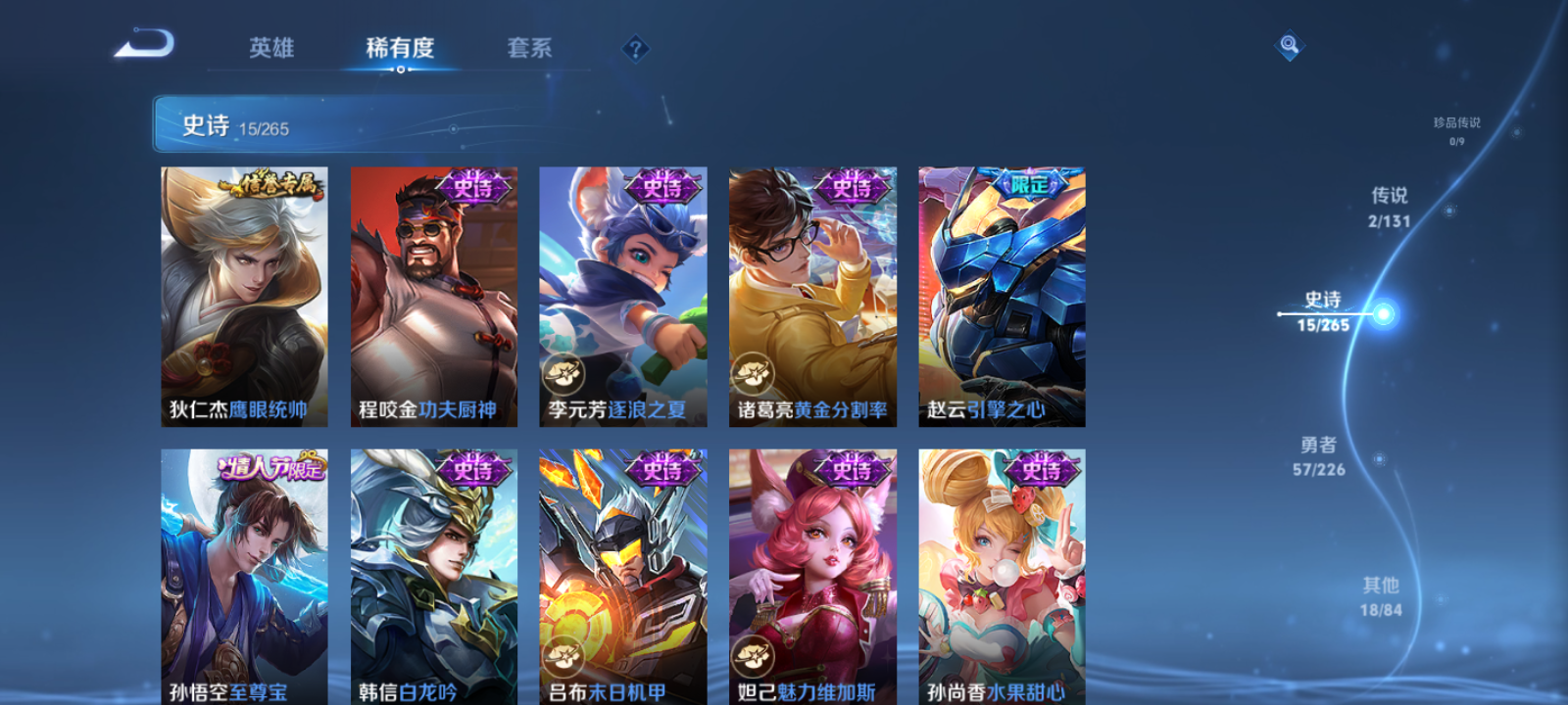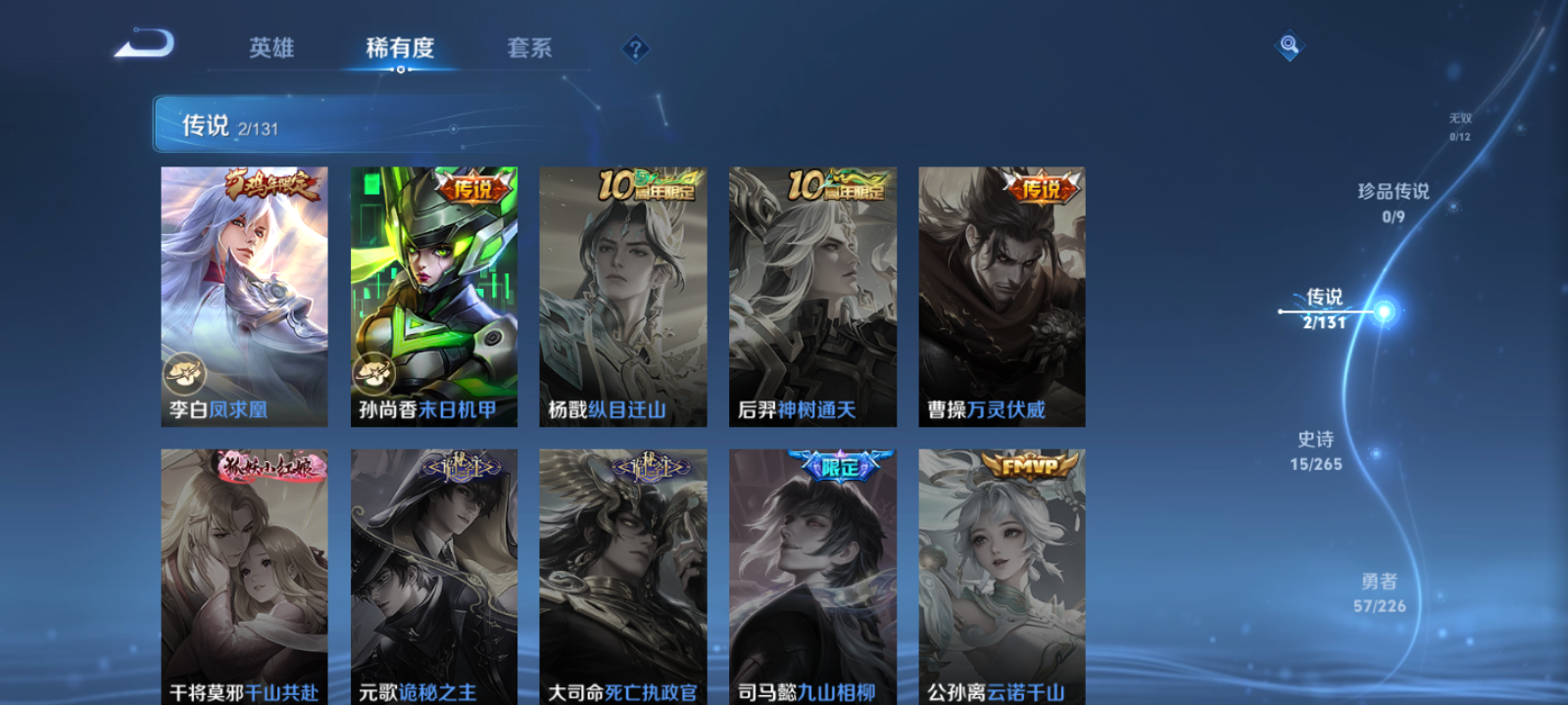 【王者荣耀】【lywz21759】珍品无双0 典藏0 无双0 珍品传说0 传说2 史诗15 英雄118 皮肤92 贵族0级 传说皮肤:孙尚香-末日机甲|凤求凰__稀有限定:至尊宝|引擎之心|大漠名商|海滩派对|海盐诗旅|皇家上将|混沌棋|金庭之子|凯尔特女王|炼金王|魔术师|千军破阵|擒涛扼浪|穷奇|驱傩正仪|沙漠行僧|朔风刀|饕餮|醍醐杖|万华元夜|演武夺筹|妖精王|疑决卦|阴阳师|御旌|御銮|御狮|白龙吟|功夫厨神|鬼剑武藏|黄金分割率|吕布-末日机甲|魅力维加斯|偶像歌手|圣诞恋歌|水果甜心|鹰眼统帅|逐浪之夏|御霄|狰|烛龙|原初探秘者__优质皮肤:年年有余|午夜歌剧院|激情绿茵|天启骑士|冰刃幻境|海军大将|绯红之刃|伊势巫女|芝加哥教父|地府判官|特种部队|精灵王|剑舞者|星航指挥官|龙域领主|极冰防御线|丁香结|虹云星官|功夫老勺|海滩丽影|兔女郎|死亡骑士|黄金武士|少女阿狸|玩偶对对碰|宫本武藏-未来纪元|教廷特使|幻泉雾影|黑桃队长|进击墨子号|拳王|程咬金-星际陆战队|大发明家|哥特玫瑰|缤纷绘卷|纽约教父|霸王丸|敏锐之力|孙悟空-西部大镖客|乓乓大师|五福同心|曜-归虚梦演|沉稳之力|化身博士|蔚蓝守将|特工战影|无双福将__贵族等级:无贵族等级__王者段位:白银打野小号 凤求凰,至尊宝,引擎之心