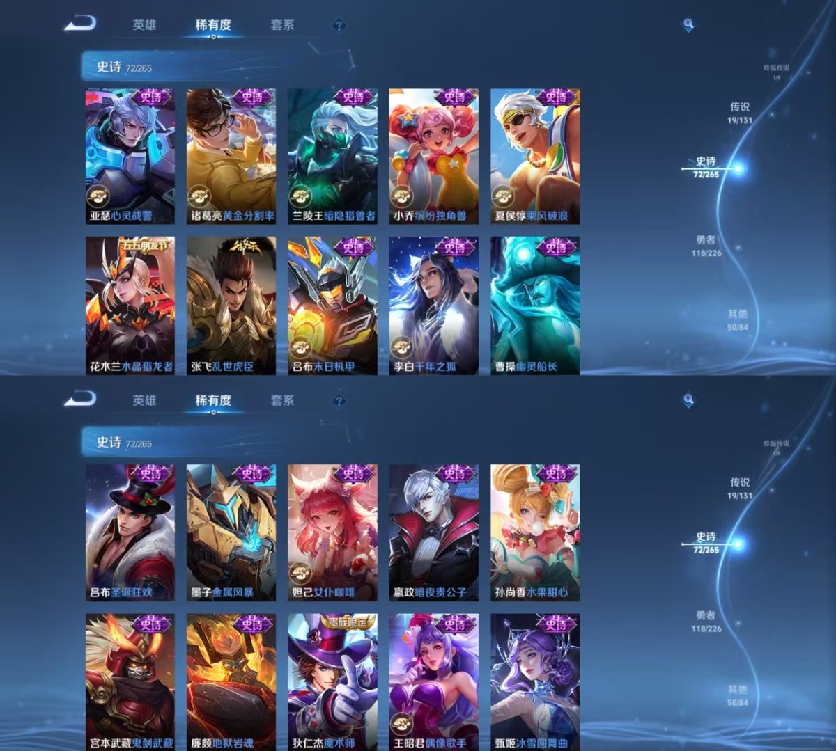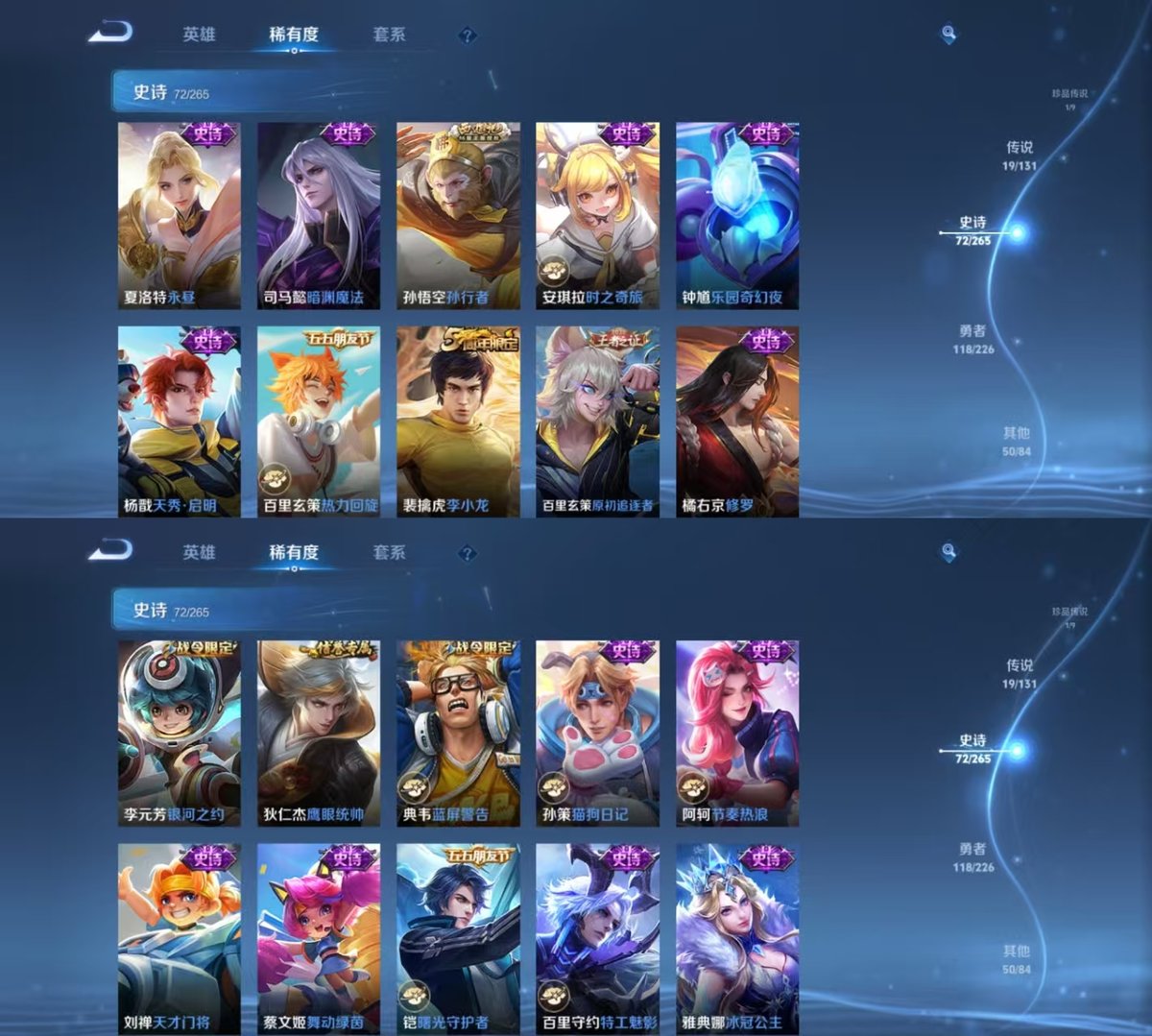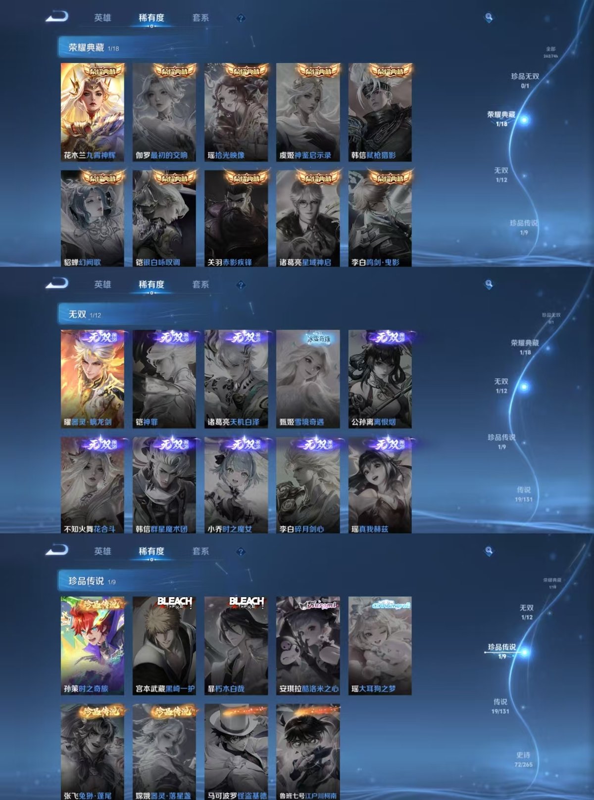 _2285975-实名:可修改贵族等级:v8英雄数:127皮肤数:262荣耀水晶:九霄神辉无双皮:器灵·螭龙剑珍品传说:时之奇旅-孙策传说皮:云鹰飞将绛天战甲炽阳神光一念神魔时之恋人-刘备超时空战士-狄仁杰无双飞将妄想实况霜月吟澜逐花归海云中君群星魔术团幻光神呛云诺千山神树通天限定皮:李小龙孙行者诗剑行鸣野蒿逐霄战戟愿照·山河定愿照·九州拓