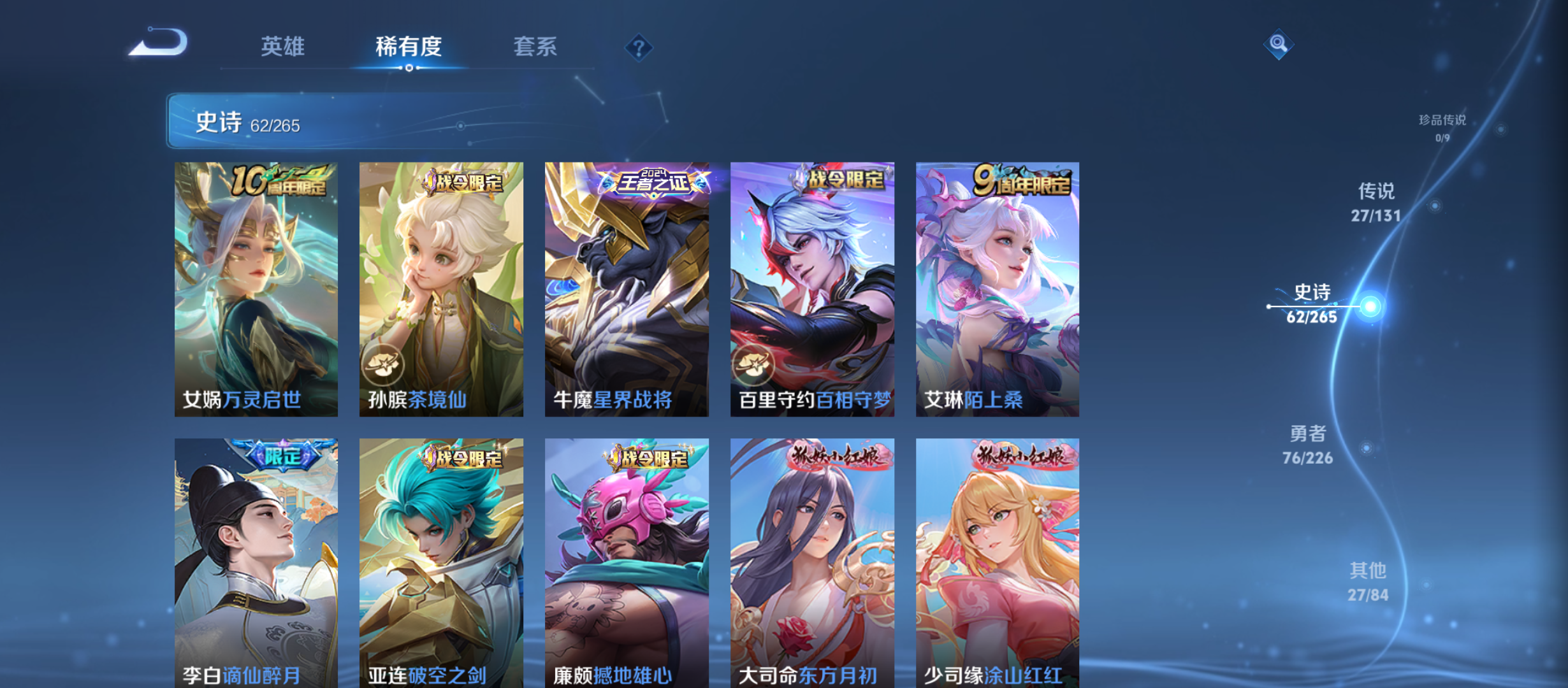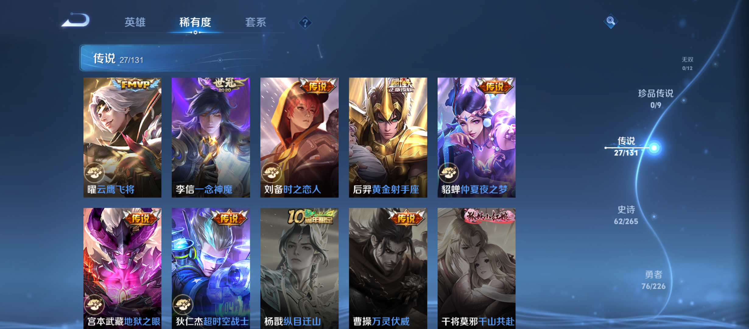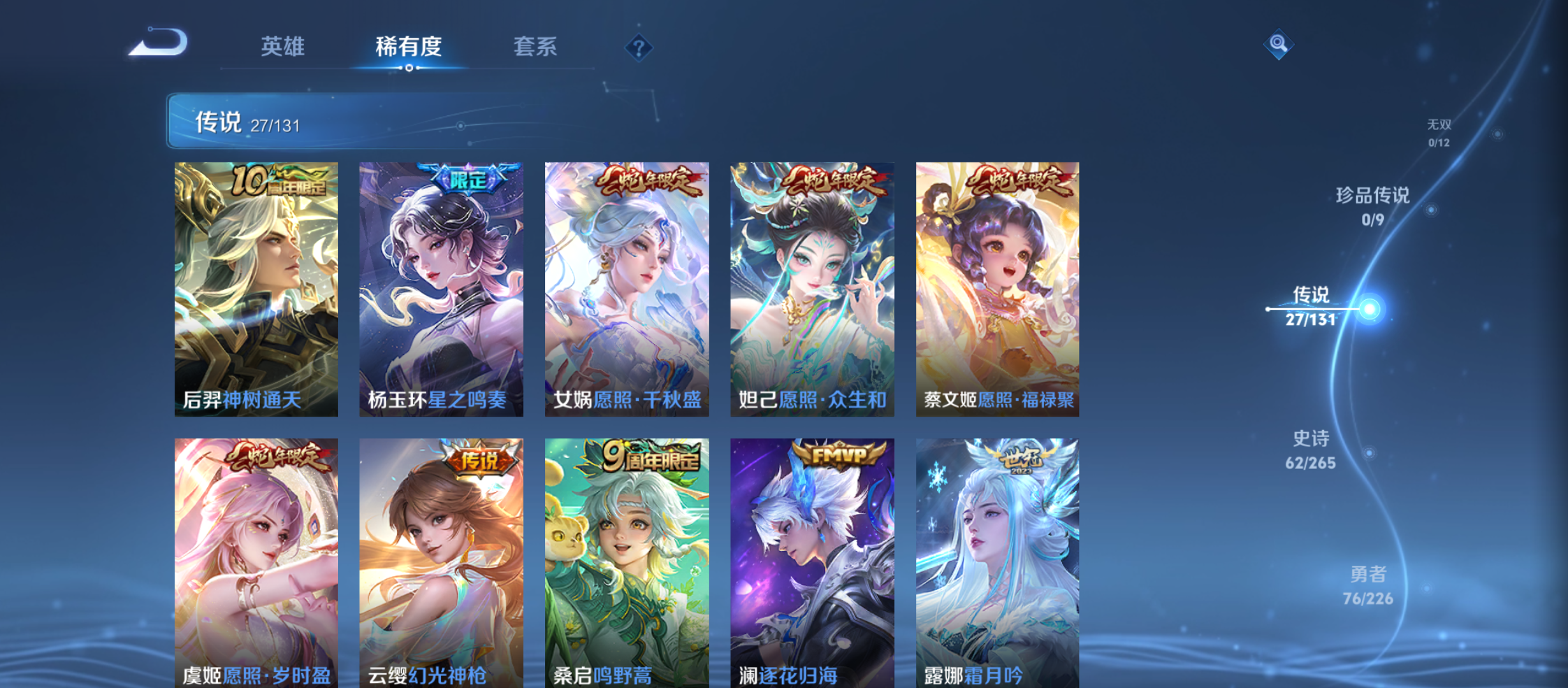 txwz22531v7-193皮 1典藏 最初的交响27传说 神树通天,超时空战士,幻光神呛,愿照·岁时盈,启明星使,愿照·福禄聚,星之鸣奏,愿照·众生和,愿照·千秋盛,云鹰飞将,鸣野蒿,飞鸢探春,仲夏夜之梦,记忆之芯,一念神魔,地狱之眼,黄金射手座,乞巧织情,炽翼辉光,怒海麟威,时雨天司,时之恋人,逐花归海,霜月吟,无双飞将,绛天战甲,炽阳神光62史诗
