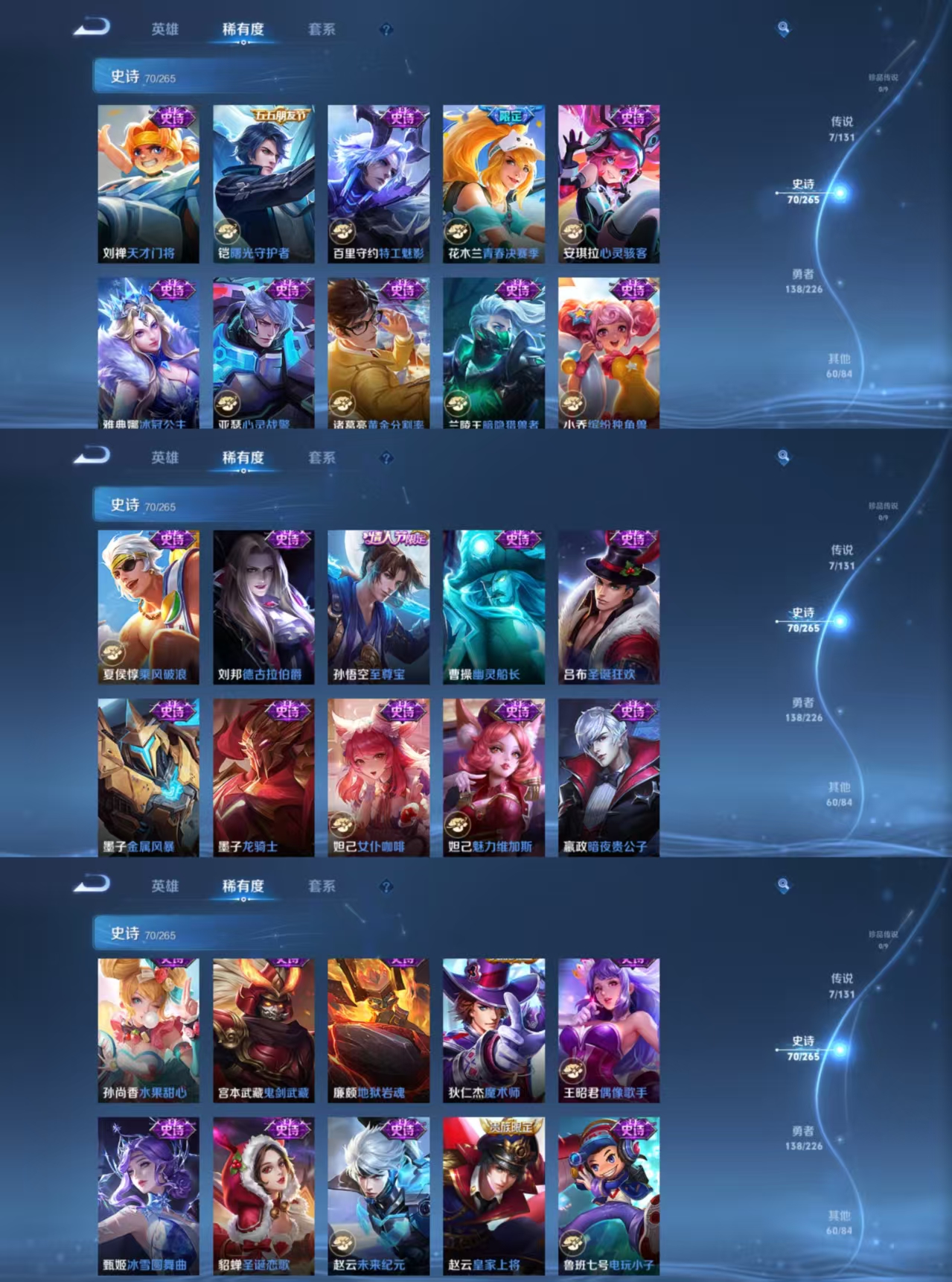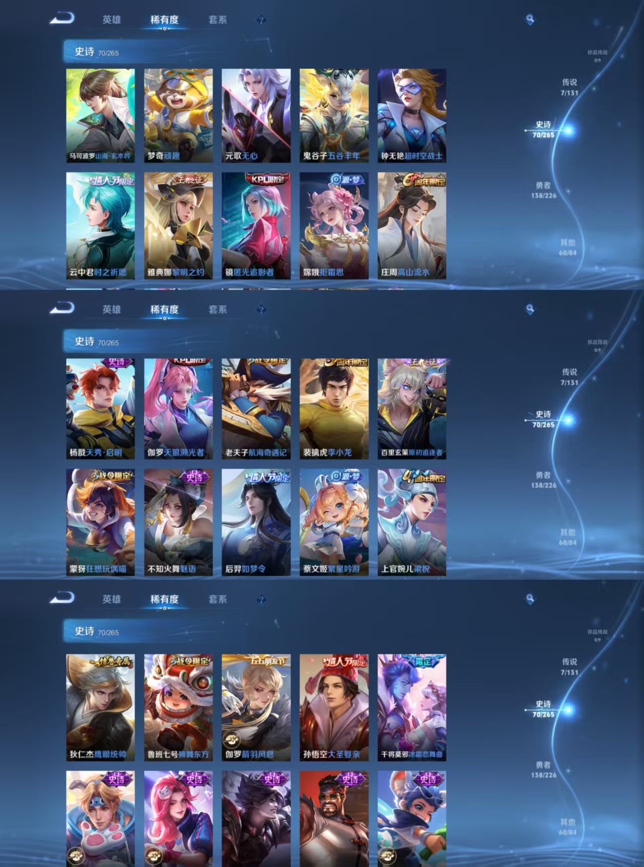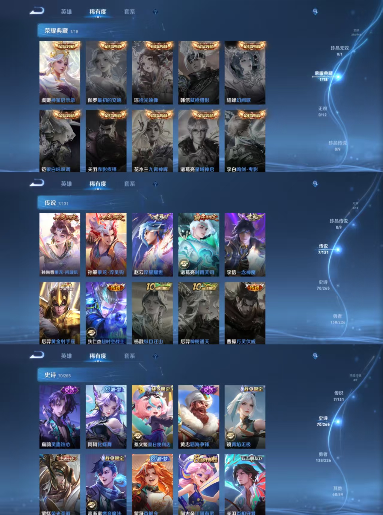 【贵族7 钻石一 126英雄 276皮 1典藏 7传说 2星元 星际治安官 幽冥火】安卓q-278皮肤-126英雄 【典藏皮肤】 神鉴启示录 【传说皮肤】 乘龙·问璇玑 乘龙·淬吴钩 超时空战士 黄金射手座 一念神魔 淬星耀世 时雨天司 【史诗皮肤】 灵蛊蚀心 布丁狗之约 天狼溯光者 冰霜恋舞曲 如梦令 青春决赛季 死霸装 电玩小子 大圣娶亲 至尊宝 时之祈愿 西部游侠 灵野札记 山海·玄木