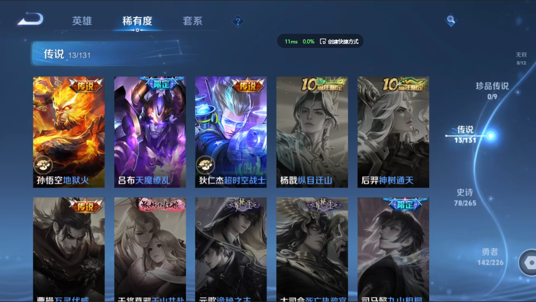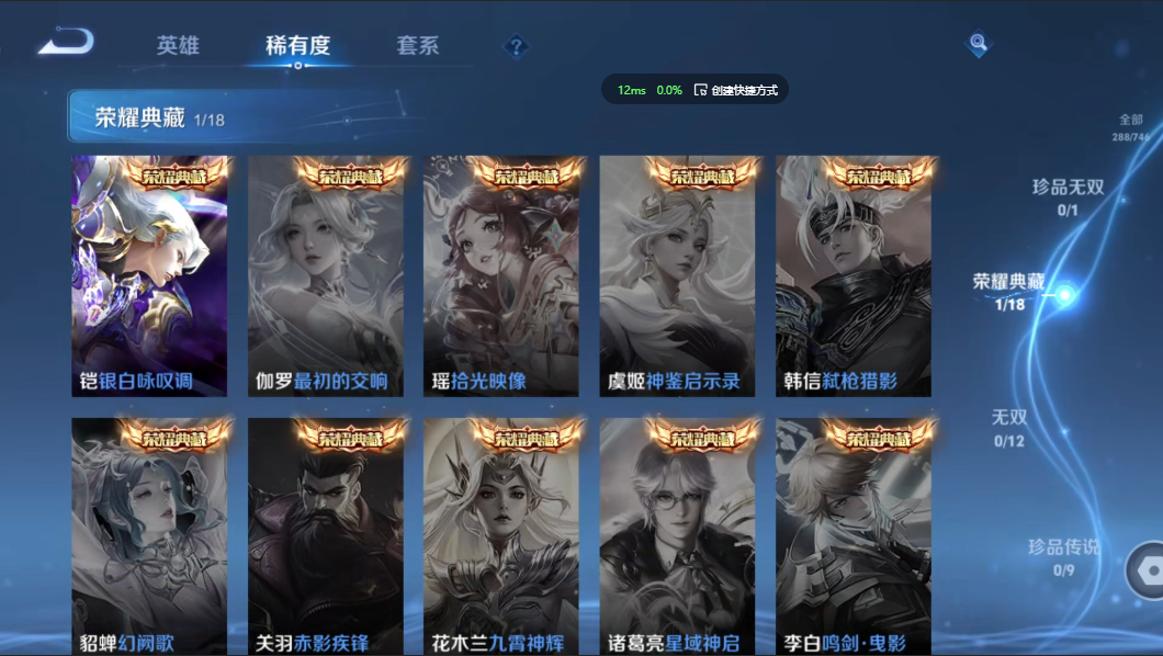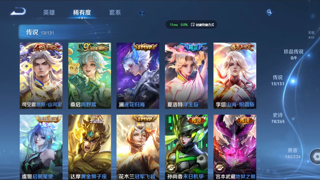 【13传说 银白咏叹调 金标盘古 天魔缭乱 浮生妄】安卓qq/v8/无双王者/288皮肤/127英雄/1典藏/13传说/78史诗/9稀有英雄【2 星传说皮肤】未来机甲 孙尚香幽冥之眼 宫本武藏【1 典藏皮肤】银白咏叹调 铠【13 传说皮肤】启明星使 虞姬逐花归海 澜地狱火 孙悟空浮生妄 夏洛特地狱之眼 宫本武藏黄金狮子座 达摩末日机甲 孙尚香山海·炽霜斩 李信天魔缭乱