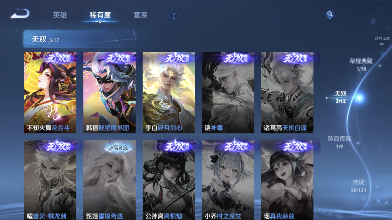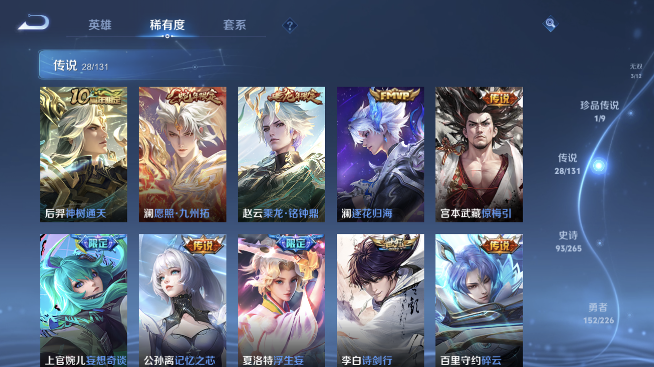 28传说3无双1典藏【金标李白 金标镜 金标国宫本 金标火舞 金标赵云 万战李白 都是历史标 群星魔术团 碎月剑心】苹果qq/v9/传奇王者/348皮肤/127英雄/1典藏/3无双/1珍品传说/28传说/93史诗/9稀有英雄【1 珍品传说】酷洛米之心 安琪拉【1 典藏皮肤】鸣剑·曳影 李白【3 无双皮肤】碎月剑心 李白花合斗 不知火舞群星魔术团 韩信【28 传说皮肤】