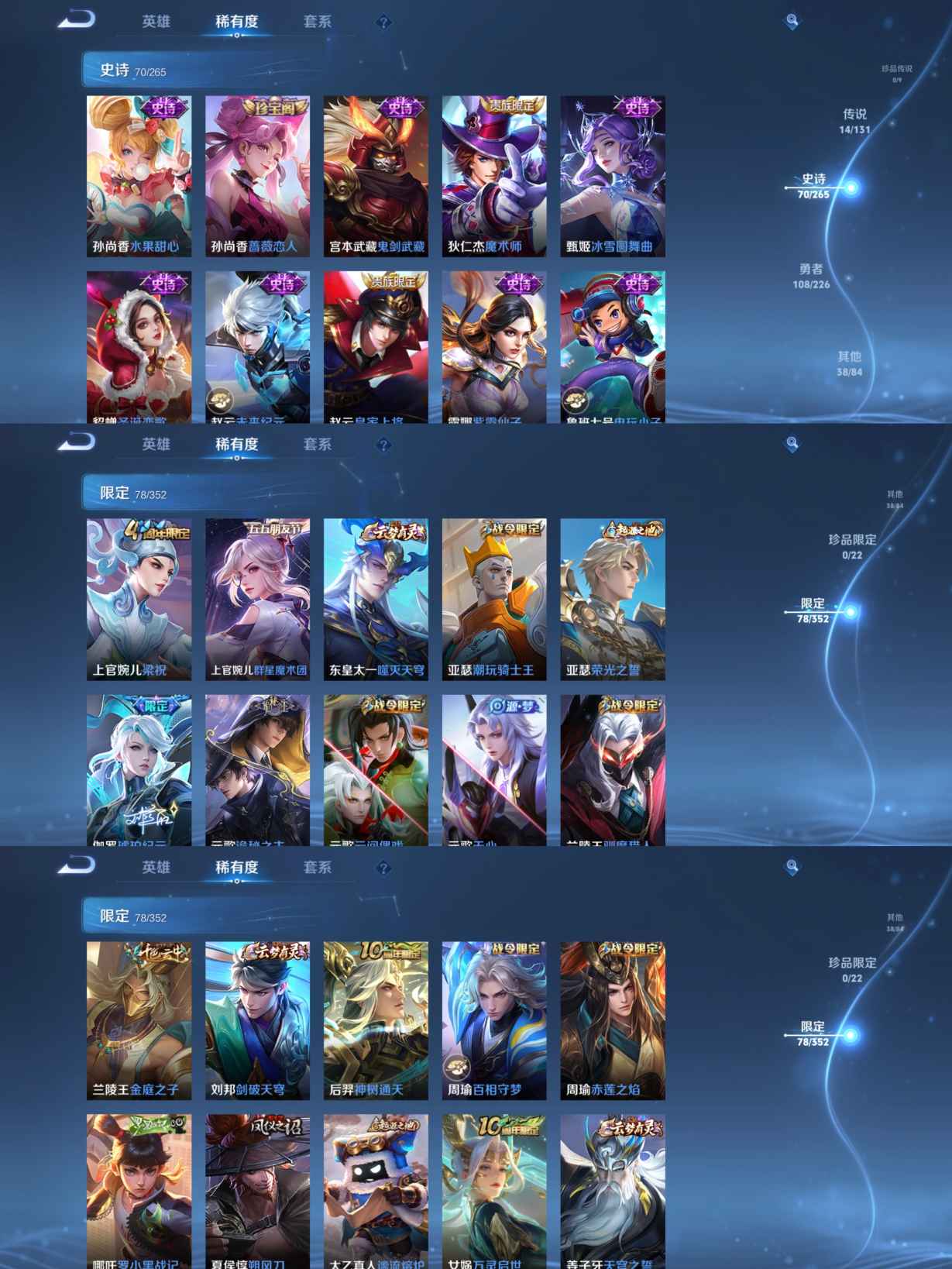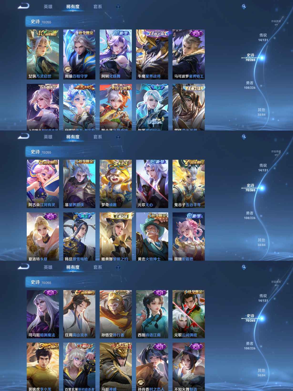 【230皮肤 14传说 1星元 金色仲夏夜 金标李信9215战力 1万战孙尚香10274战力 】安卓q-230皮肤-124英雄 【传说皮肤】 诡秘之主 神树通天 琥珀纪元 乘龙·问璇玑 乘龙·铭钟鼎 仲夏夜之梦 猫影幻舞 久胜战神 地狱之眼 冠军飞将 炽阳神光 一念神魔 末日机甲 异界灵契 【史诗皮肤】 星界战将 飞衡 傲雪梅呛 谧流熔炉 电玩小子 神威 群星魔术团 大圣娶亲 至尊宝 孙行者