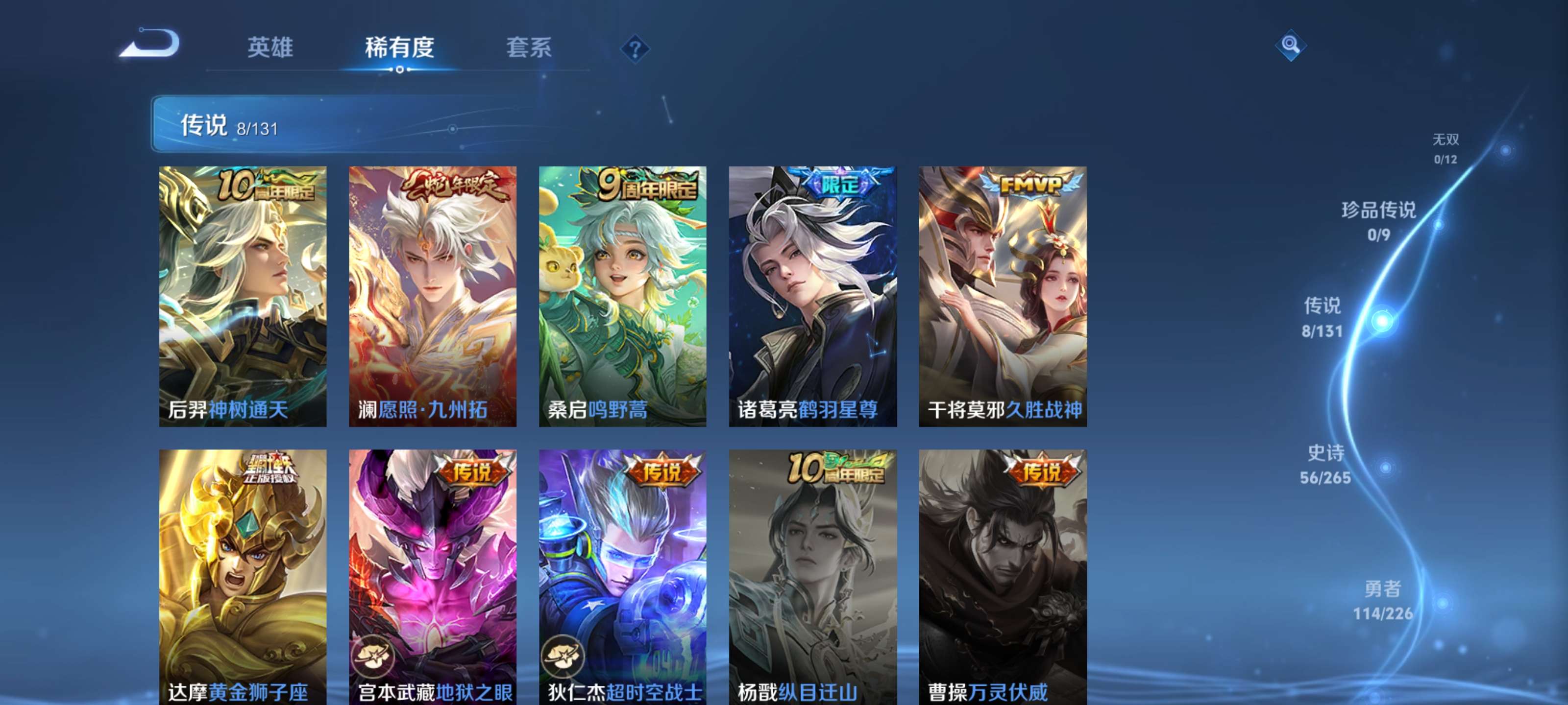 【8传说 207皮肤 鹤羽星尊 至尊宝】安卓qq/至尊星耀/207皮肤/127英雄/8传说/56史诗/9稀有英雄【1 星传说皮肤】星际治安官 狄仁杰【8 传说皮肤】地狱之眼 宫本武藏鹤羽星尊 诸葛亮黄金狮子座 达摩久胜战神 干将莫邪超时空战士 狄仁杰愿照·九州拓 澜神树通天 后羿鸣野蒿 桑启【56 史诗皮肤】百解令 蒙犽高山流水 庄周雪夜绮愿