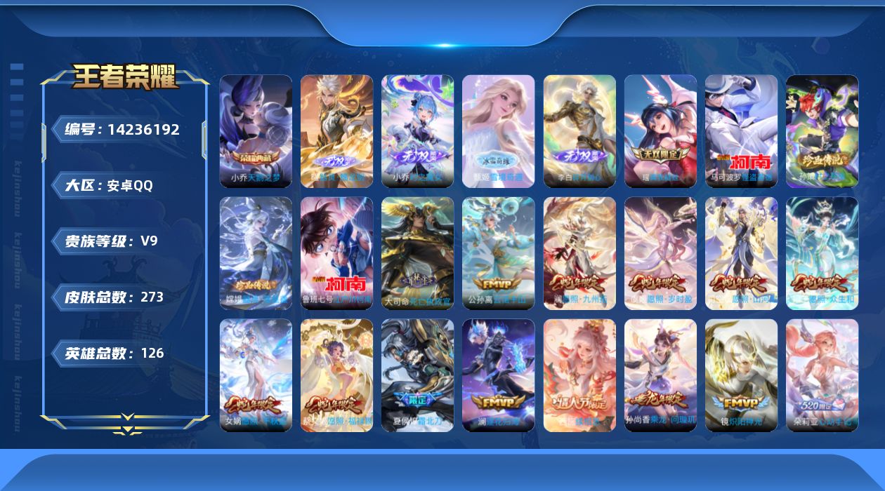 [14236192]小女号 贵族9-贵族积分105870-273皮1典藏36传说5无双4珍品传说-8个英雄全皮 安卓手q441区273皮1典藏36传说5无双4珍品传说v9 营地id1805227927无双王者【珍品传说皮肤】:器灵·落星盏时之奇旅江户川柯南怪盗基德【无双皮肤】:碎月剑心器灵·螭龙剑时之魔女瑶真我赫兹雪境奇遇【荣耀典藏】:天鹅之梦【优质限定皮肤】:至尊宝