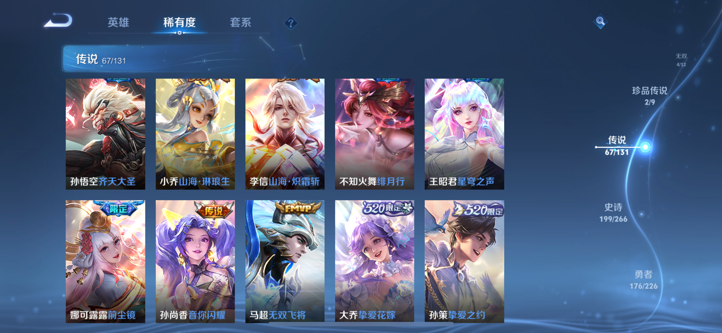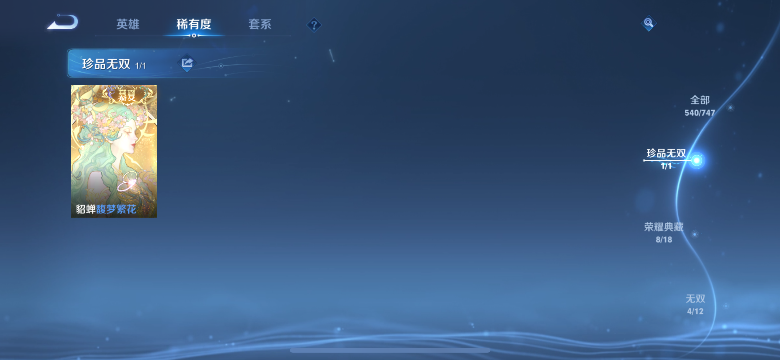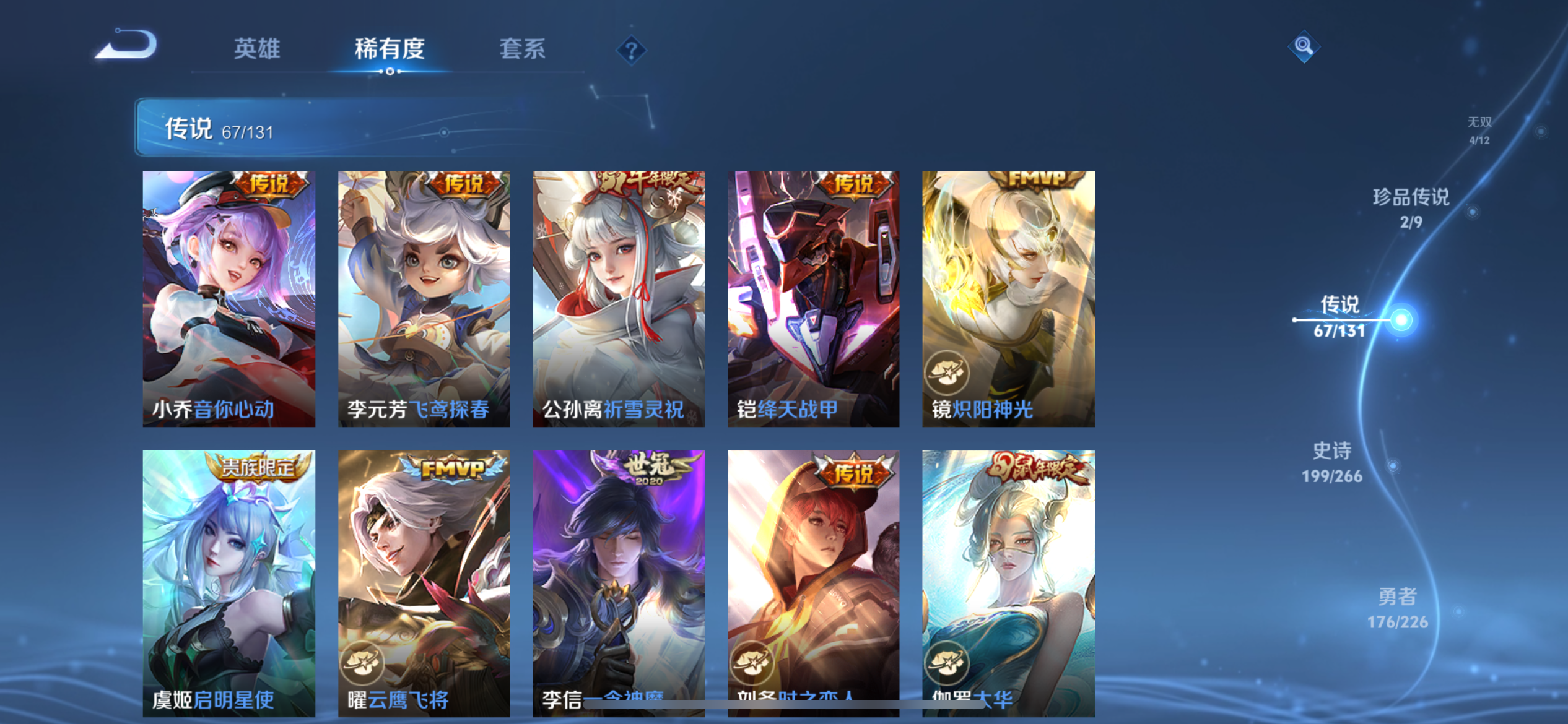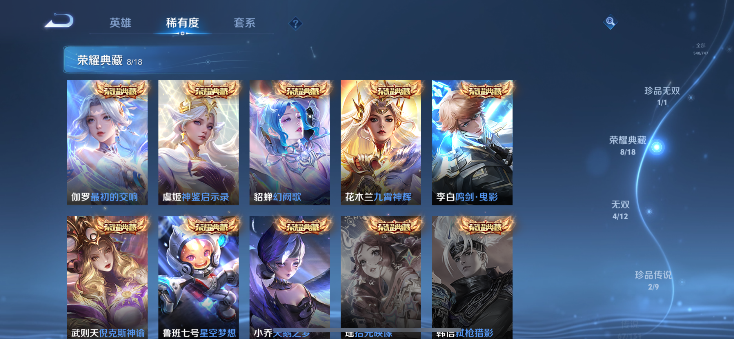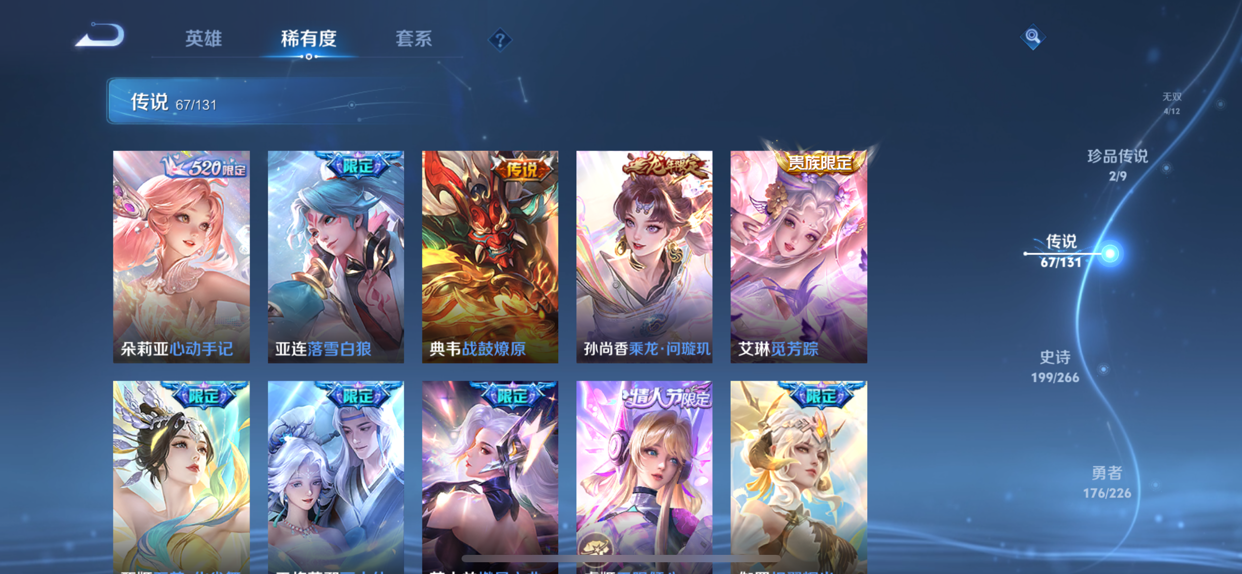 【王者荣耀】【lywz21927】珍品无双1 典藏8 无双4 珍品传说2 传说67 史诗198 英雄128 皮肤540 贵族无双级 珍品无双:馥梦繁花__荣耀典藏:天鹅之梦|武则天|神鉴启示录|幻阙歌|九霄神辉|鸣剑·曳影|倪克斯神谕|星空梦想|最初的交响__无双皮肤:群星魔术团|碎月剑心|天机白泽|神罪__珍品传说:朽木白哉|黑崎一护__传说皮肤:前尘镜|音你闪耀|无双飞将|挚爱花嫁|挚爱之约|启示之音|花朝如约|补天|异界灵契|绛天战甲|炽阳神光|启明星使|胖达荣荣|地狱之眼|地狱火|海洋之心|仲夏夜之梦|云霓雀翎|久胜战神|黄金狮子座|狄仁杰-超时空战士|黄金射手座|黄金白羊座|猫影幻舞|刘备-时之恋人|一念神魔|云鹰飞将|飞鸢探春|李|游龙清影|瑶-时之祈愿|炽翼辉光|绯月行|画中仙|孙尚香-末日机甲|齐天大圣|凤求凰|落雪白狼|祈雪灵祝|燃星之曲|太华|天魔缭乱|武陵仙君|小乔-音你心动|星穹之声|寅虎·瑞焰|永曜之星|虞姬-无限倾心|遇见胡旋|战鼓燎原|乘龙·问璇玑|觅芳踪|山海·炽霜斩|山海·琳琅生|朵莉亚-心动手记|寅虎·赤拳|至美·化雀舞|幻光神呛|祥瑞亨通|九山相柳|死亡执政官|诡秘之主|千山共赴|万灵伏威|神树通天|纵目迁山__稀有限定:寅虎·御盾|寅虎·展翼|寅虎·心曲|奔雷神使|白晶晶|至尊宝|梅西|青龙志|玄武志|朱雀志|虞姬-霸王别姬|一生所爱|岱宗|玄嵩|幽恒|飞衡|蔷薇恋人|奇迹圣诞|蜜橘之夏|虎魄|神威|烈魂|龙胆|白鹤梁神女|孙行者|猪悟能|女儿国国王|傲雪梅呛|玉兔公主|李小龙|梁祝|山海·碧波行|山海·玄木吟|神器·万象笔|时之彼端|狮舞东方|唐三藏|拒霜思|暗影游猎|白昼王子|百解令|百木心呛|冰锋战神|冰霜恋舞曲|冰霜神祇|嫦娥-如梦令|妲己-时之奇旅|大漠名商|地狱燃心|电玩高手|繁星吟游|凤凰于飞|高山流水|古海寻踪|海滩派对|海盐诗旅|航海奇遇记|后羿-如梦令|胡桃异想国|华丽摇滚|幻夜卜梦|皇家上将|辉光之辰|混沌棋|火炮绅士|剑破天穹|江河有灵|降魔|金庭之子|狂想玩偶喵|蓝屏警告|黎明之约|梦圆繁星|迷踪丽影|魔法小厨娘|魔术师|花木兰-默契交锋|匿光决锋者|匿光破解者|匿光启智者|匿光追影者|奇幻香踪|千军破阵|擒涛扼浪|青焰无极|穷奇|驱傩正仪|燃音魔法|热情桑巴|荣光圣徽|沙漠行僧|朔风刀|死亡摇滚|探海日志|饕餮|醍醐杖|天狼绘梦者|天狼狩猎者|天狼溯光者|天狼运算者|天狼征服者|天穹祈灯|玩趣恶龙|阿古朵-顽趣|万华元夜|无心|五谷丰年|午后时光|纤云弄巧|项羽-霸王别姬|星界游侠|星空之诺|驯魔猎人|演武夺筹|夜都怪侠|疑决卦|阴阳师|吟游魔法|银河之约|优雅恋人|游园惊梦|驭风魔法|遇见飞天|御旌|御銮|御狮|原初追逐者|云端筑梦师|云间偶戏|真爱魔法|逐梦之光|逐梦之星|暗夜贵公子|暗夜猫娘|暗隐猎兽者|白龙吟|白蛇|缤纷独角兽|冰冠公主|冰雪圆舞曲|苍穹之光|乘风破浪|乘龙·聚宝船|大乔-猫狗日记|德古拉伯爵|地狱岩魂|电玩·爆裂旋风|电玩小子|伽罗-琥珀纪元|功夫厨神|鬼剑武藏|唤灵魅影|黄金分割率|箭羽风息|节奏热浪|金属风暴|乐园奇幻夜|李元芳-蔬乡物语|龙鼓争鸣|龙骑士|吕布-末日机甲|魅力维加斯|魅语|梦奇-顽趣|女仆咖啡|偶像歌手|奇遇舞章|千筹问战|青蛇|热力回旋|赏金猎手|绅士熊喵|圣诞狂欢|圣诞恋歌|诗语江南|鲁班七号-蔬乡物语|水果甜心|水晶猎龙者|孙策-猫狗日记|滕王阁序|天才门将|天秀·启明|天秀·音浪|晚萤|赵云-未来纪元|闲日渔趣|星夜王子|雪上飞焰|摇滚巨星|鹰眼统帅|永昼|幽灵船长|遇见神鹿|月团寄思|云中君-时之祈愿|至美·乘鲤谣|钟无艳-超时空战士|逐浪之夏|紫霞仙子|东方月初|涂山红红|霜北刀|蔡文姬-夏日便利店|虞姬-夏日便利店|天穹之誓|安琪拉-时之奇旅|修罗|曙光守护者|心灵战警|千年之狐|孙尚香-时之恋人|无限星赏官|舞动绿茵|特工魅影|心灵骇客|绮世丹青|御霄|烛龙|原初探秘者|重明|云中旅人|玲珑珍味|单词大作战|朔望之晖|钟馗-神迹守卫|达摩-星际陆战队|流音漫舞|暖冬·兔眠|灵卜魔法|夺宝奇兵|苍威无极|圣弓游侠|墨子-神迹守卫|落雪兰心|死神来了|天堂福音|仙境爱丽丝|刘禅-鸭鸭历险记|沈梦溪-鸭鸭历险记|龙之律动|虚灵犬护|石田雨龙|逆浪荇歌|孙策-百相守梦|周瑜-百相守梦|戍鼓铭心|赞萌露比|幻珠鲛人|黄忠-百相守梦|织梦人|守夜人|涂山容容|光弋星穹|傩神司|往忆晖光|百里玄策-罗小黑战记|荣光之誓|万灵启世|巫礼祀神|鹤鸣心笺__优质皮肤:尼罗河女神|一千零一夜|创世神祝|年年有余|埃及法老|孤猎|木偶奇遇记|熊喵少女|午夜歌剧院|火炮千金|露花倒影|未来旅行|激情绿茵|海之征途|天启骑士|碧珀绯影|秩序猎龙将|锦衣卫|冰刃幻境|森|超能战警|英喵野望|维京掠夺者|海军大将|绯红之刃|踏雪寻梅|启蛰|战争骑士|伊势巫女|画中游|生化警戒|威尼斯狂欢|第七人偶|潮流仙人|芝加哥教父|街头旋风|绝影神呛|地府判官|荷鲁斯之眼|幸存者|赤焰之缨|福禄兄弟|隐刃|前尘|特种部队|三太子|精灵王|剑舞者|范海辛|星航指挥官|龙域领主|爱与和平|占星师|花间舞|魇语军师|极冰防御线|花见巫女|棒球奇才|东海龙王|蔷薇王座|灼热之刃|精准探案法|圣殿之光|帝国元帅|神奇女侠|战争女神|霓裳曲|加勒比小姐|阿摩司公爵|异域舞娘|精灵公主|修竹墨客|万圣前夜|动物派对|暗都幽影|功夫炙烤|幻夜行动|潮玩探月行|虎啸剑宗|瓷语鉴心|秘密基地|次元突破|鲨炮海盗猫|野性能量|丁香结|奇妙博