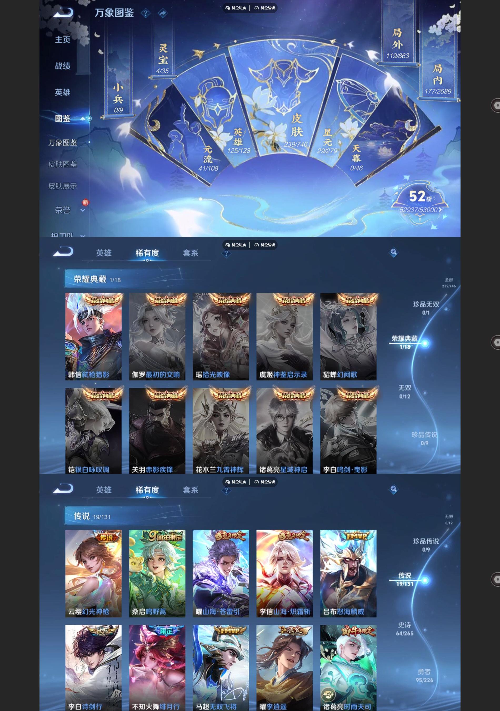 2281300-苹果q-v8-239皮肤1典藏19传说3星元64史诗64限定-1555紫星币 【全皮英雄】 李信全皮 【典藏】 弑呛猎影 【星元】 未来机甲 金色仲夏夜 星际治安官 【传说】 幻光神呛 鸣野蒿 启明星使 时雨天司 山海苍雷引 山海炽霜斩 李 绯月行 绛天战甲 无双飞将 怒海麟威 诗剑行 炽阳神光 云鹰飞将 猫影幻舞 一念神魔 黄金狮子座 超时空战士男 仲夏夜之梦