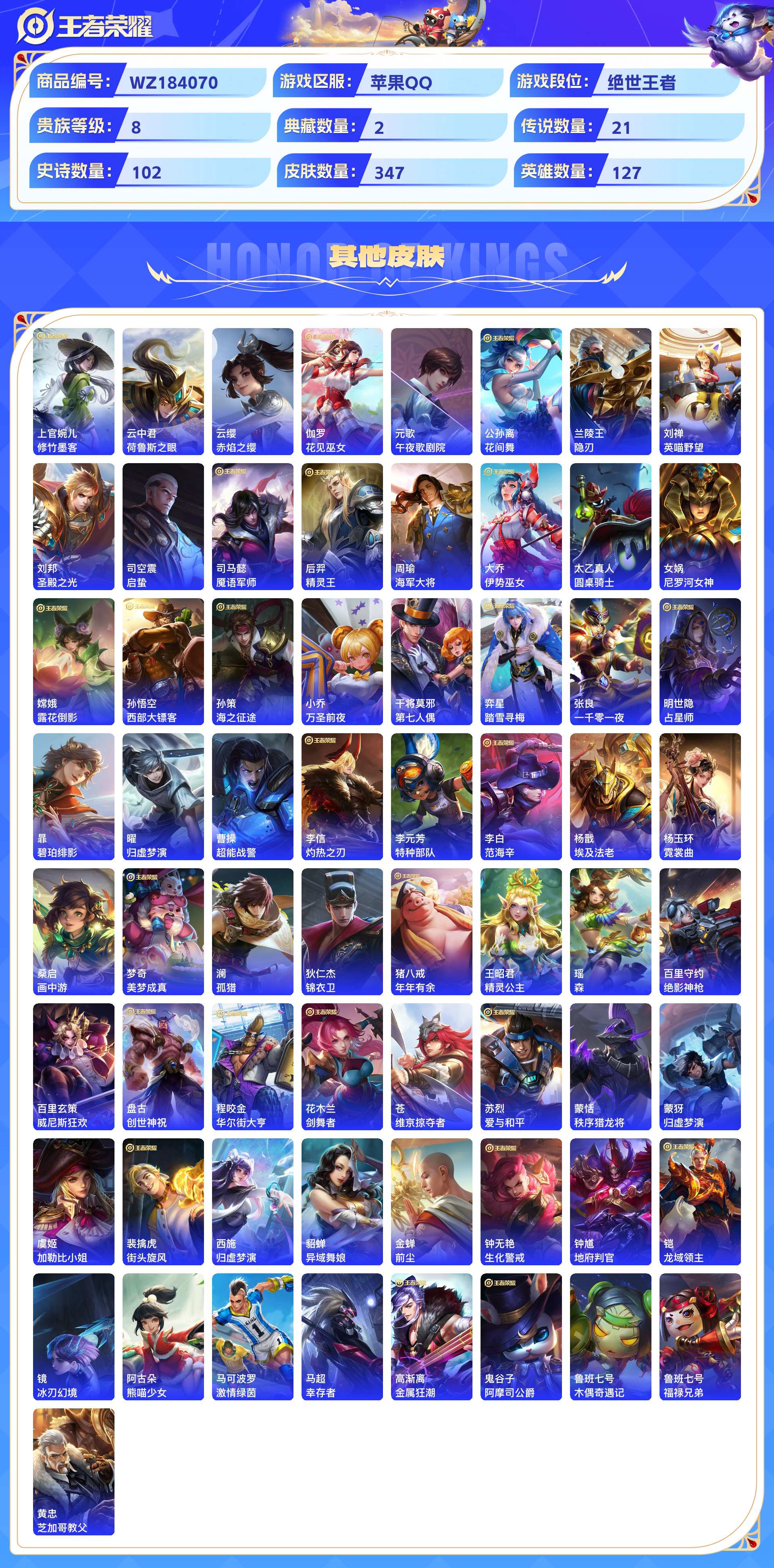 _2277351-苹果qq347皮贵族8级2典藏21传说102史诗【荣耀典藏】鸣剑·曳影弑呛猎影【传说皮肤】愿照·山河定怒海麟威补天末日机甲零号·赤焰地狱火地狱之眼久胜战神山海·苍雷引李云鹰飞将一念神魔愿照·九州拓超时空战士白虎志冠军飞将启明星使寅虎·赤拳时雨天司黄金狮子座无双飞将【史诗皮肤】梁祝魅语纤云弄巧心灵战警箭羽风息天狼溯光者无心云间偶戏无限星赏官蜜橘之夏玉兔公主暗隐猎兽者蓝屏警告电玩·爆裂旋风德古拉伯爵地狱燃心御风骁将末日机甲圣诞狂欢雪夜绮愿金属风暴乘风破浪永昼女仆咖啡魅力维加斯拒霜思白昼王子摇滚巨星优雅恋人水果甜心孙行者至尊宝猫狗日记茶境仙鬼剑武藏缤纷独角兽冰霜恋舞曲真爱魔法高山流水地狱岩魂乱世虎臣驭风魔法奇幻香踪星界游侠幽灵船长逐浪之夏千年之狐天秀·启明顽趣修罗月团寄思赏金猎手星界战将电玩高手鹰眼统帅魔术师猪悟能偶像歌手冰雪圆舞曲星夜王子朱雀志百相守梦特工魅影原初追逐者功夫厨神胡桃异想国航海奇遇记水晶猎龙者玄武志荣光圣徽狂想玩偶喵百解令繁星吟游李小龙天狼狩猎者黄金分割率未来纪元龙胆皇家上将王者之锤曙光守护者青焰无极玫瑰异探江河有灵化蝶舞迷踪丽影暗夜猫娘节奏热浪黎明之约冰冠公主紫霞仙子傲雪梅呛逐梦之影飞衡苍穹之光暗影游猎山海·玄木吟神威燃音魔法五谷丰年狮舞东方火炮绅士【勇者皮肤】潮玩士官长命运加冕金福满堂潮玩骑士王鸿运当头死亡骑士破局者金庭之子龙腾万里穷奇黄金武士铁甲之心铁骨偃魂潮玩造梦师汉昭烈帝万事如意纽约教父唤灵魔甲秘密基地夺宝奇兵剑破天穹虎啸剑宗圣弓游侠完美运算猎兽之王野性能量逐霄战戟熔金海岸次元突破进击墨子号神迹守卫朔风刀守护之力绒语心约暗都幽影饕餮华丽摇滚劲辣红锅谧流熔炉朔望之晖少女阿狸灵卜魔法炽热元素使天穹之誓星梦巡礼时尚教父零食大作战暖冬·兔眠沉稳之力天使之翼归虚梦演玩偶对对碰如懿未来纪元万象初新丁香结秘证寻踪灵卦秘语奇妙博物学无尽征程功夫炙烤混沌棋缤纷绘卷古海寻踪幽兰居士五福同心魅影绮裳玫蓝誓约无尽旅途化身博士疑决卦景韶洛都虹云星官烛龙金色潮汐云中旅人妄想特派敏锐之力潮玩骑兵次元傲视海盐诗旅大漠名商鲨炮海盗猫幻泉雾影王牌新星时空谍影制霸全明星西部大镖客御旌牛运亨通御狮特工战影命运角斗场万华元夜阴阳师潮玩探月行西部大镖客幻想奇妙夜午后时光花好人间白色死神狰经纬探寻者重装意志御銮圆桌骑士群星魔术团暖冬絮语无双福将演武夺筹御霄契约魔法功夫老勺百相守梦醍醐杖女武神流音漫舞红桃皇后幻夜卜梦兔女郎苍林狼骑坚韧之力千军破阵西部游侠蔚蓝守将胡桃狂想曲凯尔特女王擒涛扼浪雪境奇遇掌控之力忍·炎影太极少年大发明家拳王沙漠行僧爆裂喵拳星际陆战队海滩丽影驱傩正仪神迹守卫致命风华单词大作战街头霸王教廷特使苍威无极科学大爆炸海滩派对潮玩牛仔访茗客天穹祈灯幻乐之宴原初探秘者探海日志乓乓大师【其他皮肤】修竹墨客荷鲁斯之眼赤焰之缨花见巫女午夜歌剧院花间舞隐刃英喵野望圣殿之光启蛰魇语军师精灵王海军大将伊势巫女圆桌骑士尼罗河女神露花倒影西部大镖客海之征途万圣前夜第七人偶踏雪寻梅一千零一夜占星师碧珀绯影归虚梦演超能战警灼热之刃特种部队范海辛埃及法老霓裳曲画中游美梦成真孤猎锦衣卫年年有余精灵公主森绝影神呛威尼斯狂欢创世神祝华尔街大亨剑舞者维京掠夺者爱与和平秩序猎龙将归虚梦演加勒比小姐街头旋风归虚梦演异域舞娘前尘生化警戒地府判官龙域领主冰刃幻境熊喵少女激情绿茵幸存者金属狂潮阿摩司公爵木偶奇遇记福禄兄弟芝加哥教父