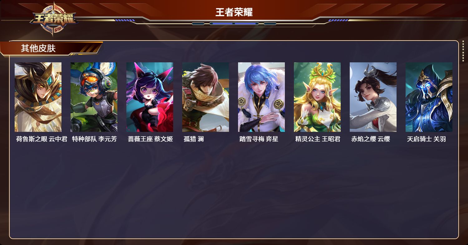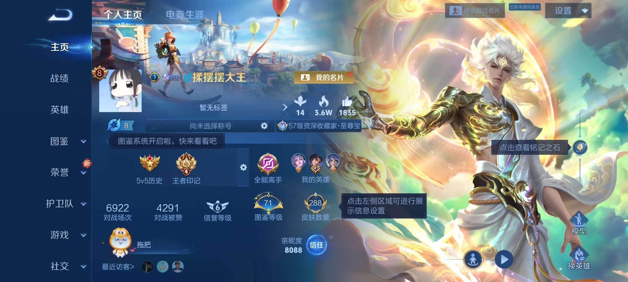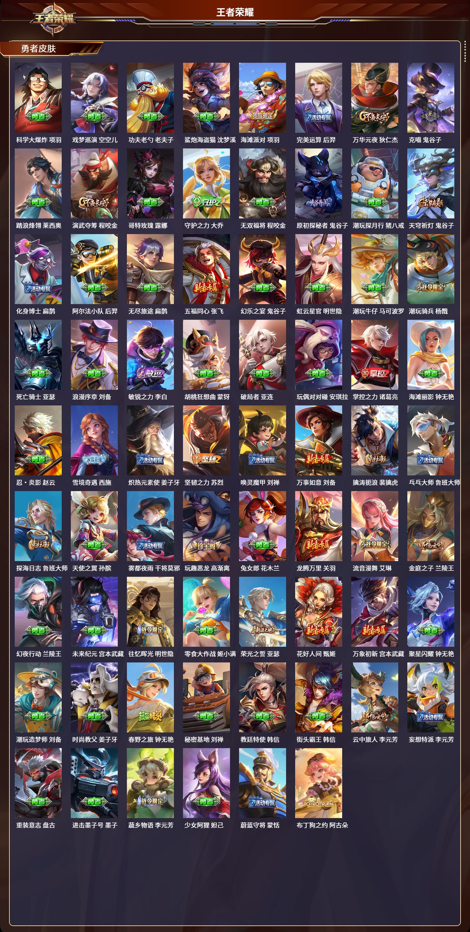 安卓微信/至尊星耀/288皮肤/127英雄/2典藏/0珍品无双/2无双/0珍品传说/21传说/90史诗/9稀有英雄【2 典藏皮肤】鸣剑·曳影 李白弑呛猎影 韩信【2 无双皮肤】碎月剑心 李白器灵·螭龙剑 曜【21 传说皮肤】启明星使 虞姬无双飞将 马超云鹰飞将 曜诗剑行 李白地狱之眼 宫本武藏时之恋人 刘备挚爱之约 孙策黄金狮子座 达摩战鼓燎原 典韦妄