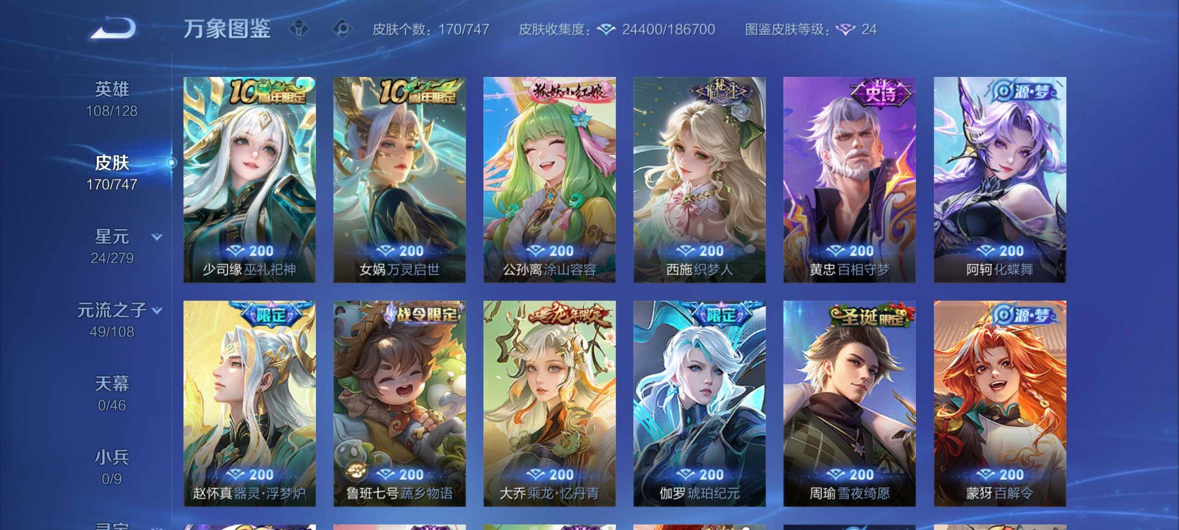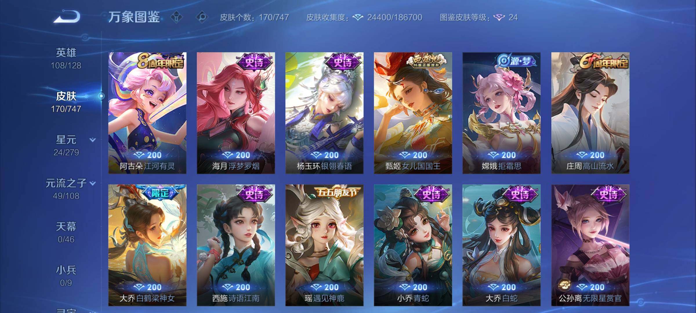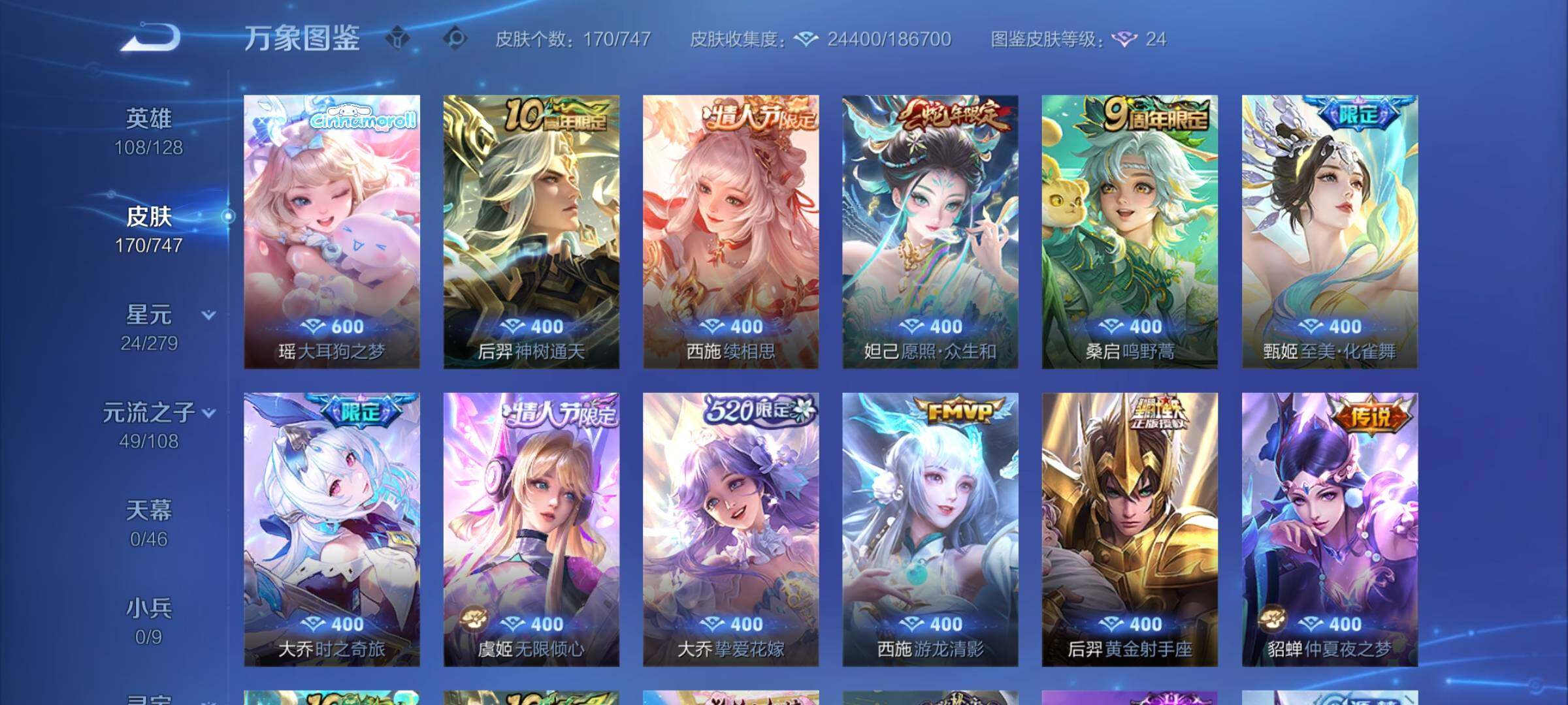 【精品女号·背包1水晶·大乔全皮·大耳狗之梦·金色仲夏夜·至美化雀舞·续相思·愿照众生和·虞姬无限倾·游龙清影·大乔时之奇旅·挚爱花嫁·女儿国国王·涂山容容·青蛇·白蛇·可二次】w6985-安卓q-108英雄-170皮肤-3王者印记-100铭文-贵族积分1w【贵族6】【·1珍品传说·1星传说·11传说·8按键】【因赛季更新游戏段付以上号为准!】 【英雄全皮】:大乔全皮,影全皮 【珍品传说】