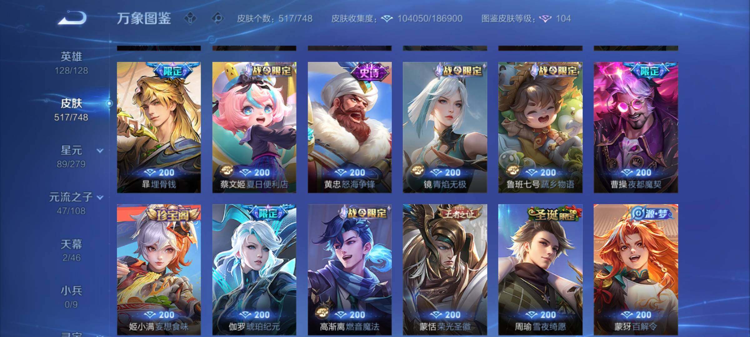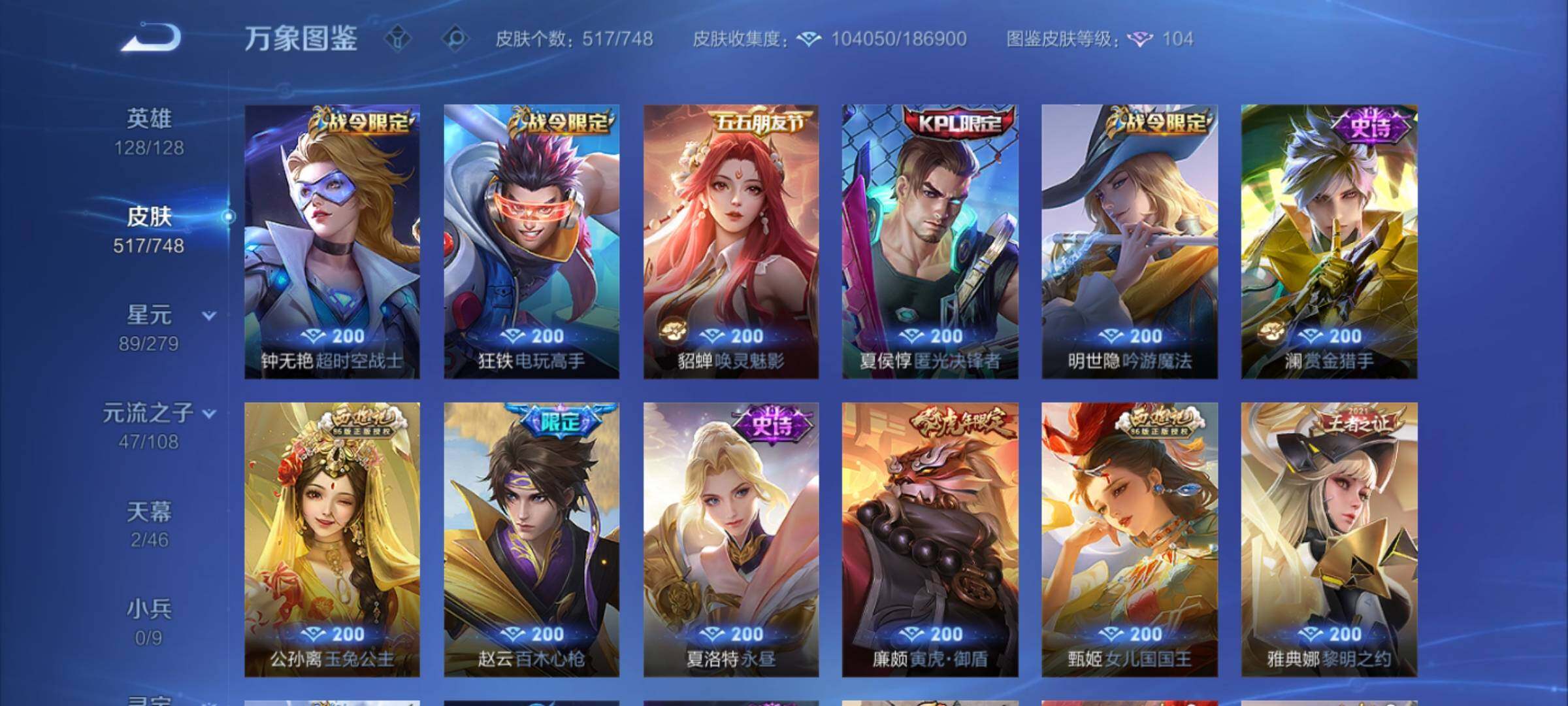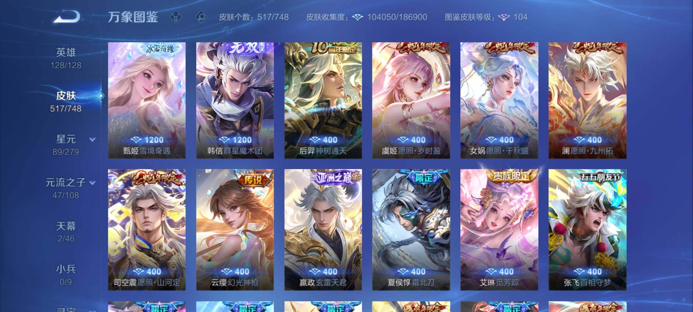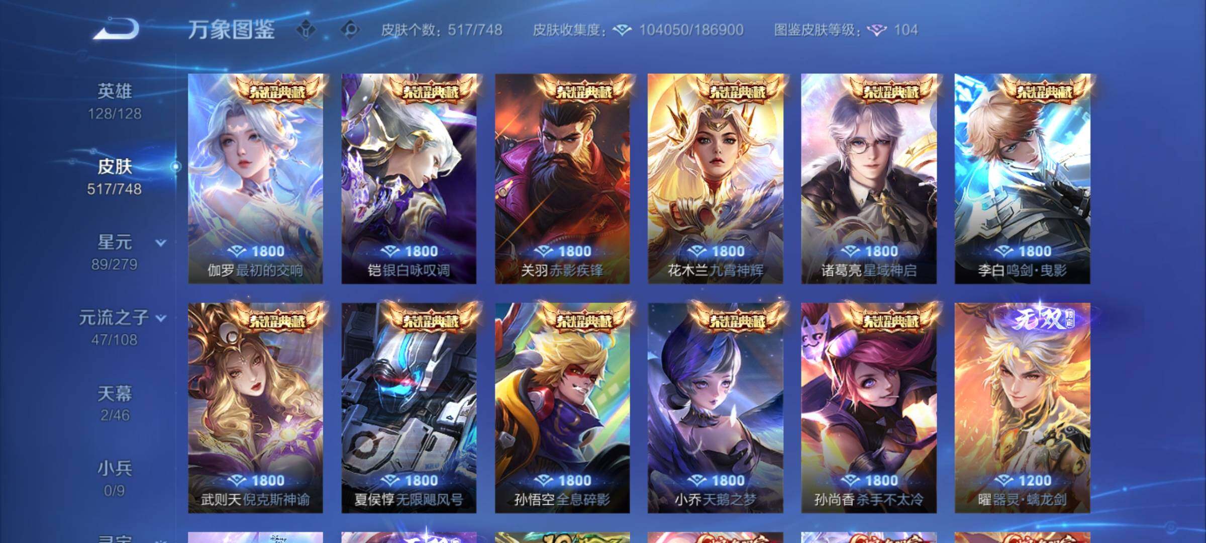 【店长推荐v10·12典藏·3无双·鸿兔大展天幕·曜器灵螭龙剑·雪境奇遇·韩信群星魔术团·玉鸾吟·鸿兔大展天幕·27个年限皮·全皮猴子·最初的交响·铠银白咏叹调·九霄神辉·鸣剑曳影·天鹅之梦·倪克斯神谕·可二次】w6999-安卓q-128英雄-517皮肤-17王者印记-300铭文-贵族积分34w【贵族10】【12典藏·3无双·7星传说·57传说·2天幕·16按键·200个性戳戳】【因赛季更