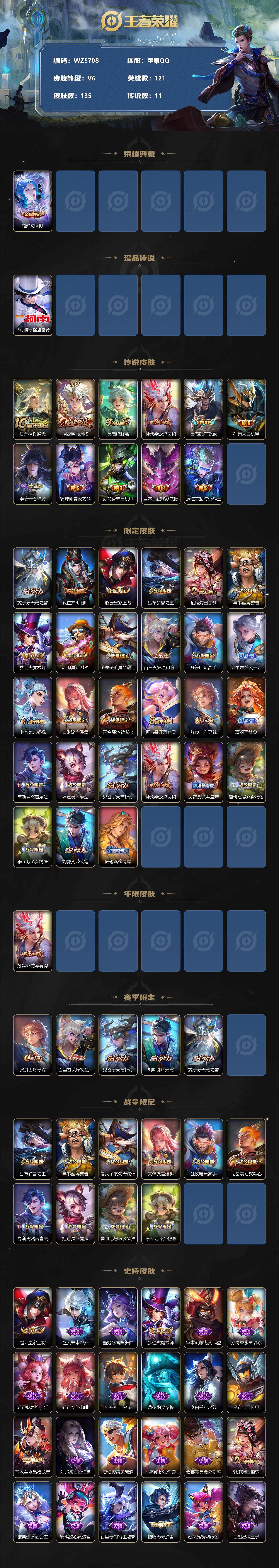 苹果q-v6-最强王者段位-121英雄-135皮肤-1典藏-0珍品无双-0无双-1珍品传说-11传说-46史诗 【荣耀典藏】:貂蝉幻阙歌 【珍品传说】:马可波罗怪盗基德 【传说皮肤】:后羿神树通天,澜愿照九州拓,桑启鸣野蒿,孙策乘龙淬吴钩,吕布怒海麟威,孙策末日机甲,李信一念神魔,貂蝉仲夏夜之梦,孙尚香末日机甲,宫本武藏地狱之眼,狄仁杰超时空战士 【限定皮肤】:姜子牙天穹之誓,狄仁杰阴阳师,赵云皇家上将,吕布猎兽之王,甄姬游园惊梦,典韦蓝屏警告,狄仁杰魔术师,项羽海滩派对,老夫子航海奇遇记,百里玄策原初追逐者,狂铁电玩高手,云中君纤云弄巧,上官婉儿梁祝,艾琳流音漫舞,司空震地狱燃心,阿古朵江河有灵,张良古海寻踪,蒙犽百解令,高渐离燃音魔法,妲己灵卜魔法,鬼谷子天穹祈灯,孙策乘龙淬吴钩,沈梦溪龙舞盛年,鲁班七号蔬乡物语,李元芳蔬乡物语,刘邦剑破天穹,周瑜熔金海岸 【年限皮肤】:孙策乘龙淬吴钩 【赛季限定】:张良古海寻踪,百里玄策原初追逐者,鬼谷子天穹祈灯,刘邦剑破天穹,姜子牙天穹之誓 【战令限定】:吕布猎兽之王,典韦蓝屏警告,老夫子航海奇遇记,艾琳流音漫舞,狂铁电玩高手,司空震地狱燃心,高渐离燃音魔法,妲己灵卜魔法,鲁班七号蔬乡物语,李元芳蔬乡物语 【史诗皮肤】:赵云皇家上将,赵云未来纪元,甄姬冰雪圆舞曲,狄仁杰魔术师,宫本武藏鬼剑武藏,孙尚香水果甜心,妲己魅力维加斯,妲己女仆咖啡,刘禅绅士熊喵,曹操幽灵船长,李白千年之狐,吕布末日机甲,花木兰水晶猎龙者,刘邦德古拉伯爵,夏侯惇乘风破浪,小乔缤纷独角兽,诸葛亮黄金分割率,甄姬游园惊梦,雅典娜冰冠公主,安琪拉心灵骇客,百里守约特工魅影,铠曙光守护者,蔡文姬舞动绿茵,白起星夜王子,典韦蓝屏警告,伽罗箭羽风息,狄仁杰鹰眼统帅,上官婉儿梁祝,百里玄策原初追逐者,云中君纤云弄巧,百里玄策热力回旋,老夫子航海奇遇记,沈梦溪月团寄思,狂铁电玩高手,司空震地狱燃心,阿古朵江河有灵,蒙犽百解令,妲己灵卜魔法,高渐离燃音魔法,鲁班七号蔬乡物语,姬小满战舞者,亚连破空之剑,马可波罗星界特工,孙膑茶境仙,阿轲化蝶舞,刘禅鸭鸭历险记,少司缘巫礼祀神 【其他皮肤】:项羽海滩派对,韩信教廷特使,韩信街头霸王,露娜哥特玫瑰,赵云忍炎影,牛魔西部大镖客,扁鹊化身博士,庄周鲤鱼之梦,宫本武藏未来纪元,亚瑟死亡骑士,达摩拳王,张飞五福同心,后羿阿尔法小队,狄仁杰阴阳师,刘备纽约教父,刘备汉昭烈帝,钟无艳海滩丽影,老夫子功夫老勺,苏烈坚韧之力,吕布猎兽之王,小乔丁香结,哪吒次元突破,狂铁特工战影,蒙恬蔚蓝守将,猪八戒潮玩探月行,李元芳妄想特派,艾琳流音漫舞,张良古海寻踪,钟无艳聚星闪耀,海月王牌新星,亚连破局者,曹操决胜大满贯,鬼谷子天穹祈灯,妲己灵卜魔法,嫦娥漠中幻影,朵莉亚金色潮汐,廉颇功夫炙烤,沈梦溪龙舞盛年,钟无艳春野之旅,李元芳蔬乡物语,刘邦剑破天穹,姜子牙天穹之誓,周瑜熔金海岸,孙悟空神迹守卫,盘古敬我三分,东皇太一噬灭天穹,干将莫邪雾都夜雨,苍苍林狼骑,太乙真人谧流熔炉,典韦铁骨偃魂,马超访茗客,西施雪境奇遇,明世隐景韶洛都,戈娅玫蓝誓约,刘备浪漫序章,钟馗虚灵犬护,沈梦溪鸭鸭历险记,苏烈春野闲踪,张良灵野札记,阿古朵布丁狗之约,露娜命运加冕,艾琳鹤鸣心笺,鲁班七号福禄兄弟,高渐离金属狂潮,张良一千零一夜,孙悟空西部大镖客,钟馗地府判官,马可波罗激情绿茵,苍维京掠夺者,铠龙域领主,明世隐占星师,李信灼热之刃,盘古创世神祝,蒙恬秩序猎龙将,司空震启蛰,金蝉前尘 【内测皮肤】:狂铁特工战影 【营地id】:1709413268