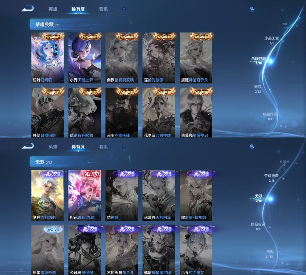 _2287395-实名:可修改贵族等级:v8英雄数:127皮肤数:333荣耀水晶:武则天天鹅之梦幻阙歌无双皮:青丘·九尾碎月剑心传说皮:黄金射手座云鹰飞将黄金白羊座猫影幻舞久胜战神末日机甲-孙尚香海洋之心地狱之眼游龙清影燃星之曲妄想奇谈幻光神呛限定皮:李小龙祈雪灵祝梁祝云端筑梦师引擎之心辉光之辰异界灵契神威乒乒小将太华青春决赛季冰霜恋舞曲逐梦之影美猴王白虎志青龙志玄武志朱雀志凤凰于飞至尊宝大圣娶亲高山流水唐三藏星穹之声五谷丰年绯月行至美·化雀舞愿照·众生和