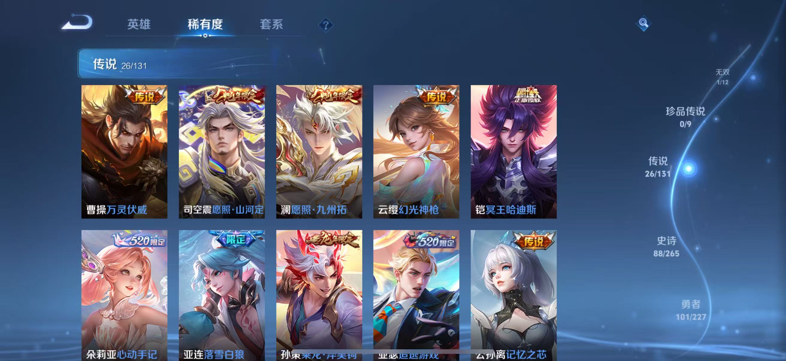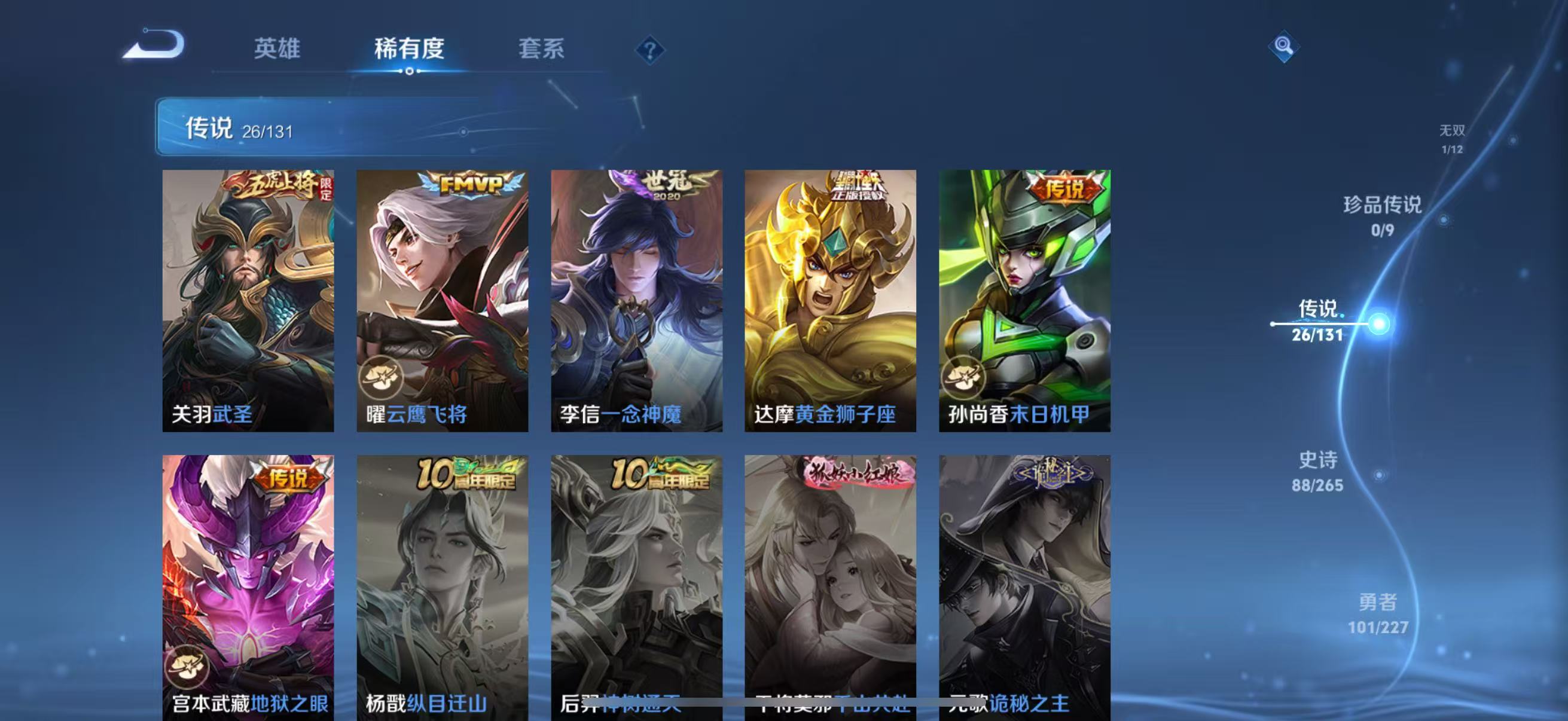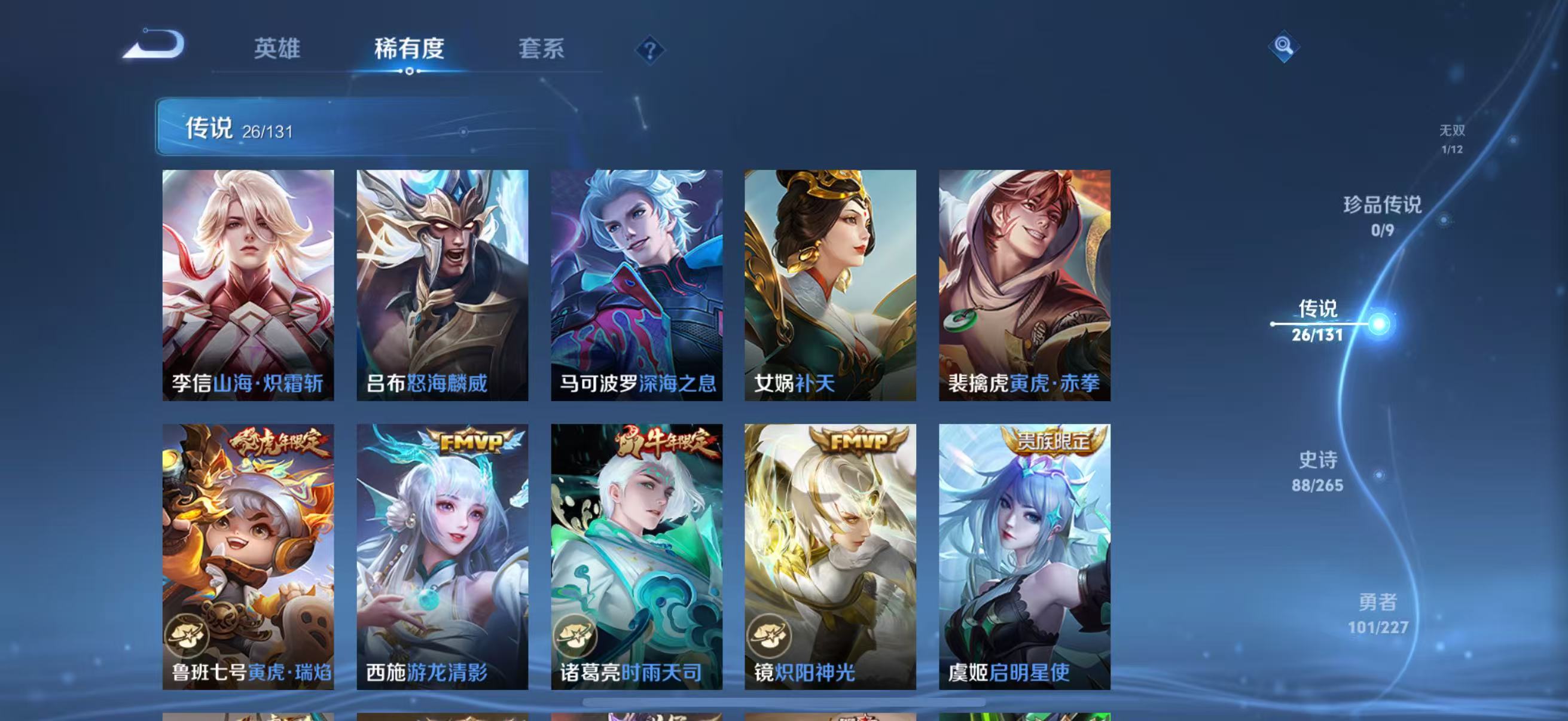 【王者荣耀】【lywz21958】珍品无双0 典藏3 无双1 珍品传说0 传说26 史诗88 英雄127 皮肤263 贵族9级 荣耀典藏:天鹅之梦|赤影疾锋|鸣剑·曳影__无双皮肤:器灵·螭龙剑__传说皮肤:深海之息|补天|炽阳神光|启明星使|地狱之眼|黄金狮子座|一念神魔|云鹰飞将|游龙清影|记忆之芯|孙尚香-末日机甲|落雪白狼|怒海麟威|时雨天司|武圣|亚瑟-追逃游戏|寅虎·瑞焰|乘龙·淬吴钩|山海·炽霜斩|朵莉亚-心动手记|寅虎·赤拳|冥王哈迪斯|幻光神呛|愿照·山河定|愿照·九州拓|万灵伏威__稀有限定:寅虎·御盾|寅虎·展翼|寅虎·心曲|神威|傲雪梅呛|梁祝|冰锋战神|冰霜恋舞曲|大漠名商|高山流水|古海寻踪|海滩派对|海盐诗旅|航海奇遇记|后羿-如梦令|胡桃异想国|幻夜卜梦|皇家上将|火炮绅士|剑破天穹|金庭之子|黎明之约|魔术师|女武神|千军破阵|擒涛扼浪|青焰无极|驱傩正仪|荣光圣徽|沙漠行僧|探海日志|天狼溯光者|天穹祈灯|万华元夜|妄想食味|无心|演武夺筹|夜都怪侠|阴阳师|吟游魔法|原初追逐者|云间偶戏|真爱魔法|逐梦之影|暗夜贵公子|暗隐猎兽者|暗渊魔法|缤纷独角兽|冰冠公主|冰雪圆舞曲|乘风破浪|德古拉伯爵|地狱岩魂|电玩·爆裂旋风|浮梦罗烟|功夫厨神|鬼剑武藏|箭羽风息|节奏热浪|金属风暴|李元芳-蔬乡物语|吕布-末日机甲|魅力维加斯|魅语|梦奇-顽趣|女仆咖啡|偶像歌手|奇遇舞章|奇遇星旅|赏金猎手|绅士熊喵|圣诞狂欢|圣诞恋歌|鲁班七号-蔬乡物语|水果甜心|水晶猎龙者|孙策-猫狗日记|滕王阁序|天才门将|天秀·启明|晚萤|赵云-未来纪元|星夜王子|雪上飞焰|鹰眼统帅|永昼|幽灵船长|遇见神鹿|炽弈燎原|战舞者|东方月初|蔡文姬-夏日便利店|虞姬-夏日便利店|天穹之誓|海诺-心动手记|修罗|曙光守护者|心灵战警|孙尚香-时之恋人|舞动绿茵|特工魅影|心灵骇客|飞车小橘子|星界战将|谧流熔炉|器灵·浮梦炉|狼魂孤将|原初探秘者|云中旅人|达摩-星际陆战队|苍威无极|圣弓游侠|墨子-神迹守卫|死神来了|龙之律动|虚灵犬护|逆浪荇歌|涂山容容|荣光之誓|万灵启世|鹤鸣心笺__优质皮肤:尼罗河女神|创世神祝|埃及法老|孤猎|熊喵少女|露花倒影|未来旅行|激情绿茵|海之征途|天启骑士|碧珀绯影|秩序猎龙将|锦衣卫|超能战警|英喵野望|维京掠夺者|海军大将|踏雪寻梅|启蛰|画中游|芝加哥教父|地府判官|幸存者|赤焰之缨|前尘|特种部队|龙域领主|爱与和平|占星师|花间舞|魇语军师|花见巫女|灼热之刃|圣殿之光|战争女神|霓裳曲|阿摩司公爵|精灵公主|绒语心约|长夏之忆|异域游侠|暗都幽影|功夫炙烤|潮玩探月行|虎啸剑宗|秘密基地|次元突破|鲨炮海盗猫|丁香结|虹云星官|幻乐之宴|功夫老勺|幻想奇妙夜|海滩丽影|兔女郎|死亡骑士|天使之翼|玩偶对对碰|宫本武藏-未来纪元|忍·炎影|教廷特使|时空谍影|破局者|零食大作战|西部游侠|太极少年|乐园追猎者|幻泉雾影|潮玩造梦师|危途狂花|契约魔法|时尚教父|救世之瞳|白色死神|爱与正义|哥特玫瑰|魅影绮裳|金福满堂|星梦巡礼|灵卦秘语|缤纷绘卷|纽约教父|龙腾万里|霸王丸|西施-归虚梦演|鲁班大师-归虚梦演|龙舞盛年|汉昭烈帝|乓乓大师|五福同心|盾山-圆桌骑士|蒙犽-归虚梦演|万事如意|曜-归虚梦演|太乙真人-圆桌骑士|沉稳之力|完美运算|化身博士|花好人间|熔金海岸|潮玩骑士王|万象初新|苍林狼骑|蔚蓝守将|特工战影|妄想特派|命运加冕|小满鸭|无双福将|克喵|径山谋武__贵族等级:贵族9级__王者段位:非凡王者【边路40段 小国赵怀真】3典藏 曜无双 愿照·九州拓,愿照·山河定,心动手记,乘龙·淬吴钩,落雪白狼,深海之息,补天,启明星使,寅虎·赤拳,寅虎·瑞焰等限定皮肤