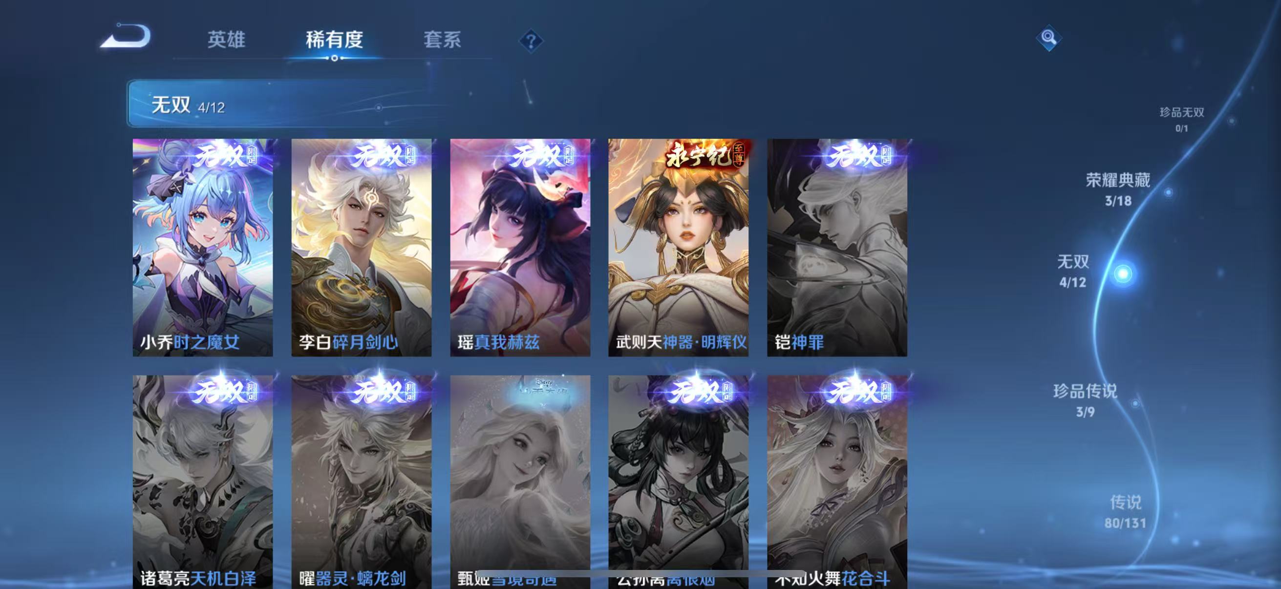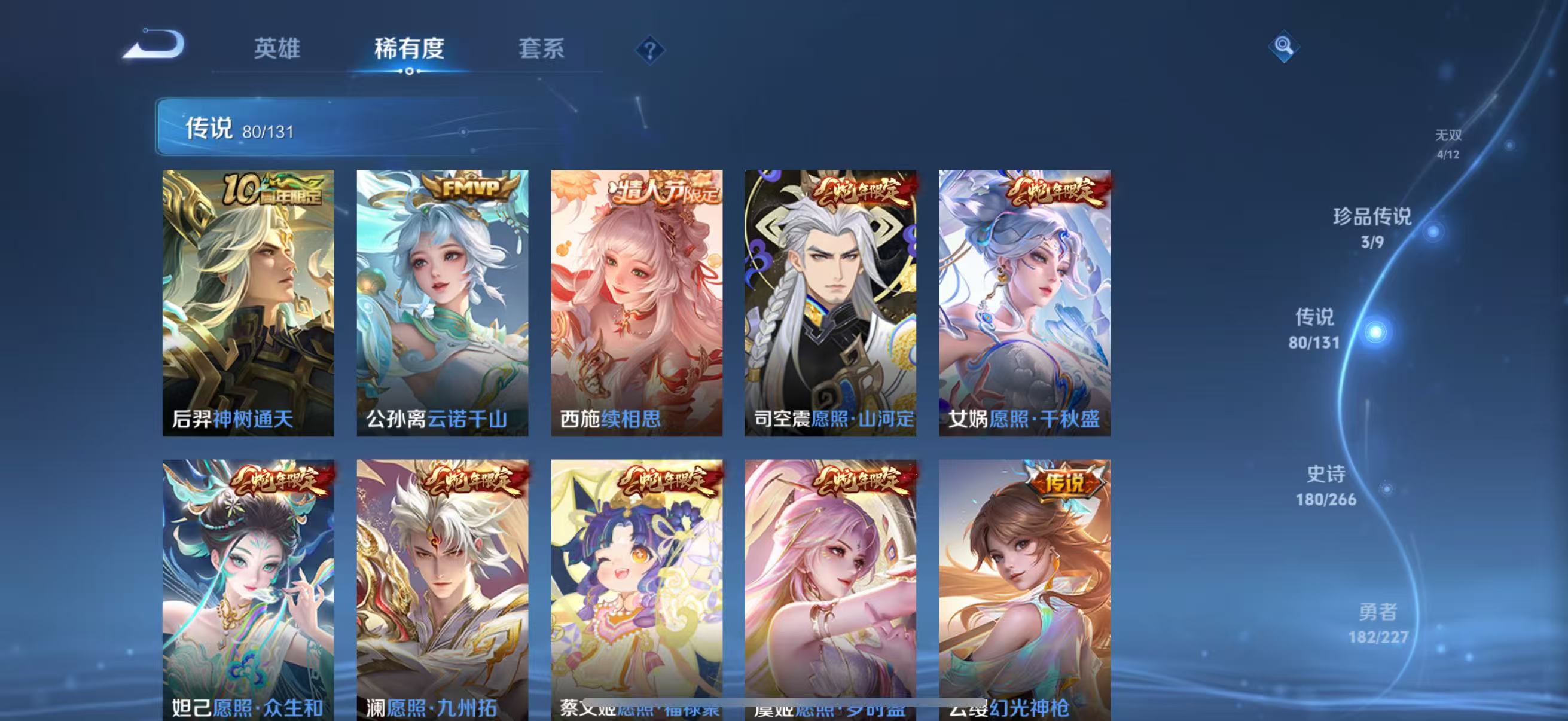 【王者荣耀】【lywz21990】珍品无双0 典藏3 无双4 珍品传说3 传说80 史诗179 英雄128 皮肤534 贵族10级 荣耀典藏:全息碎影|武则天|神鉴启示录|幻阙歌__无双皮肤:时之魔女|碎月剑心|真我赫兹|神器·明辉仪__珍品传说:江户川柯南|怪盗基德|孙策-时之奇旅__传说皮肤:鸣野蒿|枫霜尽|前尘镜|深海之息|无尽星芒|无双飞将|挚爱之约|启示之音|异界灵契|绛天战甲|炽阳神光|启明星使|胖达荣荣|地狱之眼|地狱火|孙策-末日机甲|仲夏夜之梦|云霓雀翎|久胜战神|黄金狮子座|狄仁杰-超时空战士|黄金射手座|黄金白羊座|刘备-时之恋人|一念神魔|云鹰飞将|冠军飞将|飞鸢探春|李|游龙清影|乞巧织情|淬星耀世|炽翼辉光|绯月行|浮生妄|画中仙|孙尚香-末日机甲|齐天大圣|凤求凰|兰陵王-默契交锋|零号·赤焰|鲁班七号-时之奇旅|怒海麟威|燃星之曲|诗剑行|碎云|妄想奇谈|妄想实况|武陵仙君|项羽-无限倾心|小乔-音你心动|星穹之声|亚瑟-追逃游戏|虞姬-无限倾心|遇见胡旋|战鼓燎原|周瑜-音你心动|逐花归海|云缨-鹤归松栖|觅芳踪|山海·苍雷引|山海·炽霜斩|山海·琳琅生|神器·狴犴令|朵莉亚-心动手记|灼幽烈阳|映山客|张飞-百相守梦|玄雷天君|幻光神呛|祥瑞亨通|愿照·岁时盈|愿照·山河定|愿照·九州拓|愿照·众生和|愿照·福禄聚|愿照·千秋盛|续相思|云诺千山|神树通天__稀有限定:寅虎·御盾|至尊宝|青龙志|玄武志|朱雀志|大圣娶亲|一生所爱|引擎之心|幽恒|飞衡|虎魄|神威|烈魂|龙胆|孙行者|傲雪梅呛|玉兔公主|李小龙|梁祝|山海·碧波行|山海·玄木吟|神器·万象笔|狮舞东方|唐三藏|拒霜思|暗影游猎|白昼王子|百解令|百木心呛|冰锋战神|妲己-时之奇旅|地狱燃心|电玩高手|繁星吟游|高山流水|古海寻踪|海滩派对|海盐诗旅|航海奇遇记|胡桃异想国|华丽摇滚|幻夜卜梦|皇家上将|辉光之辰|混沌棋|火炮绅士|剑破天穹|江河有灵|降魔|镜-真我赫兹|凯尔特女王|狂想玩偶喵|蓝屏警告|黎明之约|炼金王|梦圆繁星|迷踪丽影|魔术师|花木兰-默契交锋|匿光决锋者|匿光破解者|匿光启智者|千军破阵|擒涛扼浪|穷奇|驱傩正仪|燃音魔法|热情桑巴|荣光圣徽|沙漠行僧|朔风刀|死亡摇滚|探海日志|饕餮|醍醐杖|天狼狩猎者|天狼征服者|天穹祈灯|玩趣恶龙|阿古朵-顽趣|万华元夜|王者之锤|妄想食味|无心|五谷丰年|午后时光|纤云弄巧|星界游侠|星空之诺|驯魔猎人|演武夺筹|妖精王|疑决卦|阴阳师|银河之约|游园惊梦|驭风魔法|遇见飞天|御旌|御銮|御狮|原初追逐者|云间偶戏|逐梦之星|逐梦之音|逐梦之影|暗夜贵公子|暗夜猫娘|暗隐猎兽者|暗渊魔法|白龙吟|白蛇|缤纷独角兽|冰冠公主|冰雪圆舞曲|苍穹之光|乘风破浪|大乔-猫狗日记|德古拉伯爵|地狱岩魂|电玩小子|浮梦罗烟|功夫厨神|鬼剑武藏|唤灵魅影|黄金分割率|箭羽风息|节奏热浪|金属风暴|莱西奥-末日机甲|乐园奇幻夜|李元芳-蔬乡物语|龙鼓争鸣|龙骑士|吕布-末日机甲|魅力维加斯|魅语|梦奇-顽趣|女仆咖啡|偶像歌手|奇遇舞章|千筹问战|青蛇|热力回旋|赏金猎手|绅士熊喵|圣诞狂欢|圣诞恋歌|诗语江南|鲁班七号-蔬乡物语|水果甜心|水晶猎龙者|孙策-猫狗日记|天才门将|天秀·幻梦|天秀·启明|天秀·音浪|完美假期|晚萤|赵云-未来纪元|嘻哈天王|星夜王子|雪上飞焰|雪夜绮愿|摇滚巨星|夜落电台|鹰眼统帅|永昼|幽灵船长|遇见神鹿|月团寄思|云中君-时之祈愿|职棒王牌|至美·乘鲤谣|钟无艳-超时空战士|周瑜-真爱至上|逐浪之夏|紫霞仙子|赵怀真-鹤归松栖|百里守约-百相守梦|老夫子-百相守梦|陌上桑|谪仙醉月|星界特工|噬灭天穹|敬我三分|炽弈燎原|撼地雄心|破空之剑|埋骨钱|天穹之誓|安琪拉-时之奇旅|修罗|曙光守护者|心灵战警|千年之狐|关羽-百相守梦|刘备-百相守梦|孙尚香-时之恋人|无限星赏官|舞动绿茵|特工魅影|心灵骇客|飞车小橘子|茶境仙|星界战将|谧流熔炉|器灵·浮梦炉|狼魂孤将|化蝶舞|御霄|狰|烛龙|原初探秘者|重明|云中旅人|玲珑珍味|单词大作战|朔望之晖|钟馗-神迹守卫|孙悟空-神迹守卫|达摩-星际陆战队|流音漫舞|访茗客|暖冬·兔眠|灵卜魔法|夺宝奇兵|墨子-神迹守卫|落雪兰心|死神来了|天堂福音|华尔街大亨|龙之律动|涂山容容|光弋星穹|往忆晖光|荣光之誓|万灵启世|巫礼祀神|鹤鸣心笺__优质皮肤:尼罗河女神|一千零一夜|创世神祝|年年有余|埃及法老|孤猎|木偶奇遇记|熊喵少女|午夜歌剧院|露花倒影|未来旅行|激情绿茵|海之征途|天启骑士|碧珀绯影|秩序猎龙将|锦衣卫|冰刃幻境|森|超能战警|英喵野望|维京掠夺者|海军大将|绯红之刃|踏雪寻梅|启蛰|战争骑士|伊势巫女|画中游|生化警戒|威尼斯狂欢|第七人偶|潮流仙人|芝加哥教父|街头旋风|绝影神呛|地府判官|荷鲁斯之眼|幸存者|赤焰之缨|福禄兄弟|隐刃|前尘|特种部队|三太子|精灵王|剑舞者|范海辛|星航指挥官|龙域领主|爱与和平|占星师|花间舞|魇语军师|极冰防御线|花见巫女|棒球奇才|东海龙王|蔷薇王座|灼热之刃|精准探案法|圣殿之光|帝国元帅|神奇女侠|战争女神|霓裳曲|加勒比小姐|阿摩司公爵|异域舞娘|精灵公主|修竹墨客|万圣前夜|怪诞之夜|动物派对|暗都幽影|功夫炙烤|暖冬絮语|幻夜行动|聚星闪耀|潮玩探月行|虎啸剑宗|瓷语鉴心|秘密基地|次元突破|鲨炮海盗猫|野性能量|丁香结|奇妙博物学|虹云星官|科学大爆炸|守护之力|坚韧之力|幻乐之宴|功夫老勺|命运角斗场|幻想