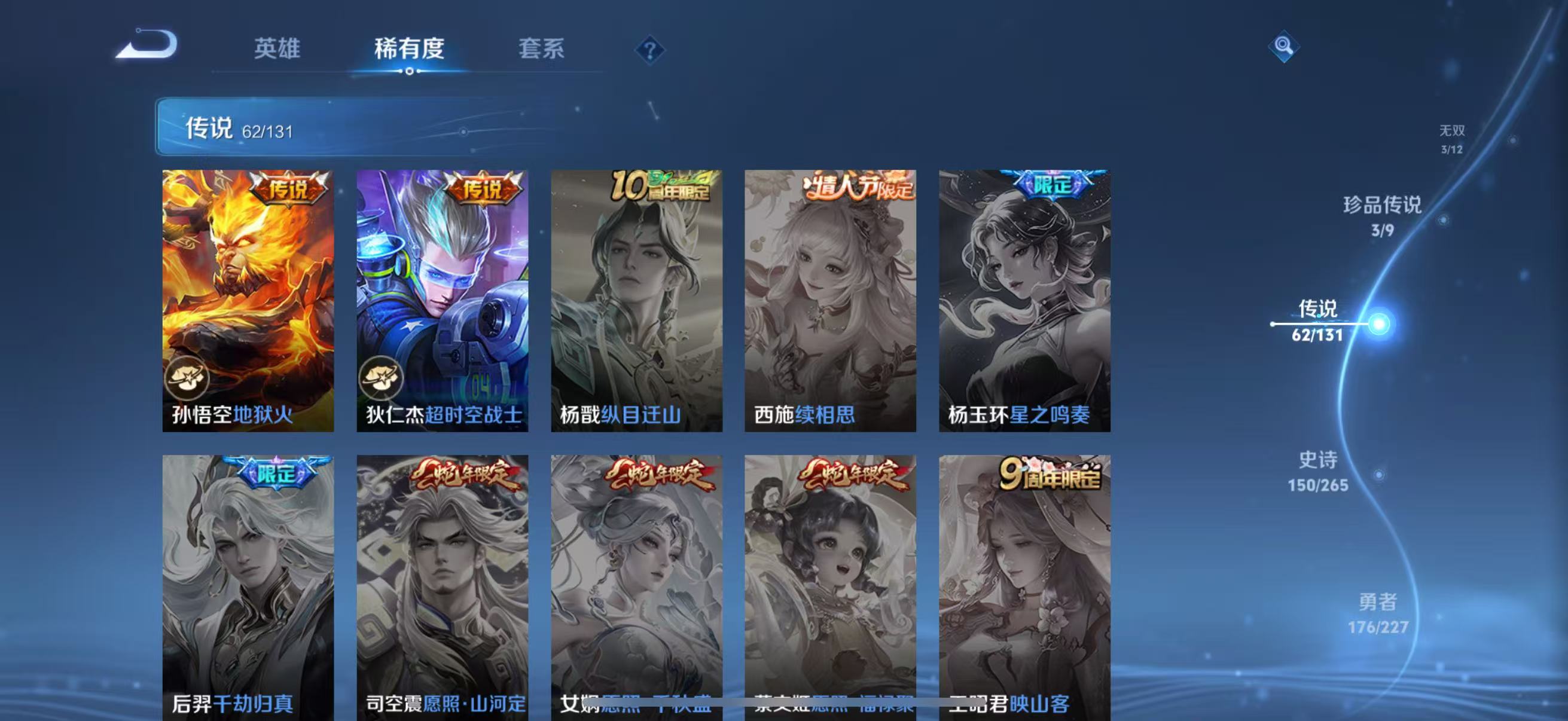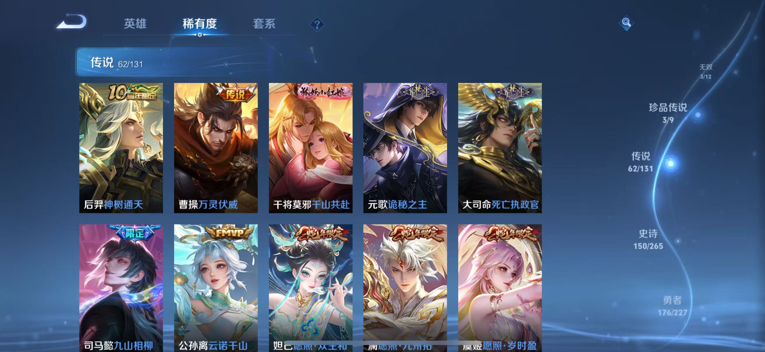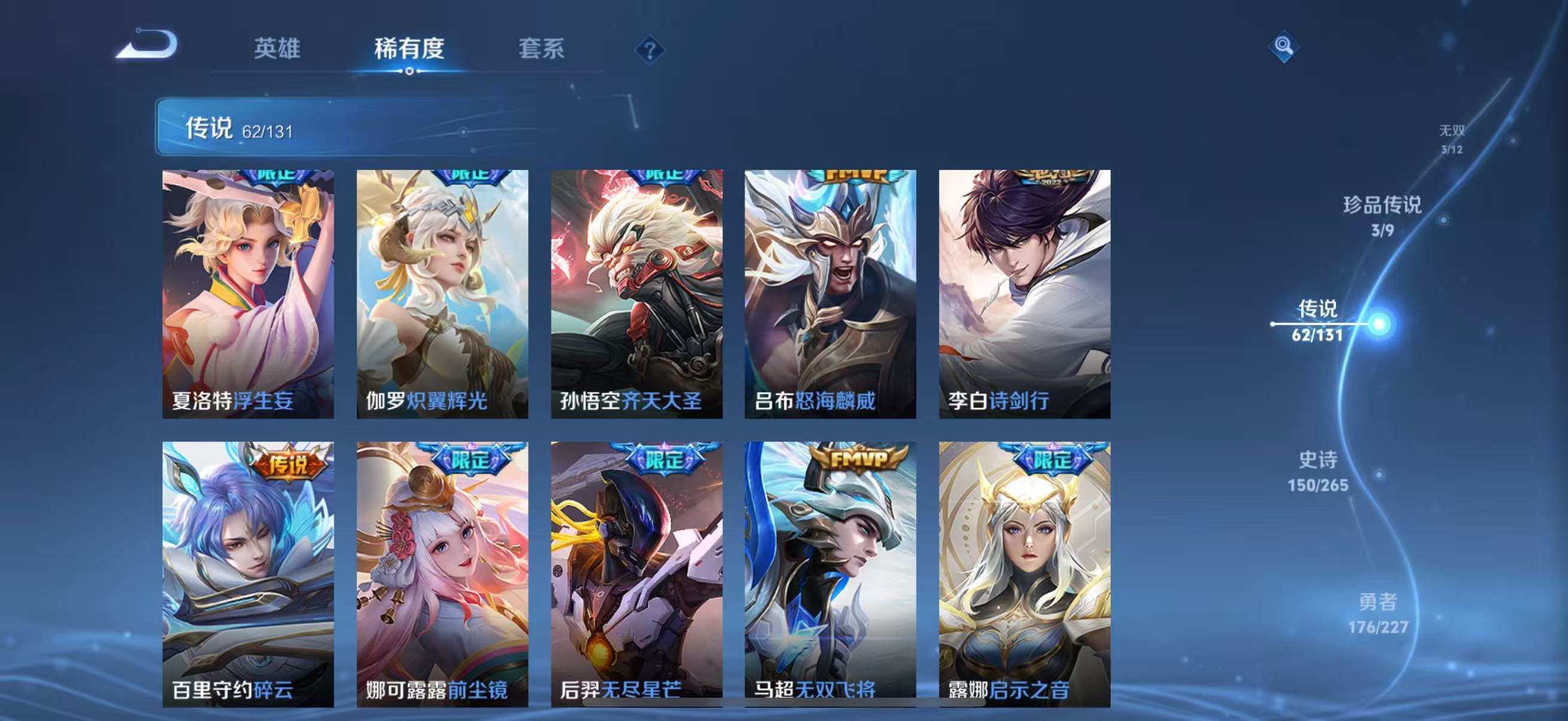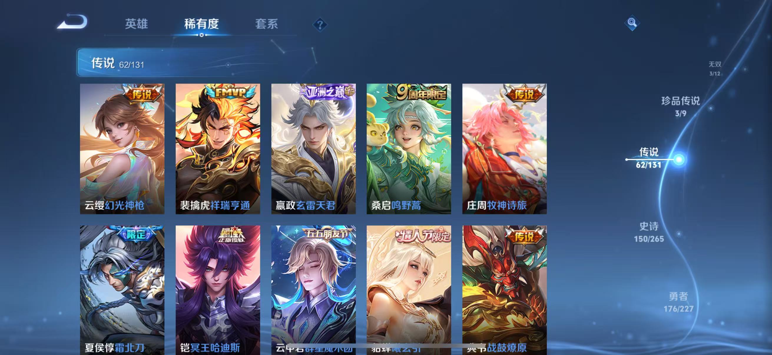 【王者荣耀】【lywz21988】珍品无双0 典藏5 无双3 珍品传说3 传说62 史诗150 英雄127 皮肤478 贵族无双级 荣耀典藏:天鹅之梦|神鉴启示录|赤影疾锋|弑呛猎影|星域神启__无双皮肤:花合斗|天机白泽|神罪__珍品传说:江户川柯南|孙策-时之奇旅|黑崎一护__传说皮肤:鸣野蒿|前尘镜|无尽星芒|无双飞将|启示之音|花朝如约|异界灵契|炽阳神光|启明星使|地狱火|孙策-末日机甲|仲夏夜之梦|久胜战神|黄金狮子座|狄仁杰-超时空战士|黄金射手座|黄金白羊座|刘备-时之恋人|一念神魔|云鹰飞将|冠军飞将|飞鸢探春|游龙清影|乞巧织情|淬星耀世|炽翼辉光|浮生妄|记忆之芯|齐天大圣|大乔-时之奇旅|铠-琥珀纪元|零号·赤焰|鲁班七号-时之奇旅|怒海麟威|诗剑行|霜月吟|碎云|貂蝉-曦玄引|小动物乐团|战鼓燎原|周瑜-音你心动|逐花归海|觅芳踪|云中君-群星魔术团|至美·化雀舞|灼幽烈阳|冥王哈迪斯|牧神诗旅|玄雷天君|幻光神呛|祥瑞亨通|愿照·岁时盈|愿照·九州拓|愿照·众生和|云诺千山|九山相柳|死亡执政官|诡秘之主|千山共赴|万灵伏威|神树通天__稀有限定:寅虎·御盾|至尊宝|大圣娶亲|岱宗|蔷薇恋人|乒乒小将|孙行者|猪悟能|女儿国国王|傲雪梅呛|李小龙|梁祝|山海·玄木吟|狮舞东方|拒霜思|暗影游猎|百解令|百里守约-真我赫兹|百木心呛|冰霜恋舞曲|超元猎域|大漠名商|地狱燃心|电玩高手|高山流水|古海寻踪|海滩派对|海盐诗旅|胡桃异想国|幻夜卜梦|皇家上将|混沌棋|火炮绅士|剑破天穹|江河有灵|降魔|金庭之子|镜-真我赫兹|决胜骁骑|魔术师|匿光决锋者|匿光侦查者|千军破阵|擒涛扼浪|青焰无极|燃音魔法|沙漠行僧|朔风刀|探海日志|醍醐杖|天穹祈灯|阿古朵-顽趣|万华元夜|妄想食味|五谷丰年|午后时光|纤云弄巧|驯魔猎人|演武夺筹|夜都怪侠|疑决卦|阴阳师|吟游魔法|游园惊梦|驭风魔法|遇见飞天|御銮|云间偶戏|逐梦之翼|暗夜猫娘|暗隐猎兽者|暗渊魔法|白龙吟|缤纷独角兽|冰冠公主|冰雪圆舞曲|苍穹之光|乘风破浪|乘龙·聚宝船|大乔-猫狗日记|德古拉伯爵|地狱岩魂|电玩·爆裂旋风|电玩·兔顽号|电玩小子|浮梦罗烟|伽罗-琥珀纪元|功夫厨神|鬼剑武藏|唤灵魅影|黄金分割率|箭羽风息|节奏热浪|金属风暴|乐园奇幻夜|李元芳-蔬乡物语|龙鼓争鸣|龙骑士|吕布-末日机甲|魅力维加斯|魅语|女仆咖啡|偶像歌手|奇遇舞章|奇遇星旅|青蛇|赏金猎手|上官婉儿-群星魔术团|绅士熊喵|圣诞狂欢|圣诞恋歌|鲁班七号-蔬乡物语|水果甜心|水晶猎龙者|孙策-猫狗日记|天才门将|天秀·启明|天秀·音浪|完美假期|晚萤|赵云-未来纪元|闲日渔趣|星夜王子|摇滚巨星|夜落电台|鹰眼统帅|永昼|幽灵船长|遇见神鹿|月团寄思|至美·乘鲤谣|钟无艳-超时空战士|逐浪之夏|紫霞仙子|百里守约-百相守梦|老夫子-百相守梦|谪仙醉月|噬灭天穹|敬我三分|破空之剑|霜北刀|埋骨钱|蔡文姬-夏日便利店|虞姬-夏日便利店|天穹之誓|浮光幕影|怒海争锋|海诺-心动手记|安琪拉-时之奇旅|修罗|曙光守护者|心灵战警|千年之狐|孙尚香-时之恋人|无限星赏官|舞动绿茵|特工魅影|心灵骇客|飞车小橘子|茶境仙|谧流熔炉|苍鳞隐世|万物之道|器灵·浮梦炉|绮世丹青|化蝶舞|原初探秘者|云中旅人|玲珑珍味|钟馗-神迹守卫|孙悟空-神迹守卫|流音漫舞|访茗客|灵卜魔法|苍威无极|落雪兰心|刘禅-鸭鸭历险记|沈梦溪-鸭鸭历险记|龙之律动|虚灵犬护|小牛鸭|逆浪荇歌|孙策-百相守梦|周瑜-百相守梦|戍鼓铭心|幻珠鲛人|黄忠-百相守梦|织梦人|守夜人|涂山容容|光弋星穹|傩神司|往忆晖光|荣光之誓|巫礼祀神|鹤鸣心笺__优质皮肤:尼罗河女神|一千零一夜|创世神祝|年年有余|埃及法老|孤猎|木偶奇遇记|熊喵少女|午夜歌剧院|露花倒影|未来旅行|激情绿茵|海之征途|天启骑士|碧珀绯影|秩序猎龙将|锦衣卫|冰刃幻境|森|超能战警|英喵野望|维京掠夺者|海军大将|绯红之刃|踏雪寻梅|启蛰|战争骑士|伊势巫女|画中游|生化警戒|威尼斯狂欢|第七人偶|潮流仙人|芝加哥教父|街头旋风|绝影神呛|地府判官|荷鲁斯之眼|幸存者|赤焰之缨|福禄兄弟|隐刃|前尘|特种部队|三太子|精灵王|剑舞者|范海辛|星航指挥官|龙域领主|爱与和平|占星师|花间舞|魇语军师|极冰防御线|花见巫女|棒球奇才|东海龙王|蔷薇王座|灼热之刃|精准探案法|圣殿之光|帝国元帅|战争女神|霓裳曲|加勒比小姐|阿摩司公爵|异域舞娘|精灵公主|修竹墨客|万圣前夜|怪诞之夜|动物派对|长夏之忆|异域游侠|暗都幽影|功夫炙烤|暖冬絮语|幻夜行动|聚星闪耀|潮玩探月行|虎啸剑宗|瓷语鉴心|秘密基地|次元突破|鲨炮海盗猫|野性能量|丁香结|虹云星官|守护之力|坚韧之力|幻乐之宴|功夫老勺|命运角斗场|幻想奇妙夜|海滩丽影|阿尔法小队|兔女郎|死亡骑士|黄金武士|少女阿狸|天使之翼|玩偶对对碰|宫本武藏-未来纪元|红桃皇后|忍·炎影|爱心护理|街头霸王|教廷特使|鸿运当头|金色潮汐|时空谍影|决胜大满贯|破局者|王牌新星|零食大作战|西部游侠|太极少年|牛运亨通|幻泉雾影|潮玩造梦师|危途狂花|胡桃狂想曲|契约魔法|潮玩牛仔|紫罗兰之誓|铁甲之心|重装意志|黑桃队长|拳王|时尚教父|鲤鱼之梦|救世之瞳|白色死神|爱与正义|程咬金-星际陆战队|白执事|大发明家|哥特玫瑰|魅影绮裳|西施-雪境奇遇|金福满堂|星梦巡礼|灵卦秘语|爆裂喵拳|景韶洛都|浪漫序章|缤纷绘卷|掌控之力|雾都夜雨|逐霄战戟|铁骨