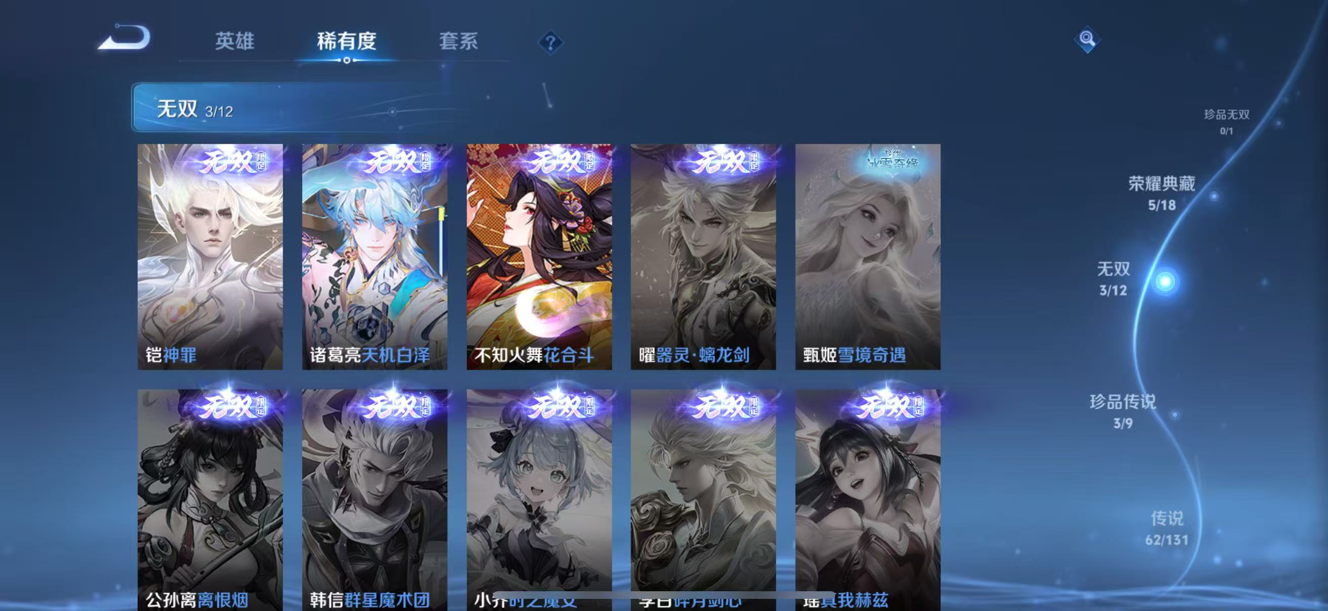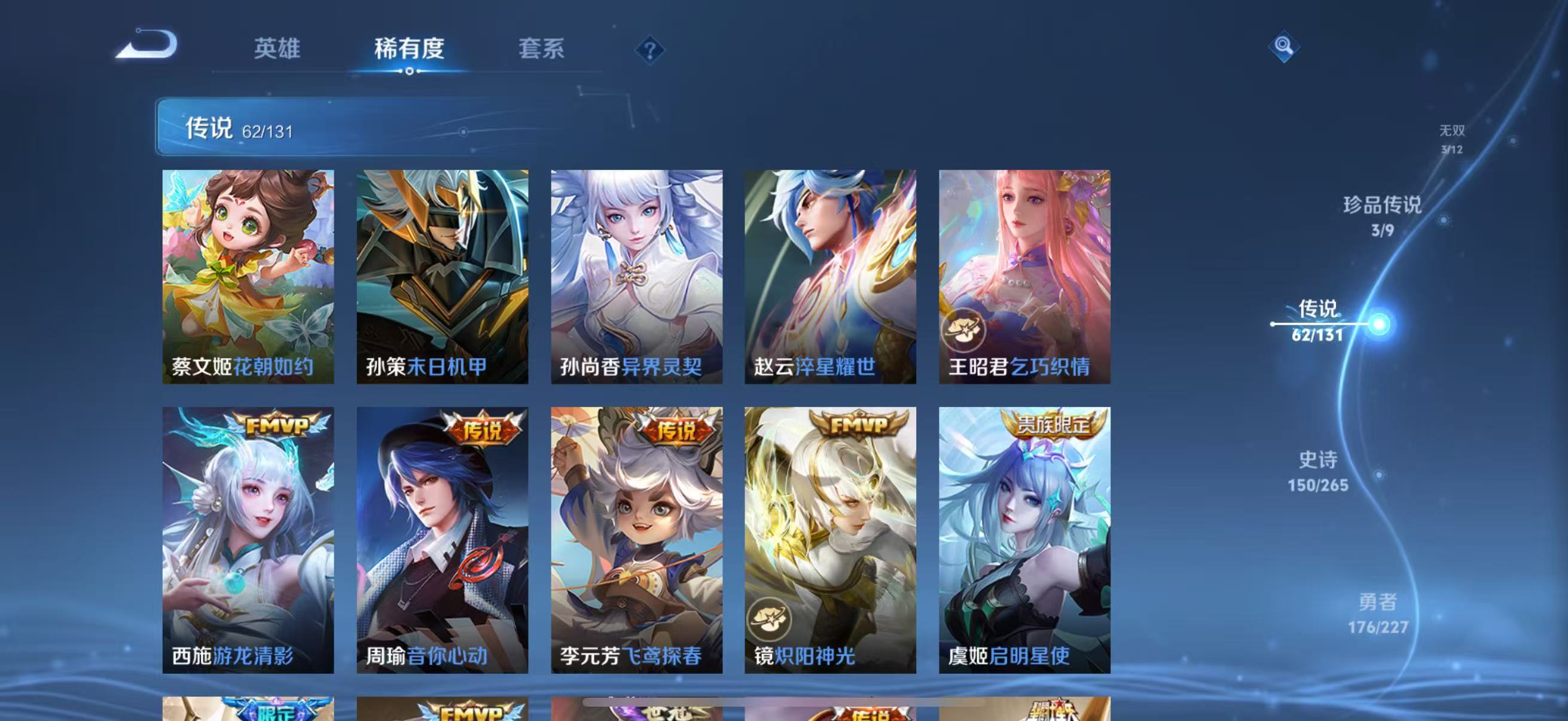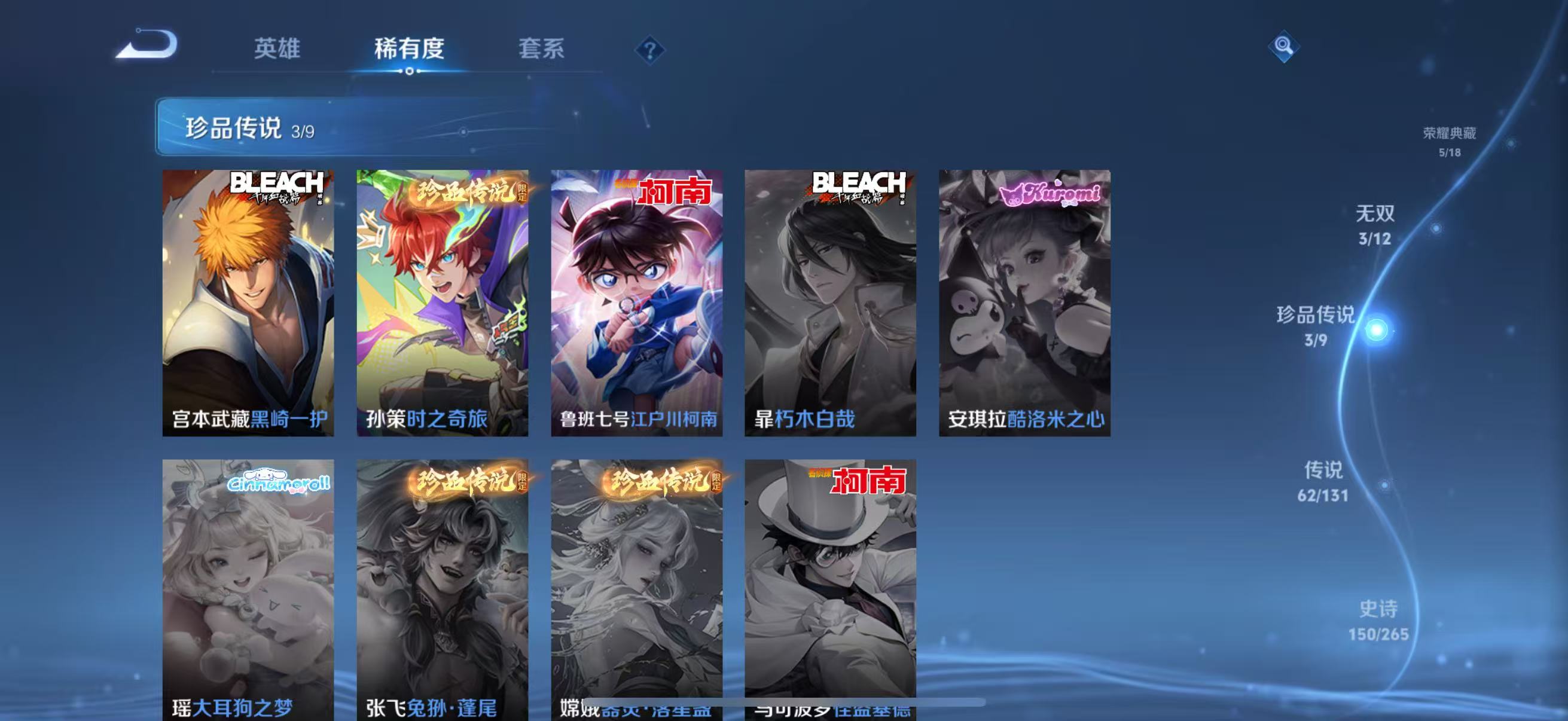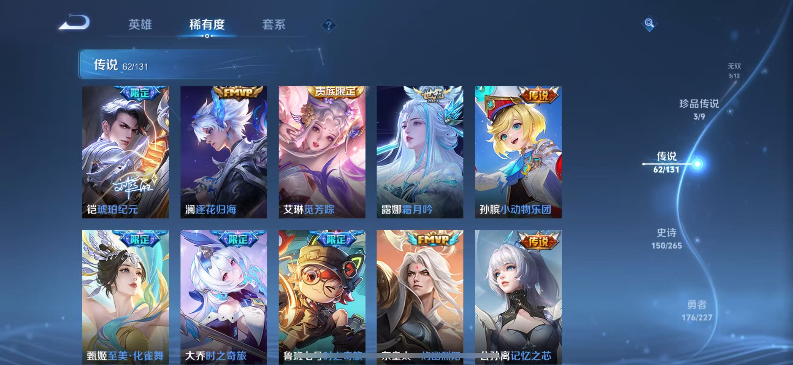【王者荣耀】【lywz21988】珍品无双0 典藏5 无双3 珍品传说3 传说62 史诗150 英雄127 皮肤478 贵族无双级 荣耀典藏:天鹅之梦|神鉴启示录|赤影疾锋|弑呛猎影|星域神启__无双皮肤:花合斗|天机白泽|神罪__珍品传说:江户川柯南|孙策-时之奇旅|黑崎一护__传说皮肤:鸣野蒿|前尘镜|无尽星芒|无双飞将|启示之音|花朝如约|异界灵契|炽阳神光|启明星使|地狱火|孙策-末日机甲|仲夏夜之梦|久胜战神|黄金狮子座|狄仁杰-超时空战士|黄金射手座|黄金白羊座|刘备-时之恋人|一念神魔|云鹰飞将|冠军飞将|飞鸢探春|游龙清影|乞巧织情|淬星耀世|炽翼辉光|浮生妄|记忆之芯|齐天大圣|大乔-时之奇旅|铠-琥珀纪元|零号·赤焰|鲁班七号-时之奇旅|怒海麟威|诗剑行|霜月吟|碎云|貂蝉-曦玄引|小动物乐团|战鼓燎原|周瑜-音你心动|逐花归海|觅芳踪|云中君-群星魔术团|至美·化雀舞|灼幽烈阳|冥王哈迪斯|牧神诗旅|玄雷天君|幻光神呛|祥瑞亨通|愿照·岁时盈|愿照·九州拓|愿照·众生和|云诺千山|九山相柳|死亡执政官|诡秘之主|千山共赴|万灵伏威|神树通天__稀有限定:寅虎·御盾|至尊宝|大圣娶亲|岱宗|蔷薇恋人|乒乒小将|孙行者|猪悟能|女儿国国王|傲雪梅呛|李小龙|梁祝|山海·玄木吟|狮舞东方|拒霜思|暗影游猎|百解令|百里守约-真我赫兹|百木心呛|冰霜恋舞曲|超元猎域|大漠名商|地狱燃心|电玩高手|高山流水|古海寻踪|海滩派对|海盐诗旅|胡桃异想国|幻夜卜梦|皇家上将|混沌棋|火炮绅士|剑破天穹|江河有灵|降魔|金庭之子|镜-真我赫兹|决胜骁骑|魔术师|匿光决锋者|匿光侦查者|千军破阵|擒涛扼浪|青焰无极|燃音魔法|沙漠行僧|朔风刀|探海日志|醍醐杖|天穹祈灯|阿古朵-顽趣|万华元夜|妄想食味|五谷丰年|午后时光|纤云弄巧|驯魔猎人|演武夺筹|夜都怪侠|疑决卦|阴阳师|吟游魔法|游园惊梦|驭风魔法|遇见飞天|御銮|云间偶戏|逐梦之翼|暗夜猫娘|暗隐猎兽者|暗渊魔法|白龙吟|缤纷独角兽|冰冠公主|冰雪圆舞曲|苍穹之光|乘风破浪|乘龙·聚宝船|大乔-猫狗日记|德古拉伯爵|地狱岩魂|电玩·爆裂旋风|电玩·兔顽号|电玩小子|浮梦罗烟|伽罗-琥珀纪元|功夫厨神|鬼剑武藏|唤灵魅影|黄金分割率|箭羽风息|节奏热浪|金属风暴|乐园奇幻夜|李元芳-蔬乡物语|龙鼓争鸣|龙骑士|吕布-末日机甲|魅力维加斯|魅语|女仆咖啡|偶像歌手|奇遇舞章|奇遇星旅|青蛇|赏金猎手|上官婉儿-群星魔术团|绅士熊喵|圣诞狂欢|圣诞恋歌|鲁班七号-蔬乡物语|水果甜心|水晶猎龙者|孙策-猫狗日记|天才门将|天秀·启明|天秀·音浪|完美假期|晚萤|赵云-未来纪元|闲日渔趣|星夜王子|摇滚巨星|夜落电台|鹰眼统帅|永昼|幽灵船长|遇见神鹿|月团寄思|至美·乘鲤谣|钟无艳-超时空战士|逐浪之夏|紫霞仙子|百里守约-百相守梦|老夫子-百相守梦|谪仙醉月|噬灭天穹|敬我三分|破空之剑|霜北刀|埋骨钱|蔡文姬-夏日便利店|虞姬-夏日便利店|天穹之誓|浮光幕影|怒海争锋|海诺-心动手记|安琪拉-时之奇旅|修罗|曙光守护者|心灵战警|千年之狐|孙尚香-时之恋人|无限星赏官|舞动绿茵|特工魅影|心灵骇客|飞车小橘子|茶境仙|谧流熔炉|苍鳞隐世|万物之道|器灵·浮梦炉|绮世丹青|化蝶舞|原初探秘者|云中旅人|玲珑珍味|钟馗-神迹守卫|孙悟空-神迹守卫|流音漫舞|访茗客|灵卜魔法|苍威无极|落雪兰心|刘禅-鸭鸭历险记|沈梦溪-鸭鸭历险记|龙之律动|虚灵犬护|小牛鸭|逆浪荇歌|孙策-百相守梦|周瑜-百相守梦|戍鼓铭心|幻珠鲛人|黄忠-百相守梦|织梦人|守夜人|涂山容容|光弋星穹|傩神司|往忆晖光|荣光之誓|巫礼祀神|鹤鸣心笺__优质皮肤:尼罗河女神|一千零一夜|创世神祝|年年有余|埃及法老|孤猎|木偶奇遇记|熊喵少女|午夜歌剧院|露花倒影|未来旅行|激情绿茵|海之征途|天启骑士|碧珀绯影|秩序猎龙将|锦衣卫|冰刃幻境|森|超能战警|英喵野望|维京掠夺者|海军大将|绯红之刃|踏雪寻梅|启蛰|战争骑士|伊势巫女|画中游|生化警戒|威尼斯狂欢|第七人偶|潮流仙人|芝加哥教父|街头旋风|绝影神呛|地府判官|荷鲁斯之眼|幸存者|赤焰之缨|福禄兄弟|隐刃|前尘|特种部队|三太子|精灵王|剑舞者|范海辛|星航指挥官|龙域领主|爱与和平|占星师|花间舞|魇语军师|极冰防御线|花见巫女|棒球奇才|东海龙王|蔷薇王座|灼热之刃|精准探案法|圣殿之光|帝国元帅|战争女神|霓裳曲|加勒比小姐|阿摩司公爵|异域舞娘|精灵公主|修竹墨客|万圣前夜|怪诞之夜|动物派对|长夏之忆|异域游侠|暗都幽影|功夫炙烤|暖冬絮语|幻夜行动|聚星闪耀|潮玩探月行|虎啸剑宗|瓷语鉴心|秘密基地|次元突破|鲨炮海盗猫|野性能量|丁香结|虹云星官|守护之力|坚韧之力|幻乐之宴|功夫老勺|命运角斗场|幻想奇妙夜|海滩丽影|阿尔法小队|兔女郎|死亡骑士|黄金武士|少女阿狸|天使之翼|玩偶对对碰|宫本武藏-未来纪元|红桃皇后|忍·炎影|爱心护理|街头霸王|教廷特使|鸿运当头|金色潮汐|时空谍影|决胜大满贯|破局者|王牌新星|零食大作战|西部游侠|太极少年|牛运亨通|幻泉雾影|潮玩造梦师|危途狂花|胡桃狂想曲|契约魔法|潮玩牛仔|紫罗兰之誓|铁甲之心|重装意志|黑桃队长|拳王|时尚教父|鲤鱼之梦|救世之瞳|白色死神|爱与正义|程咬金-星际陆战队|白执事|大发明家|哥特玫瑰|魅影绮裳|西施-雪境奇遇|金福满堂|星梦巡礼|灵卦秘语|爆裂喵拳|景韶洛都|浪漫序章|缤纷绘卷|掌控之力|雾都夜雨|逐霄战戟|铁骨