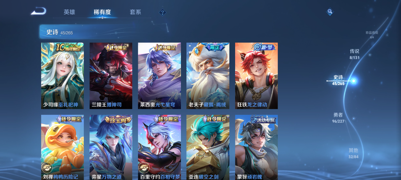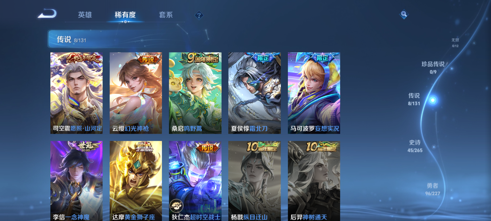 【王者荣耀】【lywz22041】珍品无双0 典藏1 无双0 珍品传说0 传说8 史诗45 英雄125 皮肤182 贵族6级 荣耀典藏:九霄神辉__传说皮肤:鸣野蒿|黄金狮子座|狄仁杰-超时空战士|一念神魔|妄想实况|幻光神呛|愿照·山河定__稀有限定:飞衡|李小龙|暗影游猎|大漠名商|地狱燃心|繁星吟游|海滩派对|皇家上将|混沌棋|金庭之子|迷踪丽影|魔术师|穷奇|驱傩正仪|圣诞老人|朔风刀|饕餮|醍醐杖|万华元夜|纤云弄巧|演武夺筹|疑决卦|阴阳师|御銮|御狮|原初追逐者|暗隐猎兽者|缤纷独角兽|乘风破浪|地狱岩魂|鬼剑武藏|黄金分割率|吕布-末日机甲|魅力维加斯|偶像歌手|圣诞狂欢|水果甜心|孙策-猫狗日记|天秀·启明|赵云-未来纪元|星夜王子|雪上飞焰|鹰眼统帅|幽灵船长|紫霞仙子|百里守约-百相守梦|老夫子-百相守梦|噬灭天穹|敬我三分|破空之剑|霜北刀|顽岩魄|天穹之誓|曙光守护者|关羽-百相守梦|孙尚香-时之恋人|无限星赏官|谧流熔炉|万物之道|御霄|狰|烛龙|原初探秘者|重明|孙悟空-神迹守卫|夺宝奇兵|刘禅-鸭鸭历险记|沈梦溪-鸭鸭历险记|藏狐·褐绒|龙之律动|布丁狗之约|虚灵犬护|光弋星穹|傩神司|往忆晖光|荣光之誓|巫礼祀神|鹤鸣心笺__优质皮肤:一千零一夜|创世神祝|年年有余|埃及法老|孤猎|午夜歌剧院|露花倒影|激情绿茵|天启骑士|秩序猎龙将|维京掠夺者|启蛰|第七人偶|潮流仙人|芝加哥教父|街头旋风|绝影神呛|幸存者|福禄兄弟|隐刃|前尘|特种部队|三太子|精灵王|魇语军师|花见巫女|东海龙王|灼热之刃|帝国元帅|加勒比小姐|动物派对|功夫炙烤|潮玩探月行|次元突破|鲨炮海盗猫|野性能量|丁香结|科学大爆炸|幻乐之宴|功夫老勺|命运角斗场|幻想奇妙夜|海滩丽影|阿尔法小队|兔女郎|死亡骑士|黄金武士|少女阿狸|街头霸王|教廷特使|破局者|太极少年|次元傲视|无尽征程|黑桃队长|拳王|白色死神|程咬金-星际陆战队|白执事|大发明家|哥特玫瑰|魅影绮裳|西施-雪境奇遇|星梦巡礼|灵卦秘语|景韶洛都|浪漫序章|猪八戒-西部大镖客|掌控之力|雾都夜雨|铁骨偃魂|纽约教父|龙腾万里|霸王丸|乱世虎臣|敏锐之力|孙悟空-西部大镖客|牛魔-西部大镖客|龙舞盛年|乓乓大师|五福同心|盾山-圆桌骑士|万事如意|曜-归虚梦演|唤灵魔甲|沉稳之力|化身博士|花好人间|万象初新|苍林狼骑|劲辣红锅|春野闲踪|灵野札记|玫蓝誓约|无双福将|逐霄之志__贵族等级:贵族6级__王者段位:无双王者【荣耀皮肤】1 九霄神辉【传说皮肤】8 黄金狮子座,霜北刀,幻光神呛,愿照·山河定,鸣野蒿,超时空战士,妄想实况,一念神魔