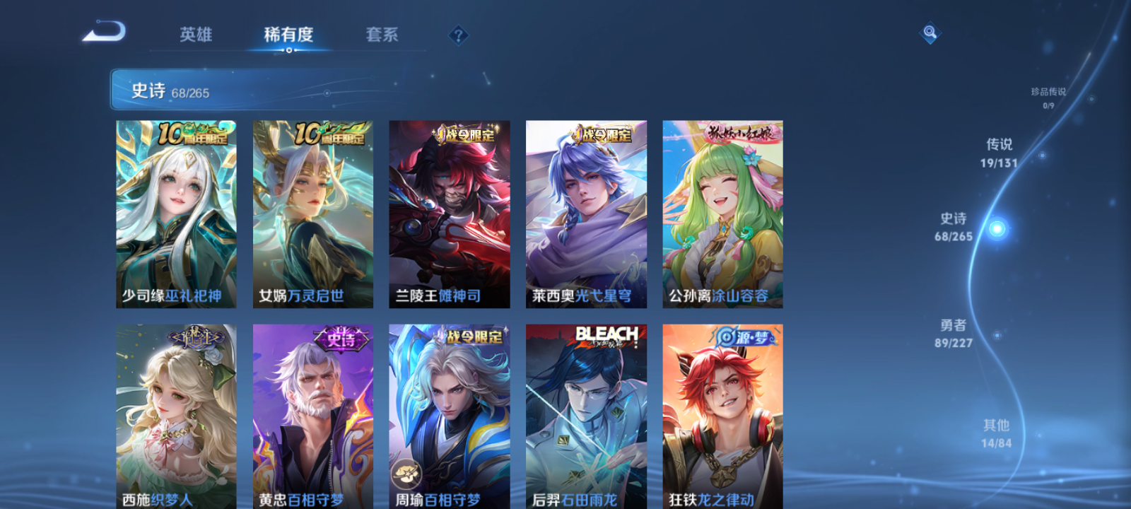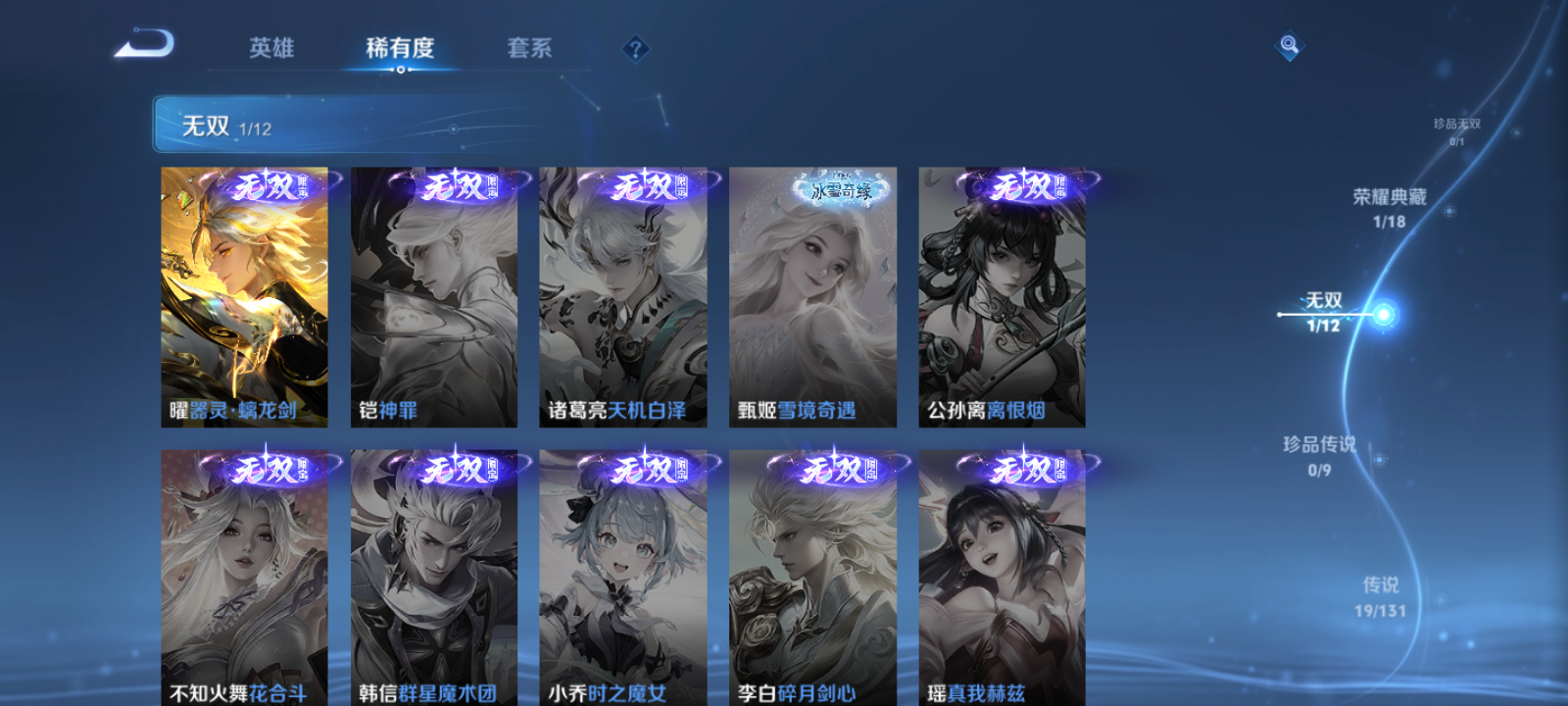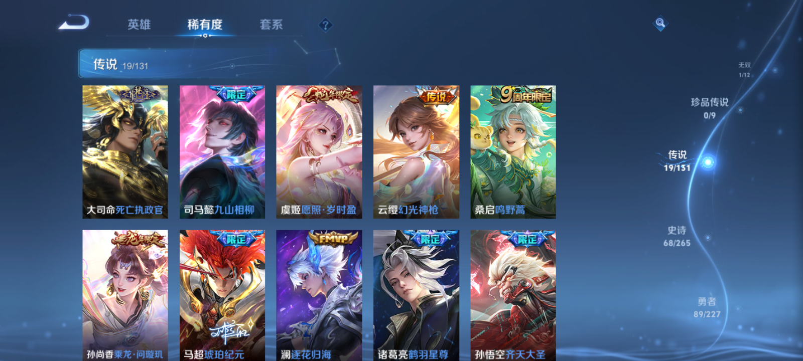 【王者荣耀】【lywz22035】珍品无双0 典藏1 无双1 珍品传说0 传说19 史诗68 英雄127 皮肤192 贵族7级 荣耀典藏:鸣剑·曳影__无双皮肤:器灵·螭龙剑__传说皮肤:鸣野蒿|炽阳神光|地狱之眼|久胜战神|黄金射手座|李|鹤羽星尊|齐天大圣|马超-琥珀纪元|碎云|逐花归海|乘龙·问璇玑|山海·苍雷引|山海·炽霜斩|山海·琳琅生|幻光神呛|愿照·岁时盈|九山相柳|死亡执政官__稀有限定:朱雀志|傲雪梅呛|李小龙|山海·碧波行|山海·玄木吟|拒霜思|百解令|大漠名商|繁星吟游|古海寻踪|海滩派对|海盐诗旅|航海奇遇记|皇家上将|剑破天穹|江河有灵|金庭之子|魔术师|擒涛扼浪|青焰无极|驱傩正仪|燃音魔法|沙漠行僧|探海日志|醍醐杖|天穹祈灯|万华元夜|妄想食味|无心|疑决卦|阴阳师|优雅恋人|原初追逐者|暗夜贵公子|暗隐猎兽者|缤纷独角兽|苍穹之光|乘风破浪|德古拉伯爵|地狱岩魂|电玩小子|伽罗-琥珀纪元|鬼剑武藏|黄金分割率|节奏热浪|金属风暴|吕布-末日机甲|魅力维加斯|女仆咖啡|绅士熊喵|圣诞狂欢|水果甜心|水晶猎龙者|天秀·启明|赵云-未来纪元|星夜王子|摇滚巨星|鹰眼统帅|幽灵船长|逐浪之夏|紫霞仙子|谪仙醉月|东方月初|顽岩魄|蔡文姬-夏日便利店|虞姬-夏日便利店|天穹之誓|修罗|心灵战警|刘备-百相守梦|特工魅影|星界战将|谧流熔炉|化蝶舞|原初探秘者|云中旅人|单词大作战|流音漫舞|灵卜魔法|苍威无极|墨子-神迹守卫|刘禅-鸭鸭历险记|沈梦溪-鸭鸭历险记|龙之律动|石田雨龙|逆浪荇歌|孙策-百相守梦|周瑜-百相守梦|黄忠-百相守梦|织梦人|涂山容容|光弋星穹|傩神司|往忆晖光|荣光之誓|万灵启世|巫礼祀神|鹤鸣心笺__优质皮肤:午夜歌剧院|启蛰|威尼斯狂欢|第七人偶|芝加哥教父|绝影神呛|赤焰之缨|福禄兄弟|前尘|星航指挥官|龙域领主|花间舞|修竹墨客|绒语心约|长夏之忆|功夫炙烤|幻夜行动|潮玩探月行|次元突破|鲨炮海盗猫|野性能量|奇妙博物学|虹云星官|坚韧之力|海滩丽影|阿尔法小队|兔女郎|死亡骑士|黄金武士|天使之翼|玩偶对对碰|宫本武藏-未来纪元|忍·炎影|街头霸王|王牌新星|零食大作战|牛运亨通|幻泉雾影|胡桃狂想曲|铁甲之心|次元傲视|拳王|时尚教父|白色死神|大发明家|西施-雪境奇遇|掌控之力|纽约教父|龙腾万里|乱世虎臣|敏锐之力|热血海滩|龙舞盛年|乓乓大师|五福同心|盾山-圆桌骑士|曜-归虚梦演|完美运算|化身博士|花好人间|熔金海岸|炽热元素使|妄想特派|玫蓝誓约|命运加冕|小满鸭|死霸装|锦麟游梦|踏浪烽翎|克喵|哪吒-罗小黑战记|径山谋武|逐霄之志__贵族等级:贵族7级__王者段位:非凡王者【精品打野号】1典藏1无双19传说鸣剑·曳影 器灵·螭龙剑地狱之眼,死亡执政官,九山相柳,久胜战神,愿照·岁时盈,幻光神呛,鸣野蒿,炽阳神光,乘龙·问璇玑,琥珀纪元,逐花归海,鹤羽星尊,山海·琳琅生,齐天大圣,山海·炽霜斩,山海·苍雷引,碎云,黄金射手座,李