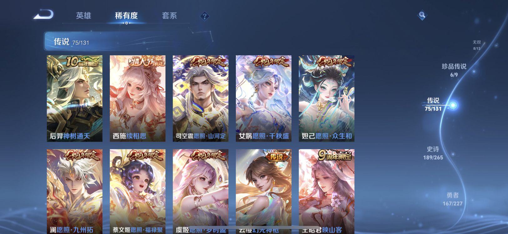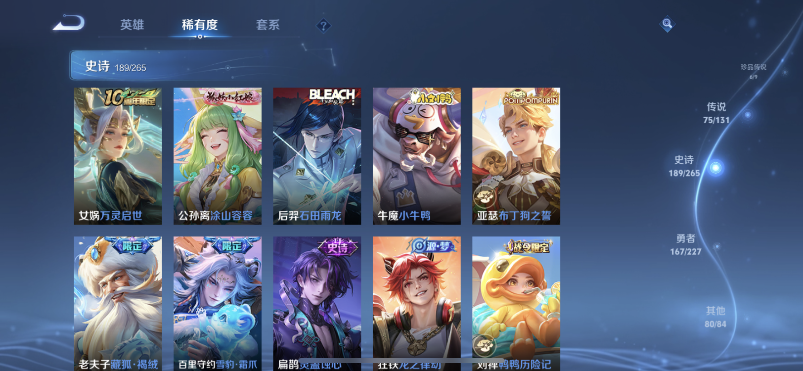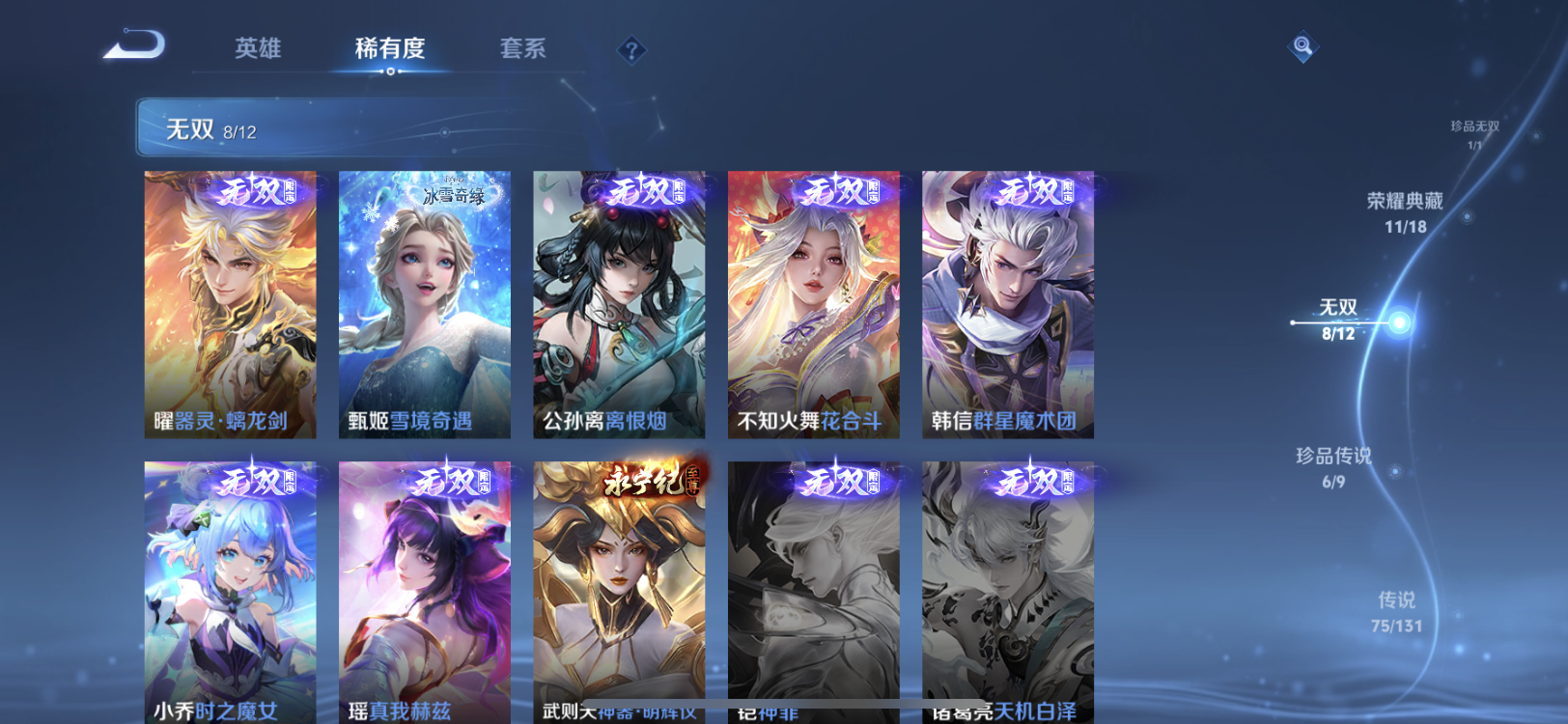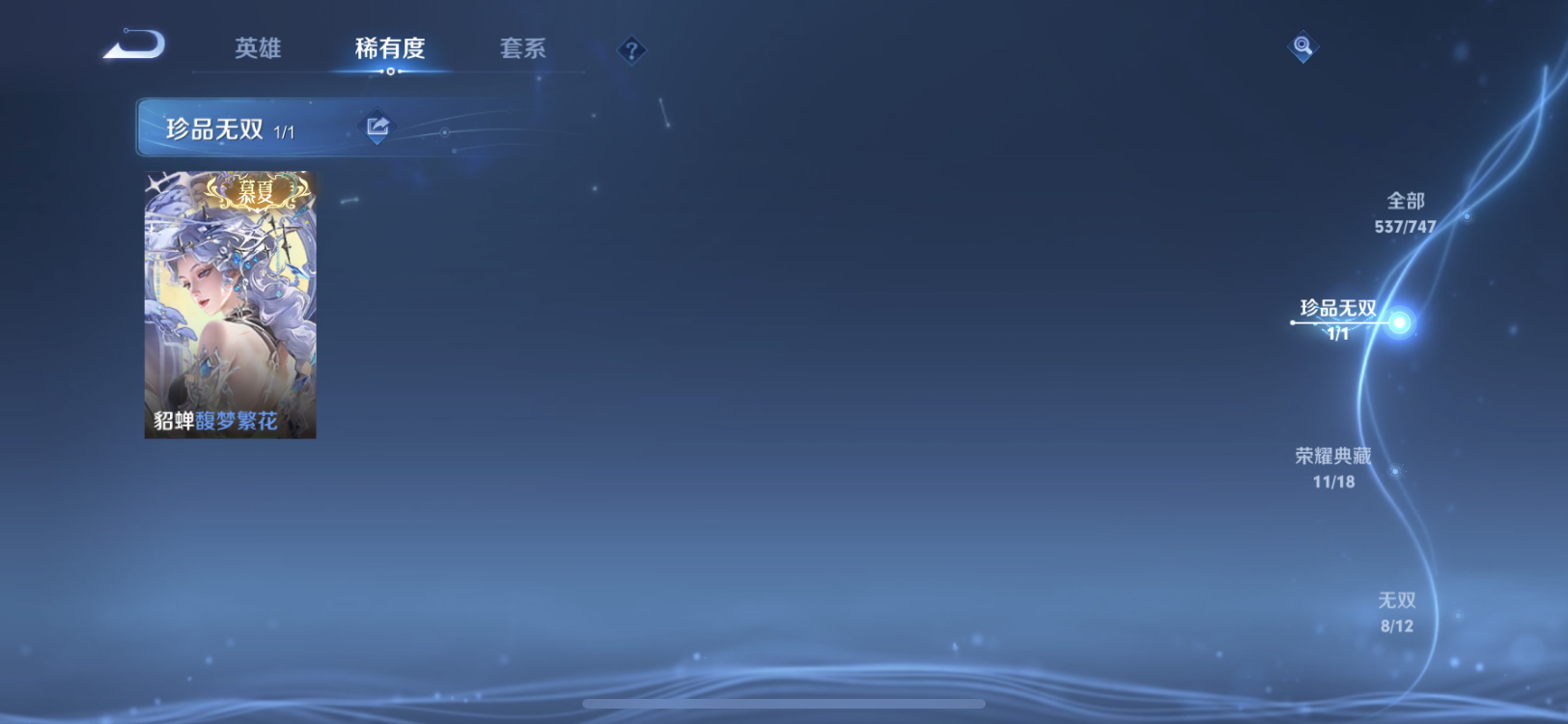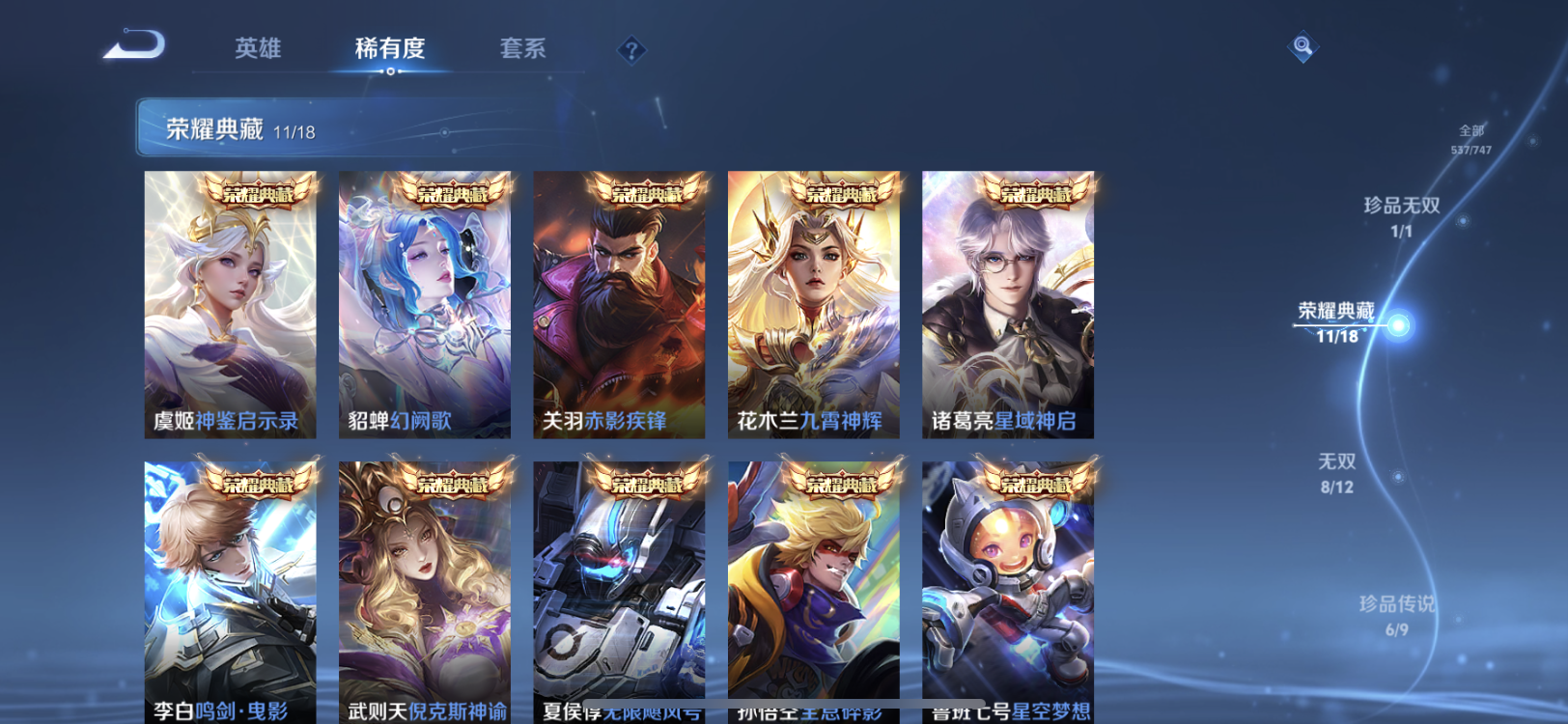 【王者荣耀】【lywz22018】珍品无双1 典藏11 无双8 珍品传说6 传说75 史诗189 英雄128 皮肤537 贵族无双级 珍品无双:馥梦繁花__荣耀典藏:无限飓风号|全息碎影|天鹅之梦|武则天|神鉴启示录|赤影疾锋|幻阙歌|九霄神辉|鸣剑·曳影|倪克斯神谕|星空梦想|星域神启__无双皮肤:群星魔术团|时之魔女|真我赫兹|离恨烟|花合斗|雪境奇遇|器灵·螭龙剑|神器·明辉仪__珍品传说:江户川柯南|怪盗基德|孙策-时之奇旅|兔狲·蓬尾|大耳狗之梦|酷洛米之心__传说皮肤:鸣野蒿|枫霜尽|前尘镜|音你闪耀|深海之息|无尽星芒|无双飞将|挚爱花嫁|挚爱之约|启示之音|花朝如约|异界灵契|绛天战甲|炽阳神光|启明星使|胖达荣荣|地狱之眼|地狱火|海洋之心|孙策-末日机甲|仲夏夜之梦|云霓雀翎|久胜战神|黄金狮子座|狄仁杰-超时空战士|黄金射手座|黄金白羊座|猫影幻舞|刘备-时之恋人|一念神魔|云鹰飞将|冠军飞将|飞鸢探春|李|游龙清影|乞巧织情|淬星耀世|瑶-时之祈愿|炽翼辉光|电玩·雷克斯|鹤羽星尊|孙尚香-末日机甲|白虎志|凤求凰|碎云|太华|天魔缭乱|妄想奇谈|妄想实况|小乔-音你心动|寅虎·瑞焰|遇见胡旋|周瑜-音你心动|逐花归海|云缨-鹤归松栖|觅芳踪|山海·琳琅生|神器·狴犴令|朵莉亚-心动手记|寅虎·赤拳|云中君-群星魔术团|灼幽烈阳|冥王哈迪斯|映山客|牧神诗旅|幻光神呛|愿照·岁时盈|愿照·山河定|愿照·九州拓|愿照·众生和|愿照·福禄聚|愿照·千秋盛|续相思|神树通天__稀有限定:寅虎·御盾|寅虎·展翼|寅虎·心曲|瑞麟志|青龙志|玄武志|朱雀志|一生所爱|引擎之心|纯白花嫁|奇迹圣诞|蜜橘之夏|神威|烈魂|青春决赛季|白鹤梁神女|乒乒小将|孙行者|猪悟能|女儿国国王|傲雪梅呛|玉兔公主|梁祝|神器·万象笔|唐三藏|拒霜思|暗影游猎|嫦娥-如梦令|妲己-时之奇旅|大漠名商|电玩高手|繁星吟游|凤凰于飞|高山流水|古海寻踪|海滩派对|海盐诗旅|航海奇遇记|后羿-如梦令|胡桃夹子|胡桃异想国|华丽摇滚|幻夜卜梦|皇家上将|混沌棋|火炮绅士|剑破天穹|江河有灵|金庭之子|狂想玩偶喵|蓝屏警告|黎明之约|迷踪丽影|魔术师|匿光决锋者|匿光破解者|匿光启智者|匿光追影者|女武神|奇幻香踪|千军破阵|擒涛扼浪|青焰无极|驱傩正仪|燃音魔法|热情桑巴|荣光圣徽|沙漠行僧|朔风刀|死亡摇滚|探海日志|天降福星|天狼绘梦者|天狼狩猎者|天狼溯光者|天狼征服者|天穹祈灯|阿古朵-顽趣|王者之锤|妄想食味|无心|五谷丰年|午后时光|纤云弄巧|星界游侠|星空之诺|驯魔猎人|演武夺筹|夜都怪侠|阴阳师|吟游魔法|银河之约|游园惊梦|驭风魔法|遇见飞天|御銮|原初追逐者|云间偶戏|真爱魔法|逐梦之影|暗夜贵公子|暗夜猫娘|暗隐猎兽者|暗渊魔法|白龙吟|白蛇|缤纷独角兽|冰冠公主|冰雪圆舞曲|苍穹之光|乘风破浪|大乔-猫狗日记|德古拉伯爵|地狱岩魂|电玩·爆裂旋风|电玩·兔顽号|电玩小子|功夫厨神|鬼剑武藏|唤灵魅影|黄金分割率|箭羽风息|节奏热浪|金属风暴|莱西奥-末日机甲|乐园奇幻夜|李元芳-蔬乡物语|龙鼓争鸣|龙骑士|吕布-末日机甲|魅力维加斯|魅语|梦奇-顽趣|女仆咖啡|偶像歌手|奇遇舞章|千筹问战|青蛇|热力回旋|赏金猎手|上官婉儿-群星魔术团|绅士熊喵|圣诞狂欢|圣诞恋歌|诗语江南|鲁班七号-蔬乡物语|水果甜心|水晶猎龙者|孙策-猫狗日记|滕王阁序|天才门将|天秀·幻梦|天秀·启明|天秀·音浪|完美假期|晚萤|赵云-未来纪元|嘻哈天王|星夜王子|雪上飞焰|摇滚巨星|银翎春语|鹰眼统帅|永昼|幽灵船长|遇见神鹿|月团寄思|云中君-时之祈愿|职棒王牌|至美·乘鲤谣|钟无艳-超时空战士|周瑜-真爱至上|逐浪之夏|紫霞仙子|赵怀真-鹤归松栖|百里守约-百相守梦|老夫子-百相守梦|陌上桑|噬灭天穹|炽弈燎原|破空之剑|战舞者|东方月初|涂山红红|霜北刀|埋骨钱|顽岩魄|蔡文姬-夏日便利店|虞姬-夏日便利店|天穹之誓|浮光幕影|怒海争锋|海诺-心动手记|安琪拉-时之奇旅|修罗|曙光守护者|心灵战警|千年之狐|关羽-百相守梦|孙尚香-时之恋人|无限星赏官|舞动绿茵|特工魅影|心灵骇客|飞车小橘子|茶境仙|星界战将|谧流熔炉|苍鳞隐世|化蝶舞|云中旅人|玲珑珍味|单词大作战|朔望之晖|孙悟空-神迹守卫|达摩-星际陆战队|访茗客|暖冬·兔眠|夺宝奇兵|苍威无极|圣弓游侠|墨子-神迹守卫|落雪兰心|死神来了|刘禅-鸭鸭历险记|沈梦溪-鸭鸭历险记|灵蛊蚀心|藏狐·褐绒|雪豹·霜爪|龙之律动|布丁狗之约|虚灵犬护|布丁狗之誓|小牛鸭|石田雨龙|逆浪荇歌|涂山容容|荣光之誓|万灵启世|鹤鸣心笺__优质皮肤:尼罗河女神|一千零一夜|创世神祝|年年有余|埃及法老|孤猎|木偶奇遇记|熊喵少女|午夜歌剧院|露花倒影|未来旅行|激情绿茵|海之征途|天启骑士|碧珀绯影|秩序猎龙将|锦衣卫|冰刃幻境|森|超能战警|英喵野望|维京掠夺者|海军大将|绯红之刃|踏雪寻梅|启蛰|战争骑士|伊势巫女|画中游|生化警戒|威尼斯狂欢|第七人偶|潮流仙人|芝加哥教父|街头旋风|绝影神呛|地府判官|荷鲁斯之眼|幸存者|赤焰之缨|福禄兄弟|隐刃|前尘|特种部队|三太子|精灵王|剑舞者|范海辛|星航指挥官|龙域领主|爱与和平|占星师|花间舞|魇语军师|极冰防御线|花见巫女|棒球奇才|东海龙王|蔷薇王座|灼热之刃|精准探案法|圣殿之光|帝国元帅|战争女神|霓裳曲|加勒比小姐|阿摩司公爵|异域舞娘|精灵公主|修竹墨客|万圣前夜|怪诞之夜|动物派对|破阵·退雄兵|