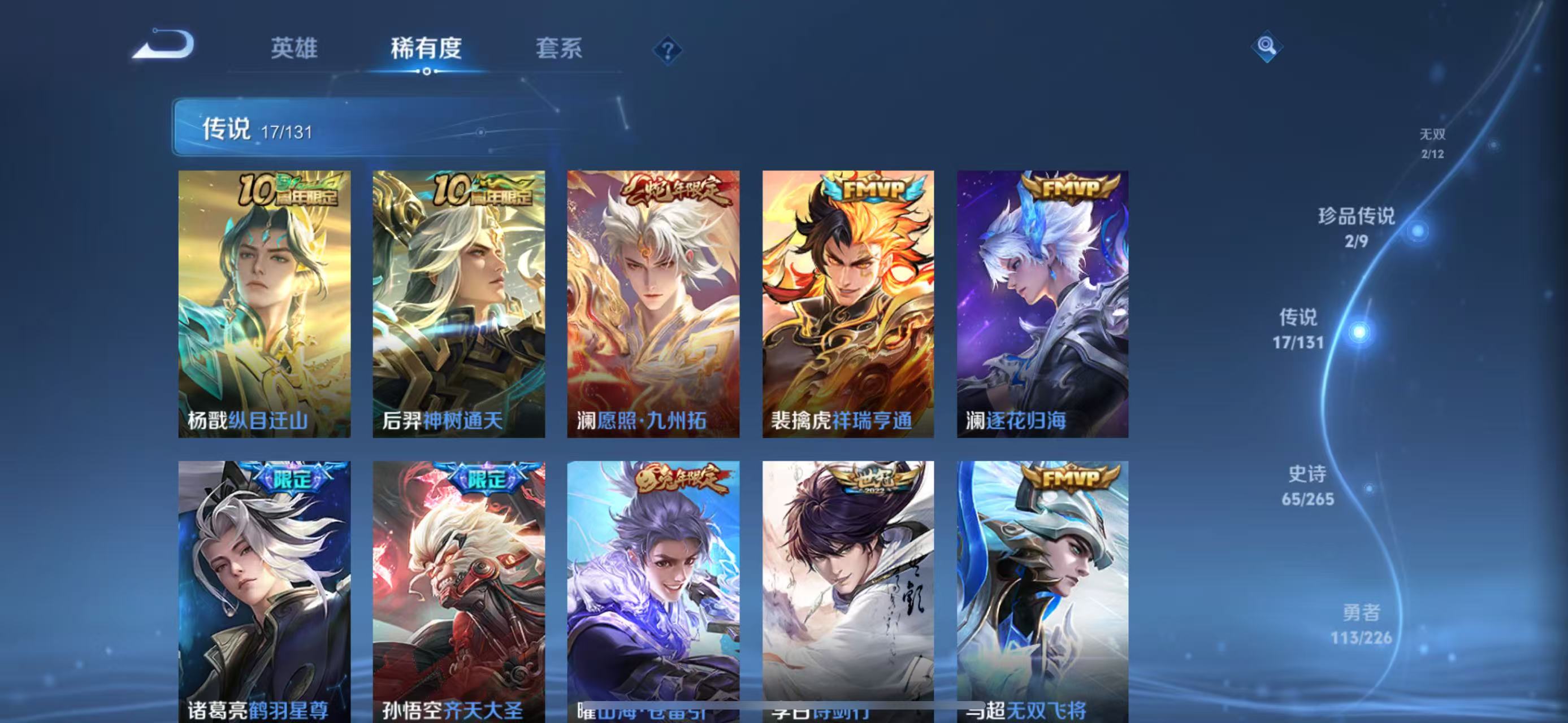 txwz22771-小国标橘右京1w战力 金标万战韩信 金标 诸葛亮 曜 v8 236皮 1典藏 星域神启 2无双 天机白泽,器灵·螭龙剑 2珍品 黑崎一护,朽木白哉 17传说 纵目迁山,神树通天,启明星使,鹤羽星尊,游龙清影,愿照·九州拓,祥瑞亨通,寅虎·赤拳,地狱之眼,逐花归海,齐天大圣,末日机甲,山海·苍雷引,诗剑行,李 ,无双飞将,炽阳神光 65史诗
