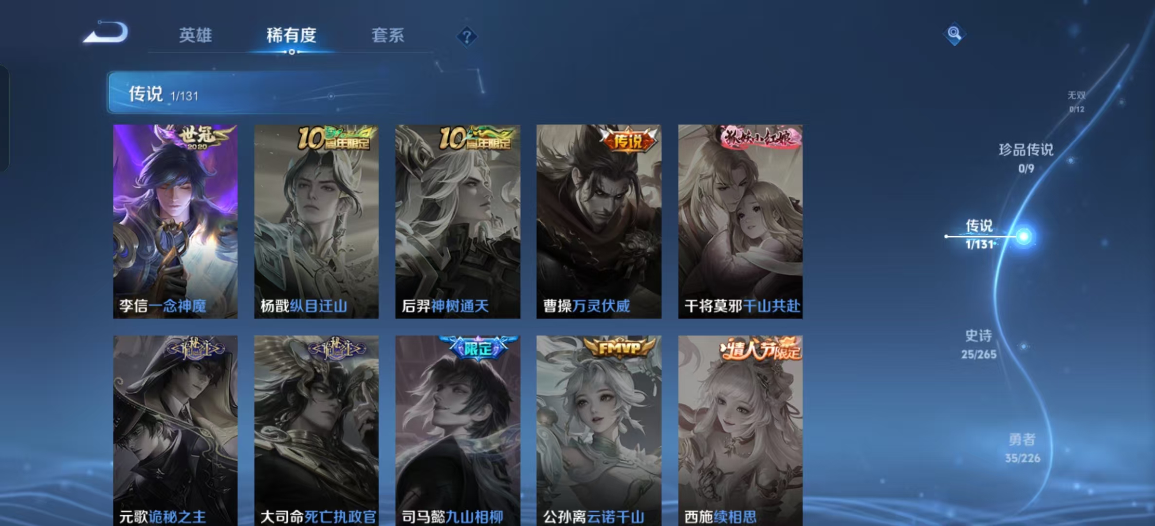 【王者荣耀】【lywz21762】珍品无双0 典藏0 无双0 珍品传说0 传说1 史诗25 英雄116 皮肤81 贵族0级 传说皮肤:一念神魔__稀有限定:神威|猪悟能|大漠名商|古海寻踪|海滩派对|海盐诗旅|航海奇遇记|皇家上将|剑破天穹|金庭之子|黎明之约|千军破阵|擒涛扼浪|驱傩正仪|荣光圣徽|沙漠行僧|探海日志|天穹祈灯|五谷丰年|阴阳师|原初追逐者|暗隐猎兽者|冰雪圆舞曲|金属风暴|魅力维加斯|梦奇-顽趣|女仆咖啡|偶像歌手|圣诞狂欢|水晶猎龙者|天才门将|星夜王子|摇滚巨星|鹰眼统帅|幽灵船长|月团寄思|天穹之誓|修罗|曙光守护者|云中旅人|墨子-神迹守卫__优质皮肤:年年有余|孤猎|午夜歌剧院|激情绿茵|秩序猎龙将|冰刃幻境|超能战警|启蛰|街头旋风|绝影神呛|幸存者|赤焰之缨|精灵王|星航指挥官|龙域领主|灼热之刃|精灵公主|万圣前夜|破阵·退雄兵|野性能量|守护之力|功夫老勺|兔女郎|死亡骑士|少女阿狸|玩偶对对碰|教廷特使|潮玩牛仔|白色死神|五福同心|曜-归虚梦演|完美运算|花好人间|熔金海岸|春野之旅|蔚蓝守将|炽热元素使__贵族等级:无贵族等级__王者段位:荣耀黄金对抗路小号 小国李信一万分