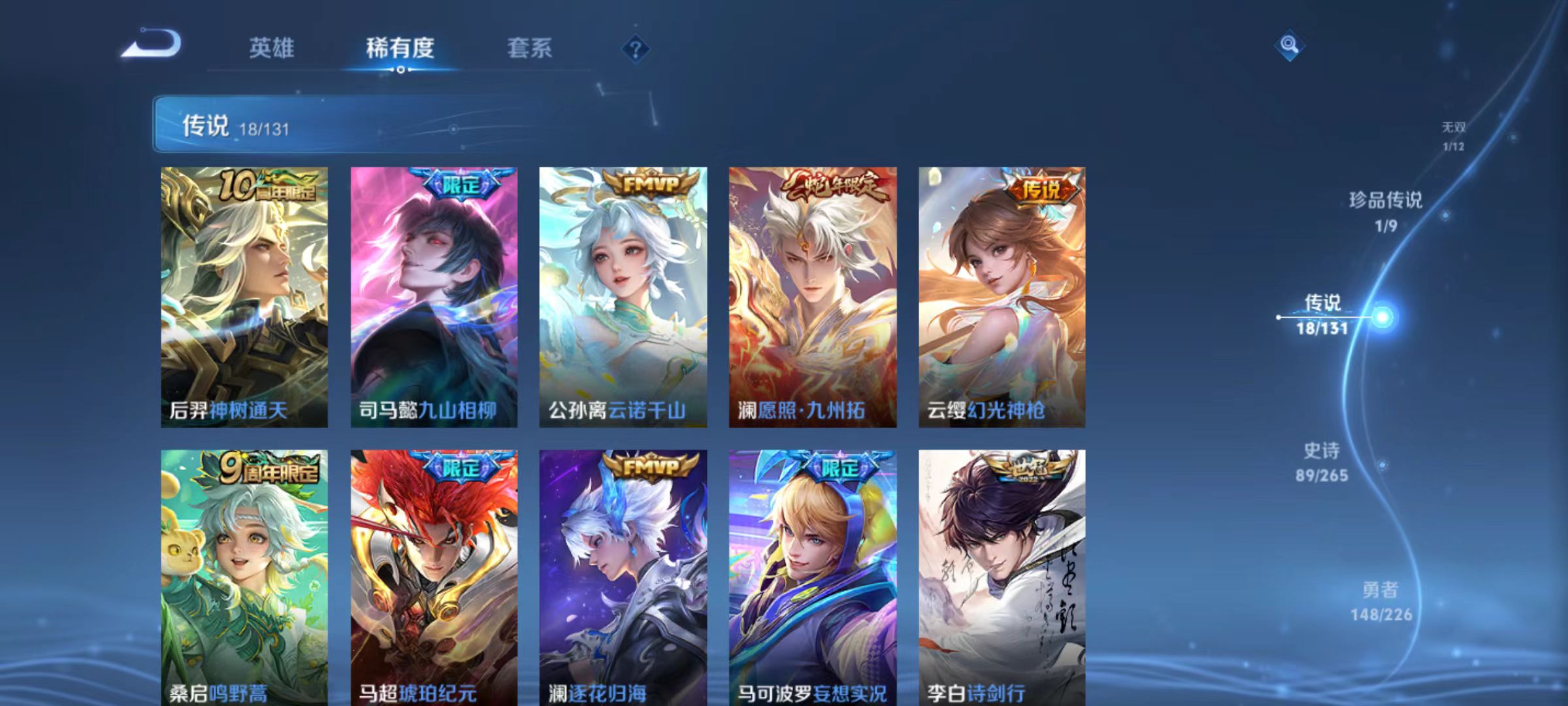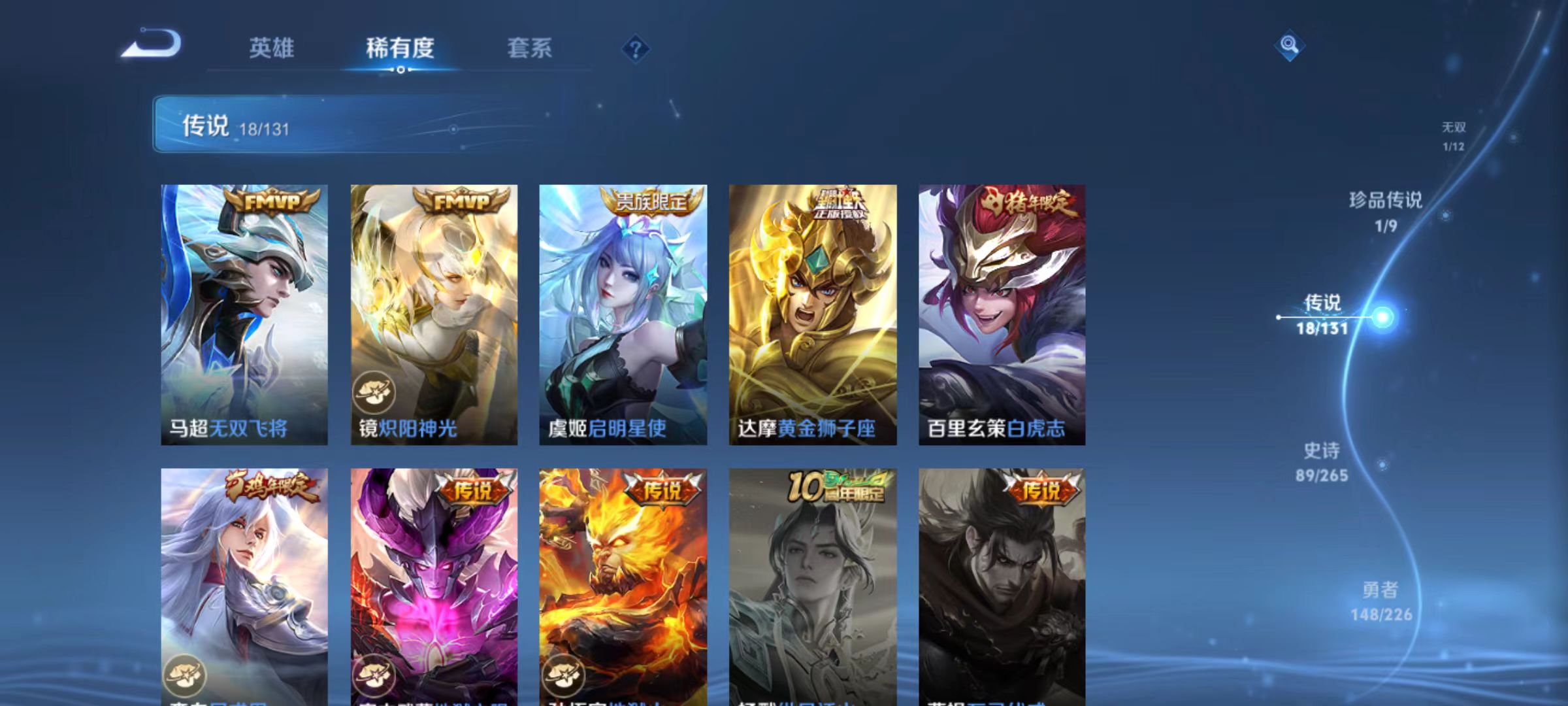 v8-314皮肤 金标百里玄策 1典藏 鸣剑·曳影 1无双碎月剑心 1珍品朽木白哉 18传说琥珀纪元,神树通天,地狱之眼,逐花归海,九山相柳,启明星使,云诺千山,无双飞将,愿照·九州拓,幻光神呛,鸣野蒿,凤求凰,炽阳神光,诗剑行,黄金狮子座,白虎志,地狱火,妄想实况 89史诗 12个性按键