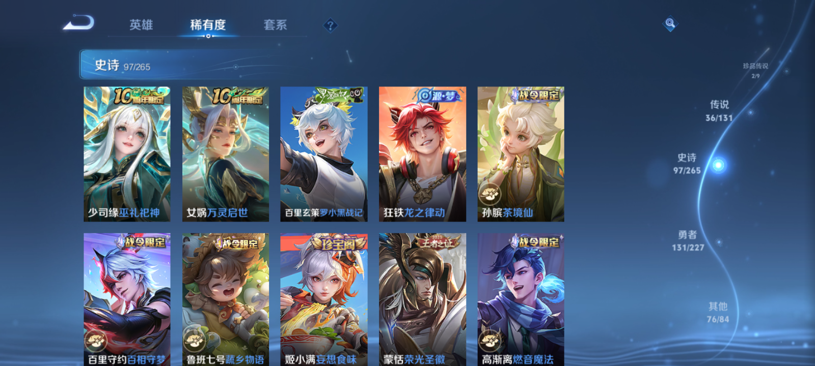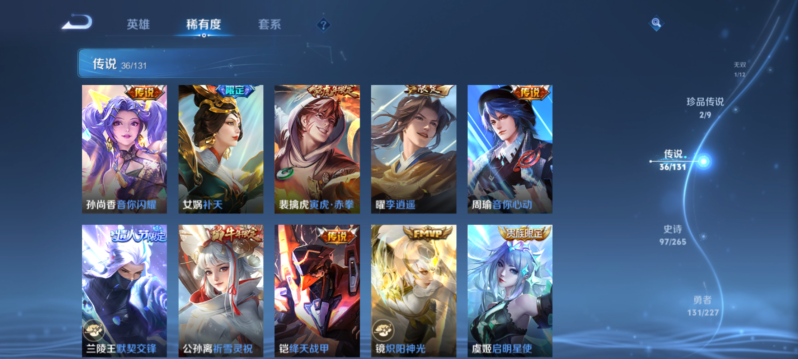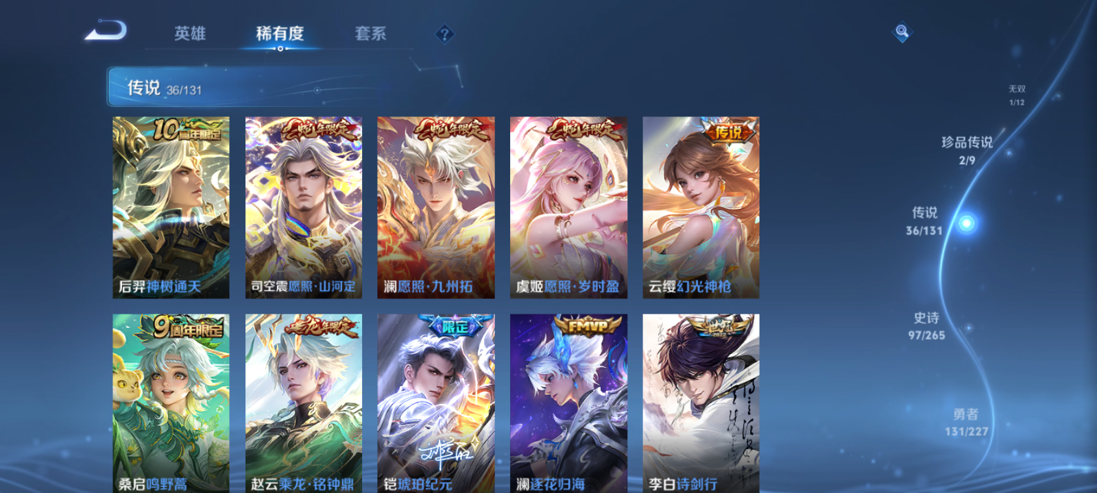 【王者荣耀】【lywz22186】珍品无双0 典藏4 无双1 珍品传说2 传说36 史诗97 英雄127 皮肤347 贵族9级 荣耀典藏:无限飓风号|全息碎影|银白咏叹调|鸣剑·曳影__无双皮肤:神罪__珍品传说:江户川柯南|怪盗基德__传说皮肤:鸣野蒿|音你闪耀|补天|绛天战甲|炽阳神光|启明星使|地狱之眼|地狱火|仲夏夜之梦|久胜战神|黄金狮子座|狄仁杰-超时空战士|黄金射手座|猫影幻舞|刘备-时之恋人|一念神魔|云鹰飞将|李|孙尚香-末日机甲|白虎志|凤求凰|铠-琥珀纪元|兰陵王-默契交锋|祈雪灵祝|诗剑行|太华|武陵仙君|周瑜-音你心动|逐花归海|乘龙·铭钟鼎|寅虎·赤拳|幻光神呛|愿照·岁时盈|愿照·山河定|愿照·九州拓|神树通天__稀有限定:至尊宝|青龙志|朱雀志|大圣娶亲|蔷薇恋人|蜜橘之夏|神威|烈魂|乒乒小将|孙行者|李小龙|梁祝|山海·玄木吟|拒霜思|暗影游猎|大漠名商|电玩高手|高山流水|古海寻踪|海滩派对|海盐诗旅|航海奇遇记|后羿-如梦令|胡桃异想国|华丽摇滚|皇家上将|混沌棋|江河有灵|金庭之子|狂想玩偶喵|蓝屏警告|魔术师|千军破阵|擒涛扼浪|驱傩正仪|燃音魔法|荣光圣徽|沙漠行僧|探海日志|醍醐杖|天狼绘梦者|天狼征服者|天穹祈灯|万华元夜|妄想食味|午后时光|纤云弄巧|演武夺筹|夜都怪侠|疑决卦|阴阳师|吟游魔法|优雅恋人|原初追逐者|云间偶戏|真爱魔法|暗夜贵公子|暗夜猫娘|暗隐猎兽者|暗渊魔法|白龙吟|缤纷独角兽|冰冠公主|冰雪圆舞曲|苍穹之光|乘风破浪|大乔-猫狗日记|德古拉伯爵|电玩小子|功夫厨神|鬼剑武藏|黄金分割率|箭羽风息|节奏热浪|金属风暴|李元芳-蔬乡物语|龙鼓争鸣|魅力维加斯|魅语|梦奇-顽趣|女仆咖啡|偶像歌手|奇遇舞章|赏金猎手|圣诞狂欢|圣诞恋歌|诗语江南|鲁班七号-蔬乡物语|水果甜心|孙策-猫狗日记|滕王阁序|天秀·启明|晚萤|星夜王子|雪夜绮愿|摇滚巨星|银翎春语|鹰眼统帅|幽灵船长|月团寄思|逐浪之夏|紫霞仙子|百里守约-百相守梦|老夫子-百相守梦|噬灭天穹|安琪拉-时之奇旅|修罗|曙光守护者|心灵战警|千年之狐|孙尚香-时之恋人|无限星赏官|特工魅影|心灵骇客|茶境仙|谧流熔炉|原初探秘者|云中旅人|单词大作战|达摩-星际陆战队|访茗客|灵卜魔法|圣弓游侠|墨子-神迹守卫|龙之律动|虚灵犬护|逆浪荇歌|百里玄策-罗小黑战记|荣光之誓|万灵启世|巫礼祀神|鹤鸣心笺__优质皮肤:尼罗河女神|一千零一夜|创世神祝|年年有余|埃及法老|孤猎|木偶奇遇记|熊喵少女|午夜歌剧院|露花倒影|未来旅行|激情绿茵|海之征途|天启骑士|碧珀绯影|秩序猎龙将|锦衣卫|冰刃幻境|森|超能战警|英喵野望|维京掠夺者|海军大将|踏雪寻梅|启蛰|战争骑士|伊势巫女|画中游|生化警戒|威尼斯狂欢|第七人偶|潮流仙人|芝加哥教父|街头旋风|绝影神呛|地府判官|荷鲁斯之眼|幸存者|赤焰之缨|福禄兄弟|隐刃|前尘|特种部队|精灵王|剑舞者|范海辛|星航指挥官|龙域领主|爱与和平|占星师|花间舞|魇语军师|极冰防御线|花见巫女|棒球奇才|东海龙王|蔷薇王座|灼热之刃|精准探案法|圣殿之光|帝国元帅|战争女神|霓裳曲|加勒比小姐|异域舞娘|精灵公主|修竹墨客|万圣前夜|暗都幽影|功夫炙烤|暖冬絮语|潮玩探月行|虎啸剑宗|瓷语鉴心|秘密基地|次元突破|鲨炮海盗猫|野性能量|丁香结|奇妙博物学|虹云星官|科学大爆炸|守护之力|坚韧之力|幻乐之宴|功夫老勺|命运角斗场|幻想奇妙夜|海滩丽影|阿尔法小队|兔女郎|死亡骑士|黄金武士|少女阿狸|天使之翼|玩偶对对碰|宫本武藏-未来纪元|红桃皇后|忍·炎影|爱心护理|街头霸王|教廷特使|鸿运当头|金色潮汐|漠中幻影|时空谍影|零食大作战|西部游侠|幻泉雾影|危途狂花|紫罗兰之誓|铁甲之心|拳王|时尚教父|救世之瞳|白色死神|爱与正义|程咬金-星际陆战队|白执事|大发明家|哥特玫瑰|西施-雪境奇遇|星梦巡礼|猪八戒-西部大镖客|缤纷绘卷|掌控之力|雾都夜雨|逐霄战戟|纽约教父|龙腾万里|乱世虎臣|敏锐之力|西施-归虚梦演|孙悟空-西部大镖客|牛魔-西部大镖客|鲁班大师-归虚梦演|龙舞盛年|汉昭烈帝|乓乓大师|五福同心|盾山-圆桌骑士|蒙犽-归虚梦演|万事如意|曜-归虚梦演|唤灵魔甲|太乙真人-圆桌骑士|沉稳之力|完美运算|化身博士|花好人间|潮玩骑士王|万象初新|苍林狼骑|蔚蓝守将|劲辣红锅|特工战影|炽热元素使|妄想特派|秘证寻踪|春野闲踪|灵野札记|命运加冕|小满鸭|死霸装|无双福将|云械蓝图|哪吒-罗小黑战记|张良-罗小黑战记|径山谋武__贵族等级:贵族9级__王者段位:荣耀王者347皮肤4典藏1无双2珍品传说36传说全息碎影,无限飓风号,银白咏叹调,鸣剑·曳影神罪 江户川柯南,怪盗基德神树通天,黄金狮子座,琥珀纪元,补天,逐花归海,祈雪灵祝,默契交锋,凤求凰,黄金射手座,武陵仙君,绛天战甲,音你心动,太华,李 ,启明星使,地狱之眼,炽阳神光,超时空战士,末日机甲,一念神魔,白虎志,久胜战神,仲夏夜之梦,云鹰飞将,时之恋人,猫影幻舞,地狱火,愿照·山河定,愿照·岁时盈,幻光神呛,寅虎·赤拳,乘龙·铭钟鼎,愿照·九州拓,诗剑行,鸣野蒿,音你闪耀