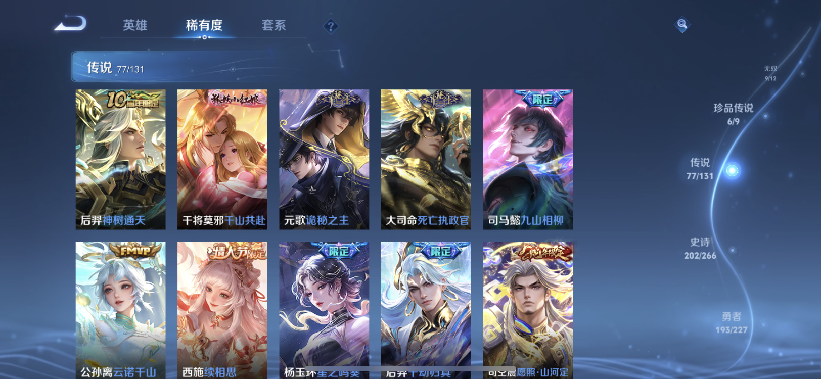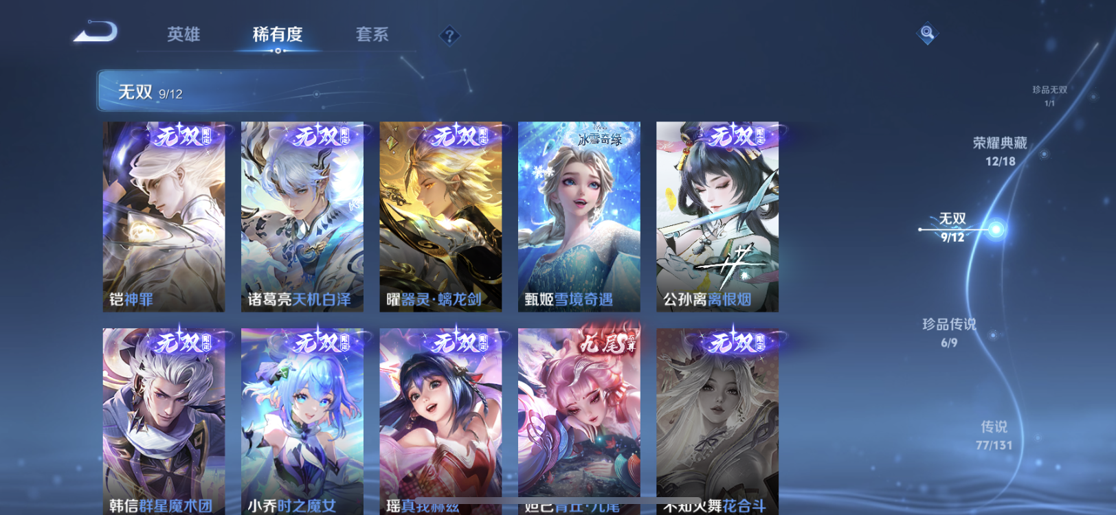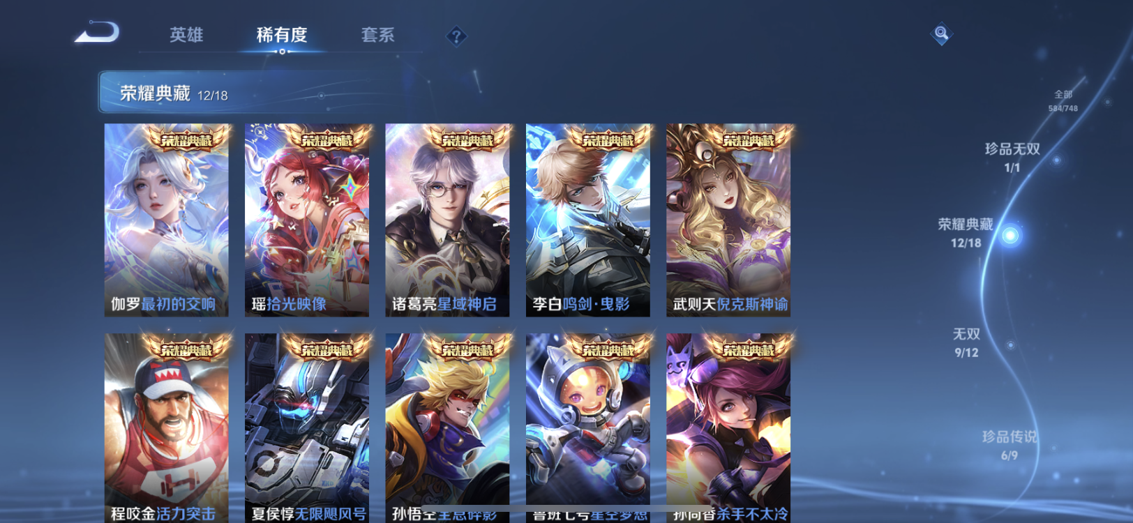 【王者荣耀】【lywz22169】珍品无双1 典藏12 无双9 珍品传说6 传说77 史诗201 英雄128 皮肤584 贵族无双级 珍品无双:馥梦繁花__荣耀典藏:无限飓风号|全息碎影|天鹅之梦|大秦宣太后|杀手不太冷|武则天|活力突击|鸣剑·曳影|倪克斯神谕|星空梦想|星域神启|拾光映像|最初的交响__无双皮肤:群星魔术团|时之魔女|真我赫兹|离恨烟|雪境奇遇|器灵·螭龙剑|青丘·九尾|天机白泽|神罪__珍品传说:江户川柯南|孙策-时之奇旅|器灵·落星盏|兔狲·蓬尾|大耳狗之梦|酷洛米之心__传说皮肤:深海之息|无尽星芒|启示之音|绛天战甲|炽阳神光|启明星使|胖达荣荣|地狱之眼|地狱火|海洋之心|仲夏夜之梦|云霓雀翎|久胜战神|黄金狮子座|狄仁杰-超时空战士|黄金射手座|黄金白羊座|猫影幻舞|刘备-时之恋人|一念神魔|云鹰飞将|冠军飞将|飞鸢探春|李|淬星耀世|炽翼辉光|绯月行|浮生妄|鹤羽星尊|记忆之芯|孙尚香-末日机甲|白虎志|黄金天蝎座|金乌负日|兰陵王-默契交锋|零号·赤焰|祈雪灵祝|燃星之曲|诗剑行|时雨天司|霜月吟|天魔缭乱|妄想实况|武陵仙君|武圣|貂蝉-曦玄引|小动物乐团|小乔-音你心动|影龙天霄|永曜之星|战鼓燎原|周瑜-音你心动|逐花归海|乘龙·问璇玑|觅芳踪|朵莉亚-心动手记|灼幽烈阳|冥王哈迪斯|映山客|玄雷天君|幻光神呛|祥瑞亨通|愿照·岁时盈|愿照·山河定|愿照·九州拓|愿照·众生和|愿照·福禄聚|星之鸣奏|愿照·千秋盛|千劫归真|续相思|云诺千山|九山相柳|死亡执政官|诡秘之主|千山共赴|神树通天__稀有限定:寅虎·御盾|寅虎·展翼|奔雷神使|御风骁将|白晶晶|至尊宝|梅西|朱雀志|虞姬-霸王别姬|大圣娶亲|一生所爱|引擎之心|纯白花嫁|蔷薇恋人|奇迹圣诞|蜜橘之夏|虎魄|神威|烈魂|龙胆|青春决赛季|白鹤梁神女|乒乒小将|女儿国国王|傲雪梅呛|李小龙|梁祝|山海·碧波行|山海·玄木吟|时之彼端|狮舞东方|暗影游猎|白昼王子|冰锋战神|冰霜恋舞曲|妲己-时之奇旅|大漠名商|繁星吟游|古海寻踪|海滩派对|海盐诗旅|航海奇遇记|胡桃异想国|华丽摇滚|皇家上将|辉光之辰|混沌棋|剑破天穹|降魔|镜-真我赫兹|决胜骁骑|凯尔特女王|狂想玩偶喵|蓝屏警告|黎明之约|美猴王|迷踪丽影|魔法小厨娘|魔术师|花木兰-默契交锋|匿光破解者|匿光追影者|女武神|千军破阵|擒涛扼浪|青焰无极|穷奇|驱傩正仪|热情桑巴|沙漠行僧|圣诞老人|朔风刀|死亡摇滚|探海日志|饕餮|醍醐杖|天狼绘梦者|天狼狩猎者|天狼溯光者|天狼运算者|天狼征服者|天穹祈灯|玩趣恶龙|万华元夜|王者之锤|五谷丰年|纤云弄巧|项羽-霸王别姬|星界游侠|星空之诺|驯魔猎人|演武夺筹|疑决卦|阴阳师|银河之约|遇见飞天|御旌|御銮|御狮|原初追逐者|云端筑梦师|云间偶戏|真爱魔法|逐梦之光|逐梦之星|逐梦之翼|逐梦之音|逐梦之影|暗夜贵公子|暗夜猫娘|暗隐猎兽者|暗渊魔法|白龙吟|白蛇|缤纷独角兽|冰冠公主|冰雪圆舞曲|苍穹之光|乘风破浪|乘龙·聚宝船|大乔-猫狗日记|德古拉伯爵|地狱岩魂|电玩小子|伽罗-琥珀纪元|功夫厨神|鬼剑武藏|唤灵魅影|黄金分割率|箭羽风息|节奏热浪|金属风暴|莱西奥-末日机甲|乐园奇幻夜|李元芳-蔬乡物语|龙鼓争鸣|龙骑士|吕布-末日机甲|玫瑰异探|魅力维加斯|魅语|梦奇-顽趣|女仆咖啡|偶像歌手|奇遇星旅|千筹问战|青蛇|热力回旋|赏金猎手|上官婉儿-群星魔术团|绅士熊喵|圣诞狂欢|圣诞恋歌|诗语江南|鲁班七号-蔬乡物语|水果甜心|水晶猎龙者|孙策-猫狗日记|天才门将|天秀·启明|天秀·音浪|完美假期|晚萤|赵云-未来纪元|嘻哈天王|闲日渔趣|星夜王子|雪上飞焰|雪夜绮愿|摇滚巨星|夜落电台|银翎春语|鹰眼统帅|永昼|幽灵船长|遇见神鹿|月团寄思|职棒王牌|周瑜-真爱至上|逐浪之夏|紫霞仙子|老夫子-百相守梦|陌上桑|谪仙醉月|星界特工|噬灭天穹|炽弈燎原|战舞者|涂山红红|埋骨钱|顽岩魄|蔡文姬-夏日便利店|虞姬-夏日便利店|天穹之誓|怒海争锋|修罗|曙光守护者|心灵战警|千年之狐|孙尚香-时之恋人|无限星赏官|舞动绿茵|特工魅影|心灵骇客|飞车小橘子|茶境仙|星界战将|谧流熔炉|苍鳞隐世|万物之道|器灵·浮梦炉|糖绘人间|狼魂孤将|绮世丹青|瑰影绮梦|化蝶舞|御霄|狰|烛龙|原初探秘者|重明|云中旅人|单词大作战|朔望之晖|钟馗-神迹守卫|孙悟空-神迹守卫|达摩-星际陆战队|流音漫舞|访茗客|灵卜魔法|夺宝奇兵|苍威无极|圣弓游侠|墨子-神迹守卫|死神来了|天堂福音|仙境爱丽丝|华尔街大亨|刘禅-鸭鸭历险记|沈梦溪-鸭鸭历险记|灵蛊蚀心|藏狐·褐绒|雪豹·霜爪|龙之律动|布丁狗之约|虚灵犬护|布丁狗之誓|小牛鸭|石田雨龙|逆浪荇歌|孙策-百相守梦|周瑜-百相守梦|赞萌露比|幻珠鲛人|黄忠-百相守梦|织梦人|守夜人|涂山容容|光弋星穹|傩神司|往忆晖光|百里玄策-罗小黑战记|荣光之誓|万灵启世|巫礼祀神|鹤鸣心笺__优质皮肤:尼罗河女神|一千零一夜|创世神祝|年年有余|埃及法老|孤猎|木偶奇遇记|熊喵少女|午夜歌剧院|火炮千金|露花倒影|未来旅行|激情绿茵|海之征途|天启骑士|碧珀绯影|秩序猎龙将|锦衣卫|冰刃幻境|森|超能战警|英喵野望|维京掠夺者|海军大将|绯红之刃|踏雪寻梅|启蛰|战争骑士|伊势巫女|画中游|生化警戒|威尼斯狂欢|第七人偶|潮流仙人|芝加哥教父|街头旋风|绝影神呛|地府判官|荷鲁斯之眼|幸存者|赤焰之缨|福禄兄弟|隐刃|前尘|特种部队|三太子|精灵王|剑舞者|范海辛|星