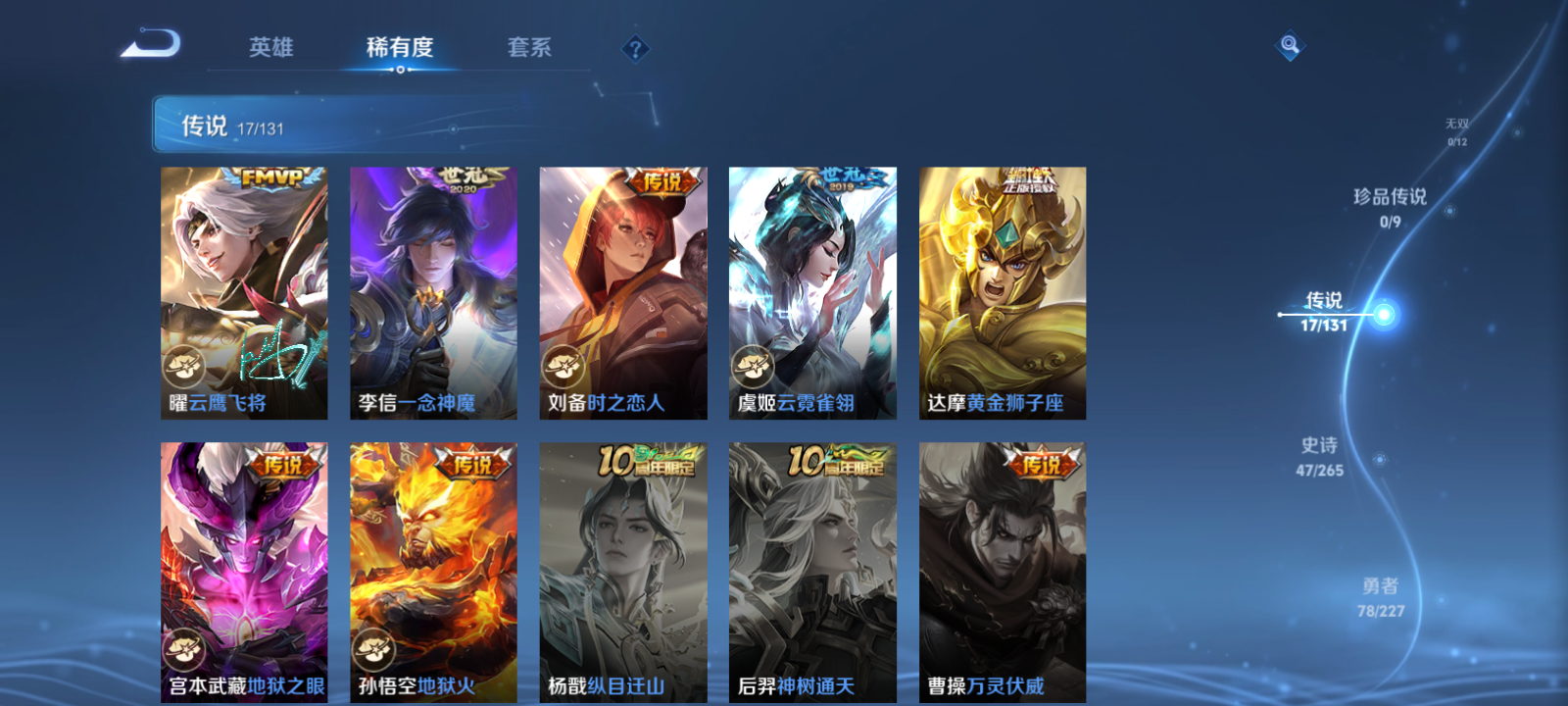 【王者荣耀】【lywz22154】珍品无双0 典藏1 无双0 珍品传说0 传说17 史诗47 英雄122 皮肤191 贵族7级 荣耀典藏:全息碎影__传说皮肤:鸣野蒿|无双飞将|启明星使|地狱之眼|地狱火|云霓雀翎|黄金狮子座|刘备-时之恋人|一念神魔|云鹰飞将|淬星耀世|电玩·雷克斯|诗剑行|霜月吟|逐花归海|愿照·九州拓|云诺千山__稀有限定:高山流水|古海寻踪|海滩派对|海盐诗旅|皇家上将|剑破天穹|江河有灵|魔术师|奇幻香踪|擒涛扼浪|燃音魔法|探海日志|天穹祈灯|纤云弄巧|阴阳师|驭风魔法|暗隐猎兽者|暗渊魔法|冰冠公主|冰雪圆舞曲|大乔-猫狗日记|地狱岩魂|电玩·爆裂旋风|功夫厨神|鬼剑武藏|唤灵魅影|黄金分割率|箭羽风息|节奏热浪|金属风暴|李元芳-蔬乡物语|魅力维加斯|女仆咖啡|热力回旋|赏金猎手|圣诞狂欢|圣诞恋歌|鲁班七号-蔬乡物语|水果甜心|水晶猎龙者|孙策-猫狗日记|天才门将|晚萤|赵云-未来纪元|摇滚巨星|鹰眼统帅|逐浪之夏|噬灭天穹|天穹之誓|曙光守护者|孙尚香-时之恋人|舞动绿茵|心灵骇客|谧流熔炉|万物之道|化蝶舞|玲珑珍味|灵卜魔法|布丁狗之约|虚灵犬护|逆浪荇歌|黄忠-百相守梦|织梦人|荣光之誓|鹤鸣心笺__优质皮肤:创世神祝|埃及法老|孤猎|木偶奇遇记|熊喵少女|午夜歌剧院|露花倒影|激情绿茵|海之征途|天启骑士|碧珀绯影|秩序猎龙将|锦衣卫|冰刃幻境|森|英喵野望|海军大将|踏雪寻梅|启蛰|伊势巫女|第七人偶|潮流仙人|街头旋风|绝影神呛|地府判官|幸存者|赤焰之缨|隐刃|前尘|特种部队|精灵王|范海辛|龙域领主|爱与和平|占星师|花间舞|魇语军师|花见巫女|东海龙王|灼热之刃|精准探案法|圣殿之光|加勒比小姐|异域舞娘|万圣前夜|聚星闪耀|瓷语鉴心|鲨炮海盗猫|野性能量|虹云星官|守护之力|坚韧之力|幻想奇妙夜|海滩丽影|兔女郎|死亡骑士|黄金武士|少女阿狸|天使之翼|玩偶对对碰|宫本武藏-未来纪元|红桃皇后|忍·炎影|爱心护理|街头霸王|教廷特使|鸿运当头|金色潮汐|时空谍影|胡桃狂想曲|潮玩牛仔|拳王|白色死神|程咬金-星际陆战队|西施-雪境奇遇|星梦巡礼|灵卦秘语|浪漫序章|掌控之力|纽约教父|龙腾万里|乱世虎臣|敏锐之力|西施-归虚梦演|鲁班大师-归虚梦演|龙舞盛年|乓乓大师|五福同心|沉稳之力|花好人间|春野之旅|万象初新|潮玩骑兵|劲辣红锅|特工战影|炽热元素使|妄想特派|春野闲踪|灵野札记|玫蓝誓约|命运加冕|小满鸭|死霸装|锦麟游梦|踏浪烽翎|克喵|哪吒-罗小黑战记__贵族等级:贵族7级__王者段位:最强王者1典藏17传说全息碎影黄金狮子座,云诺千山,愿照·九州拓,鸣野蒿,诗剑行,启明星使,霜月吟,淬星耀世,地狱火,无双飞将,时之恋人,云霓雀翎,地狱之眼,云鹰飞将,一念神魔,逐花归海,电玩·雷克斯