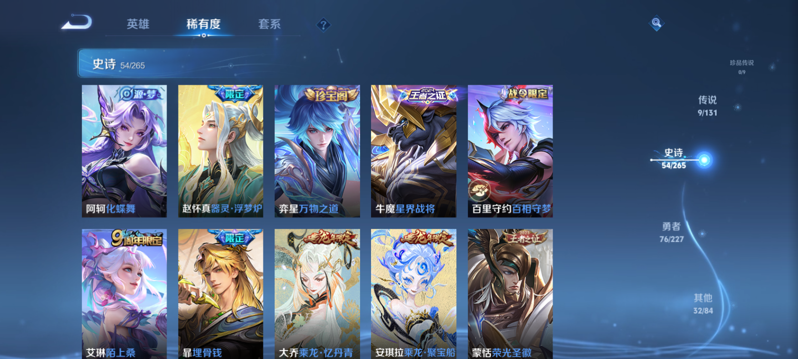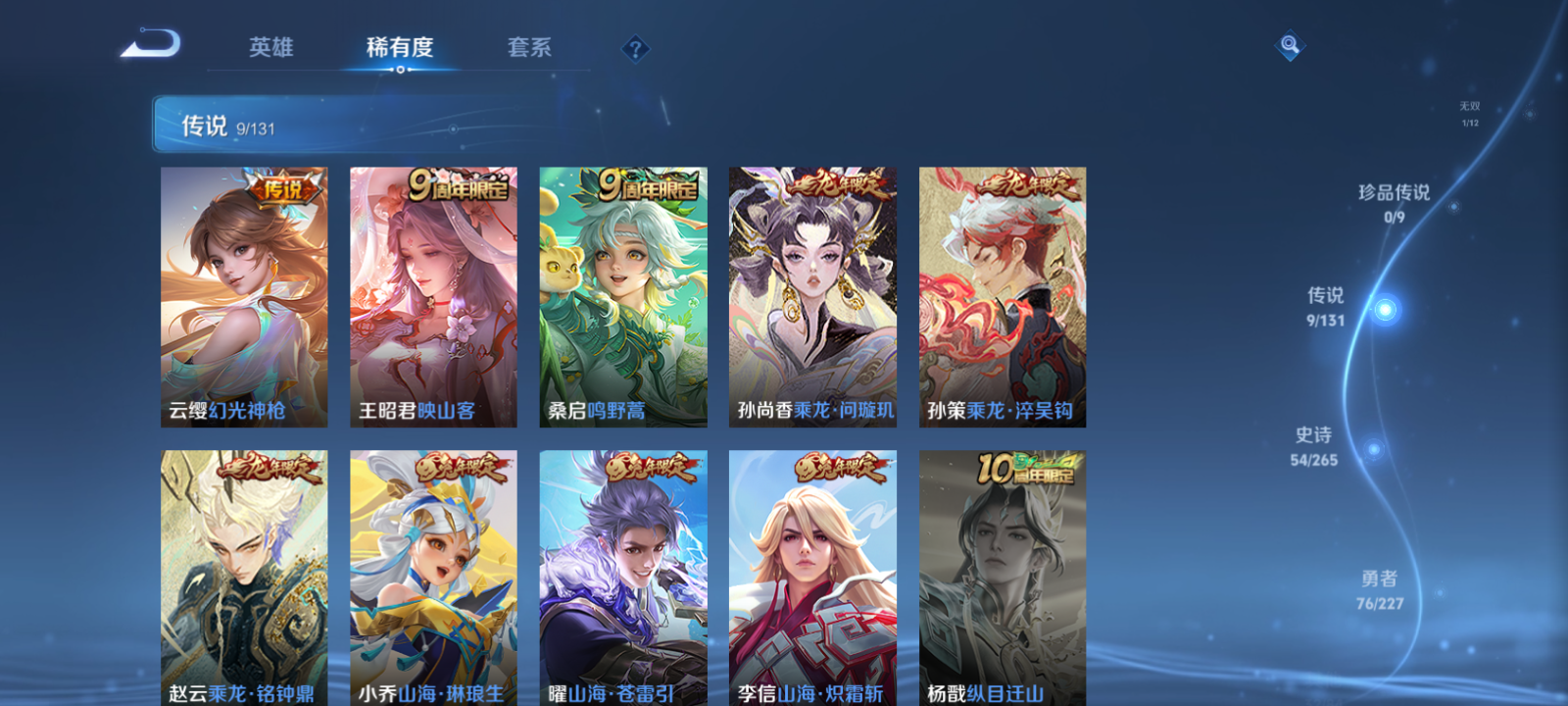 【王者荣耀】【lywz22179】珍品无双0 典藏0 无双1 珍品传说0 传说9 史诗54 英雄120 皮肤172 贵族5级 无双皮肤:器灵·螭龙剑__传说皮肤:鸣野蒿|乘龙·淬吴钩|乘龙·铭钟鼎|乘龙·问璇玑|山海·苍雷引|山海·炽霜斩|山海·琳琅生|映山客|幻光神呛__稀有限定:蔷薇恋人|山海·碧波行|山海·玄木吟|大漠名商|古海寻踪|海滩派对|海盐诗旅|航海奇遇记|皇家上将|剑破天穹|江河有灵|魔术师|奇幻香踪|擒涛扼浪|燃音魔法|荣光圣徽|探海日志|天穹祈灯|五谷丰年|纤云弄巧|星界游侠|阴阳师|驭风魔法|暗隐猎兽者|冰冠公主|冰雪圆舞曲|乘风破浪|乘龙·聚宝船|乘龙·忆丹青|德古拉伯爵|电玩·爆裂旋风|鬼剑武藏|节奏热浪|金属风暴|龙骑士|吕布-末日机甲|魅力维加斯|魅语|梦奇-顽趣|女仆咖啡|偶像歌手|水果甜心|水晶猎龙者|孙策-猫狗日记|天才门将|晚萤|赵云-未来纪元|摇滚巨星|鹰眼统帅|幽灵船长|钟无艳-超时空战士|紫霞仙子|百里守约-百相守梦|老夫子-百相守梦|陌上桑|噬灭天穹|埋骨钱|天穹之誓|千年之狐|特工魅影|心灵骇客|星界战将|谧流熔炉|万物之道|器灵·浮梦炉|化蝶舞|云中旅人|玲珑珍味|暖冬·兔眠|灵卜魔法|布丁狗之约|虚灵犬护|逆浪荇歌|鹤鸣心笺__优质皮肤:尼罗河女神|一千零一夜|创世神祝|年年有余|孤猎|海之征途|碧珀绯影|秩序猎龙将|锦衣卫|冰刃幻境|维京掠夺者|绯红之刃|画中游|生化警戒|潮流仙人|芝加哥教父|街头旋风|绝影神呛|地府判官|幸存者|福禄兄弟|特种部队|精灵王|爱与和平|占星师|花间舞|灼热之刃|霓裳曲|异域舞娘|精灵公主|怪诞之夜|功夫炙烤|瓷语鉴心|次元突破|野性能量|功夫老勺|幻想奇妙夜|阿尔法小队|死亡骑士|黄金武士|宫本武藏-未来纪元|街头霸王|教廷特使|鸿运当头|金色潮汐|漠中幻影|时空谍影|西部游侠|太极少年|乐园追猎者|牛运亨通|拳王|白色死神|西施-雪境奇遇|金福满堂|景韶洛都|浪漫序章|缤纷绘卷|掌控之力|雾都夜雨|逐霄战戟|铁骨偃魂|纽约教父|龙腾万里|乱世虎臣|西施-归虚梦演|牛魔-西部大镖客|龙舞盛年|汉昭烈帝|乓乓大师|五福同心|曜-归虚梦演|程咬金-群星魔术团|完美运算|化身博士|花好人间|春野之旅|潮玩骑兵|苍林狼骑|蔚蓝守将|劲辣红锅|炽热元素使|妄想特派|春野闲踪|灵野札记|玫蓝誓约|命运加冕__贵族等级:贵族5级__王者段位:至尊星耀高质量捡漏无双曜 满龙年套 兔年套背包4000紫星币