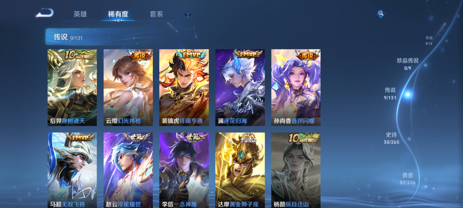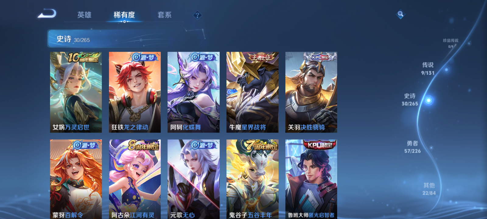 【王者荣耀】【lywz21411】珍品无双0 典藏1 无双0 珍品传说0 传说9 史诗31 英雄125 皮肤120 贵族7级 荣耀典藏:银白咏叹调__传说皮肤:音你闪耀|无双飞将|黄金狮子座|一念神魔|淬星耀世|逐花归海|幻光神呛|祥瑞亨通|神树通天__稀有限定:拒霜思|百解令|大漠名商|高山流水|古海寻踪|海滩派对|海盐诗旅|皇家上将|江河有灵|金庭之子|决胜骁骑|魔术师|匿光启智者|擒涛扼浪|沙漠行僧|探海日志|天穹祈灯|玩趣恶龙|无心|五谷丰年|纤云弄巧|阴阳师|原初追逐者|暗隐猎兽者|缤纷独角兽|乘风破浪|鬼剑武藏|金属风暴|李元芳-蔬乡物语|魅力维加斯|女仆咖啡|偶像歌手|绅士熊喵|圣诞狂欢|圣诞恋歌|水果甜心|水晶猎龙者|鹰眼统帅|噬灭天穹|敬我三分|天穹之誓|心灵骇客|星界战将|谧流熔炉|化蝶舞|云中旅人|苍威无极|龙之律动|布丁狗之约|虚灵犬护|逆浪荇歌|荣光之誓|万灵启世|鹤鸣心笺__优质皮肤:孤猎|激情绿茵|海之征途|天启骑士|超能战警|踏雪寻梅|启蛰|伊势巫女|第七人偶|潮流仙人|幸存者|赤焰之缨|前尘|精灵王|龙域领主|魇语军师|灼热之刃|加勒比小姐|异域舞娘|功夫炙烤|暖冬絮语|潮玩探月行|坚韧之力|幻想奇妙夜|海滩丽影|兔女郎|死亡骑士|东方不败|红桃皇后|忍·炎影|时空谍影|破局者|零食大作战|西部游侠|幻泉雾影|西施-雪境奇遇|浪漫序章|纽约教父|龙腾万里|敏锐之力|西施-归虚梦演|龙舞盛年|乓乓大师|曜-归虚梦演|沉稳之力|完美运算|苍林狼骑|蔚蓝守将|劲辣红锅|玫蓝誓约|命运加冕|死霸装|踏浪烽翎|哪吒-罗小黑战记|逐霄之志__贵族等级:贵族7级__王者段位:无双王者高质量捡漏皮肤号多限定