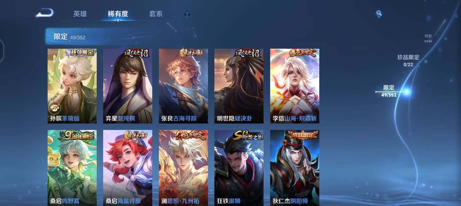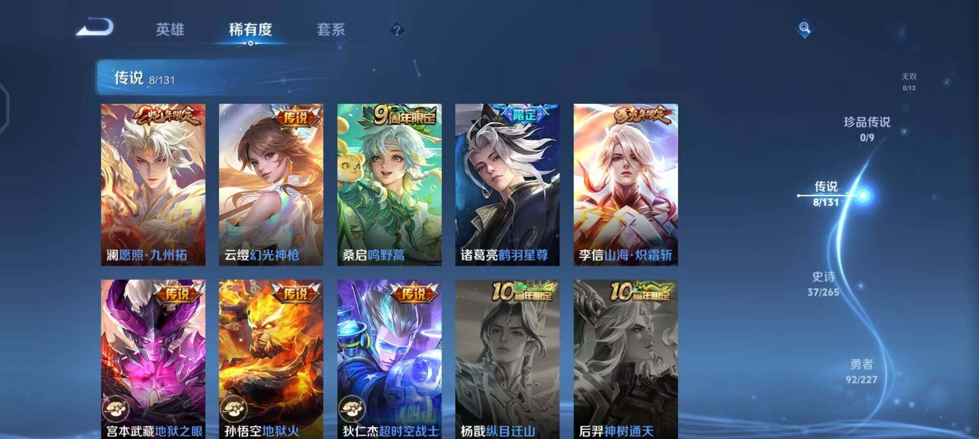 w11379,,可立即换绑无需挂单养号,,铭文满级,,典藏1,,传说8,,,星传说1,,按键5,,夺宝24,,安卓q-v5-最强王者段位-125英雄-172皮肤-1典藏-0珍品无双-0无双-0珍品传说-8传说-37史诗 【英雄全皮】:影全皮 【荣耀典藏】:虞姬神鉴启示录 【传说皮肤】:澜愿照九州拓,云缨幻光神呛,桑启鸣野蒿,诸葛亮鹤羽星尊,李信山海炽霜斩,宫本武藏地狱之眼,孙悟空地狱火,狄仁杰