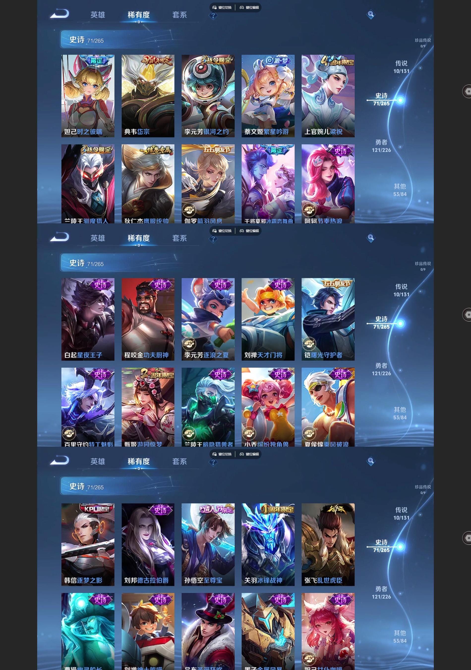 2280421-v7-256皮肤1典藏10传说2星元71史诗86限定-1673紫星币 【全皮英雄】 海诺全皮 刘邦全皮 【典藏】 神鉴启示录 【星元】 未来机甲 金色仲夏夜 【传说】 凤求凰 时雨天司 山海炽霜斩 天魔缭乱 游龙清影 炽阳神光 云鹰飞将 黄金狮子座 时之恋人男 仲夏夜之梦 【热门】涂山容容 神威 至尊宝 冰封战神 时雨天司 岱宗 龙胆 逐梦之影 天狼绘梦者 默契交锋