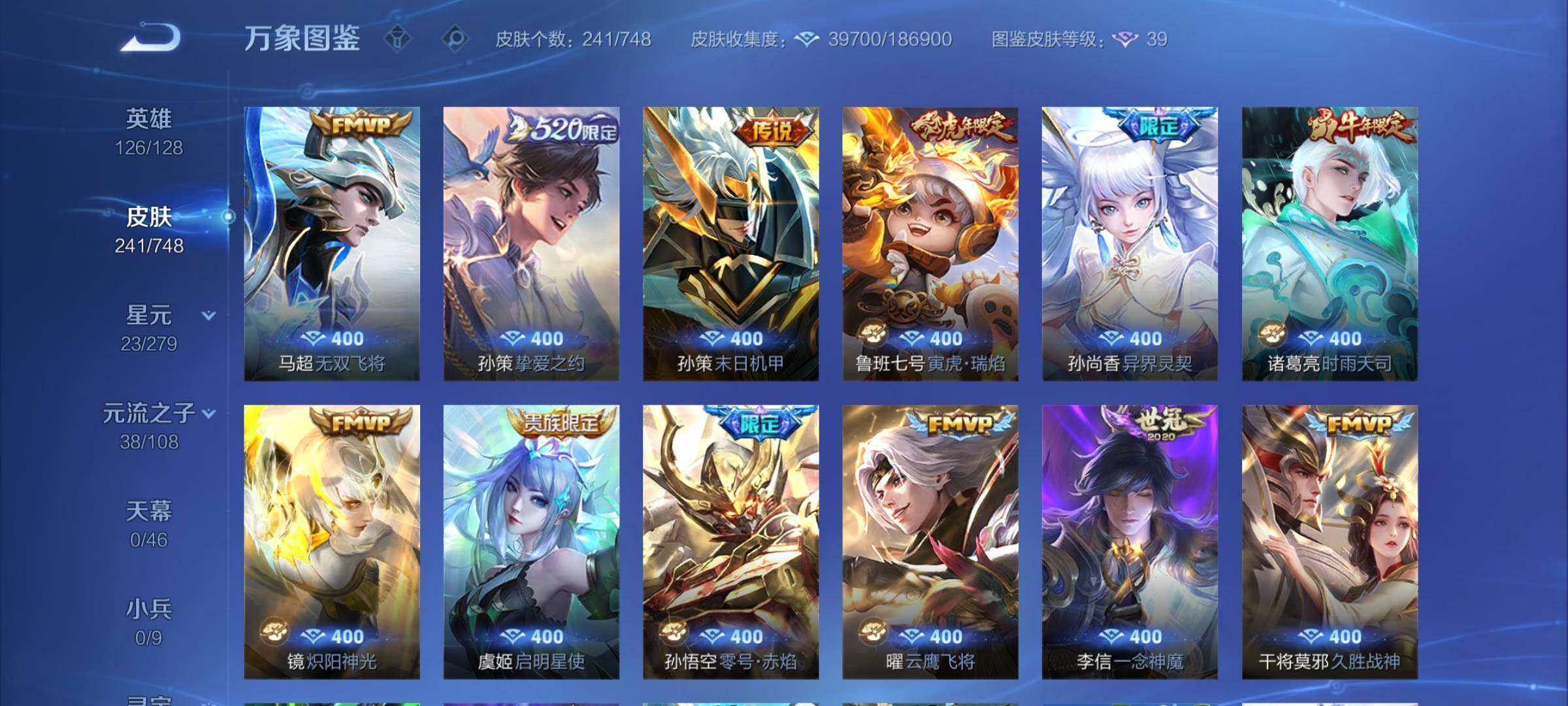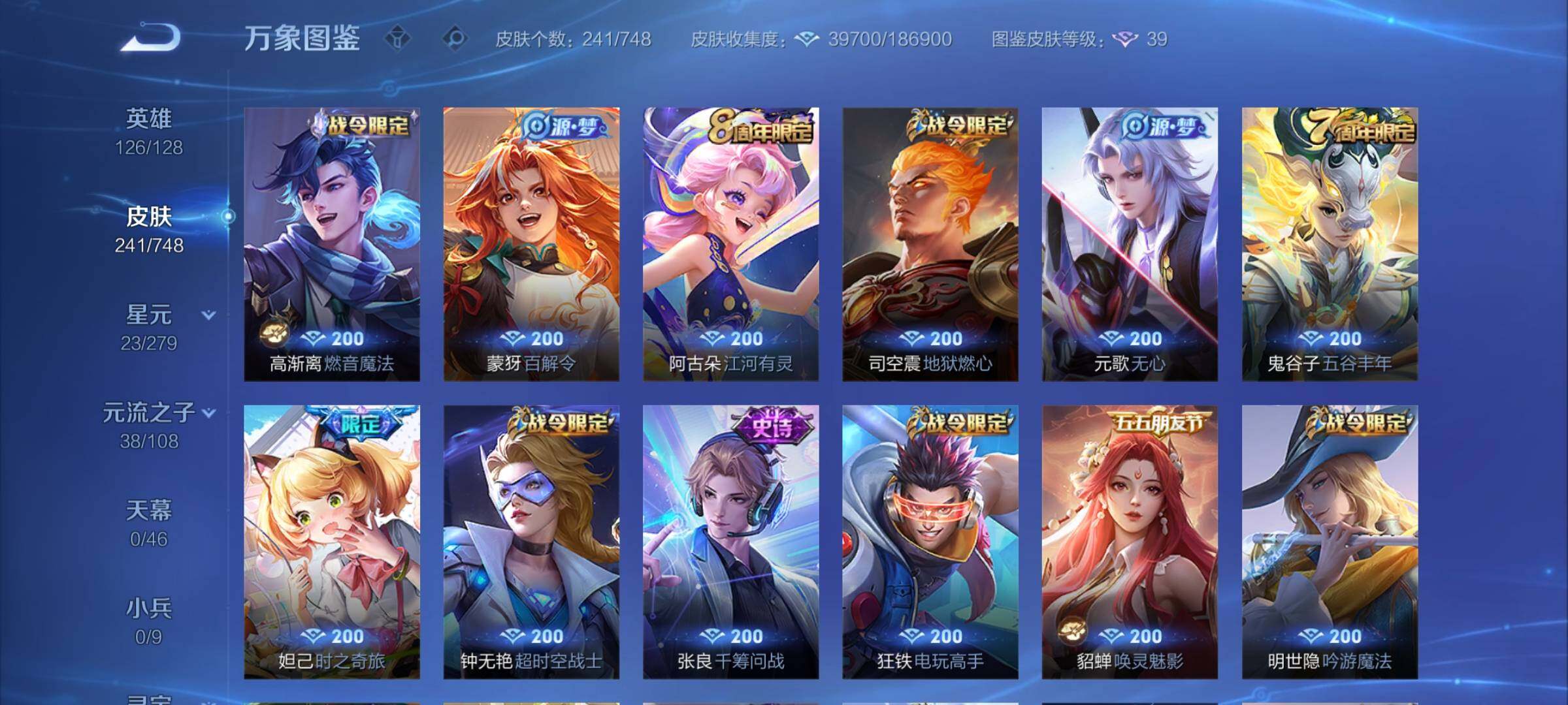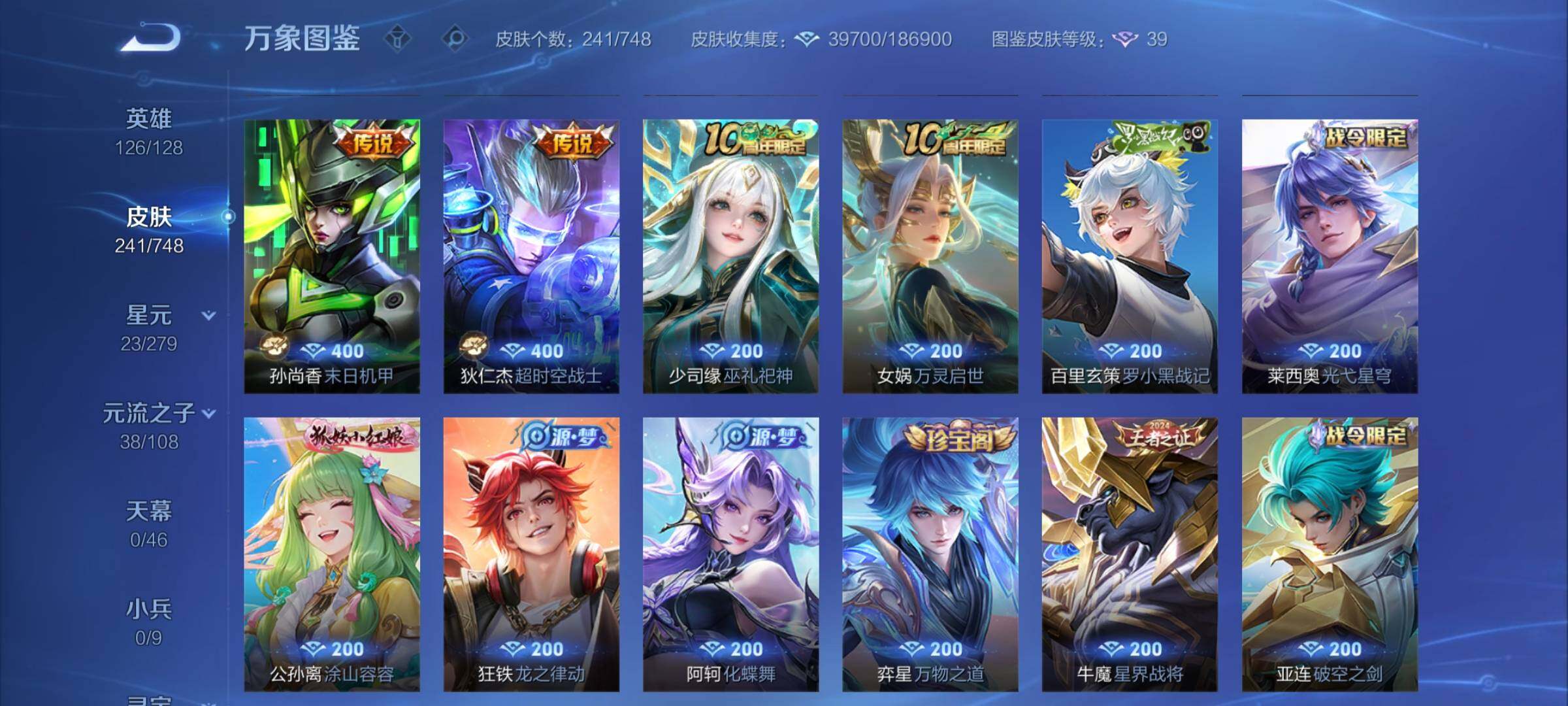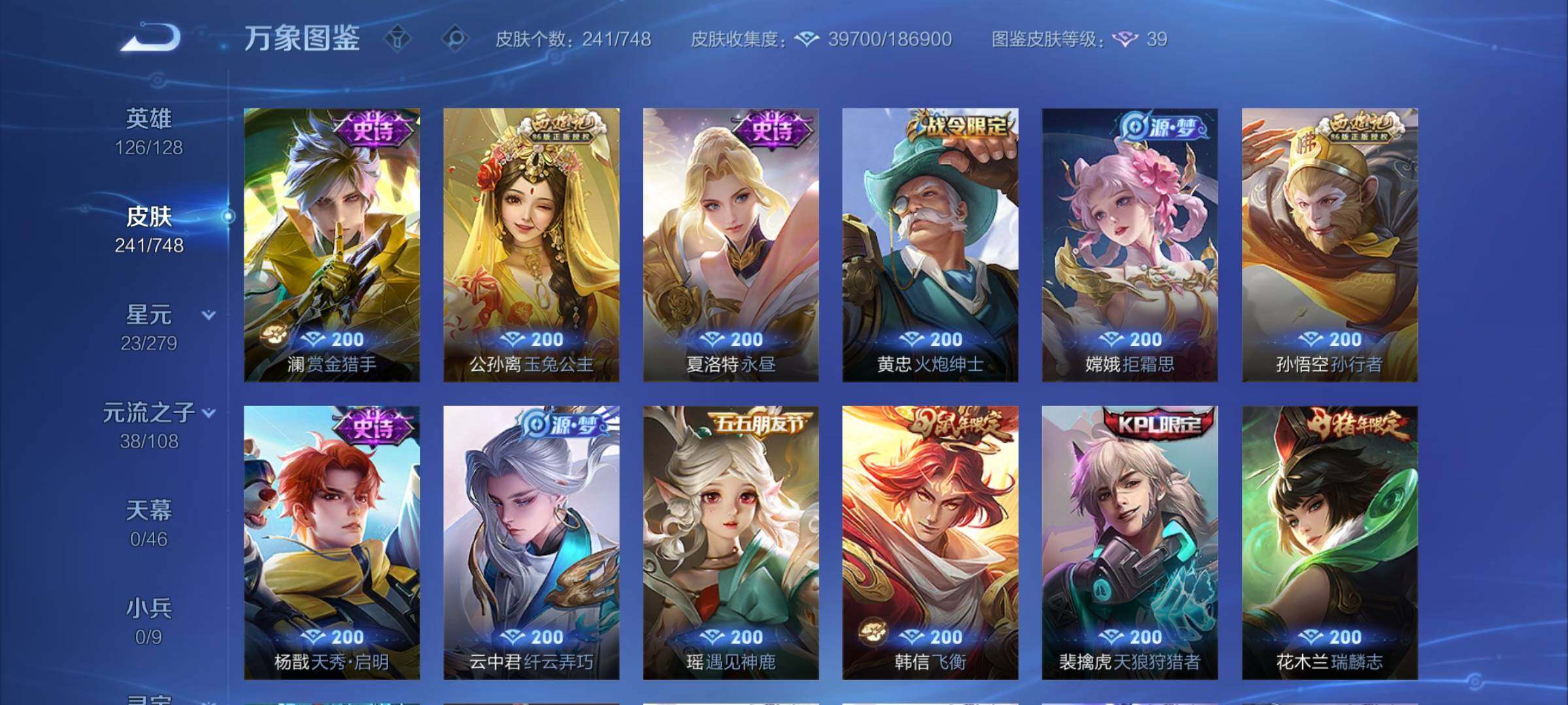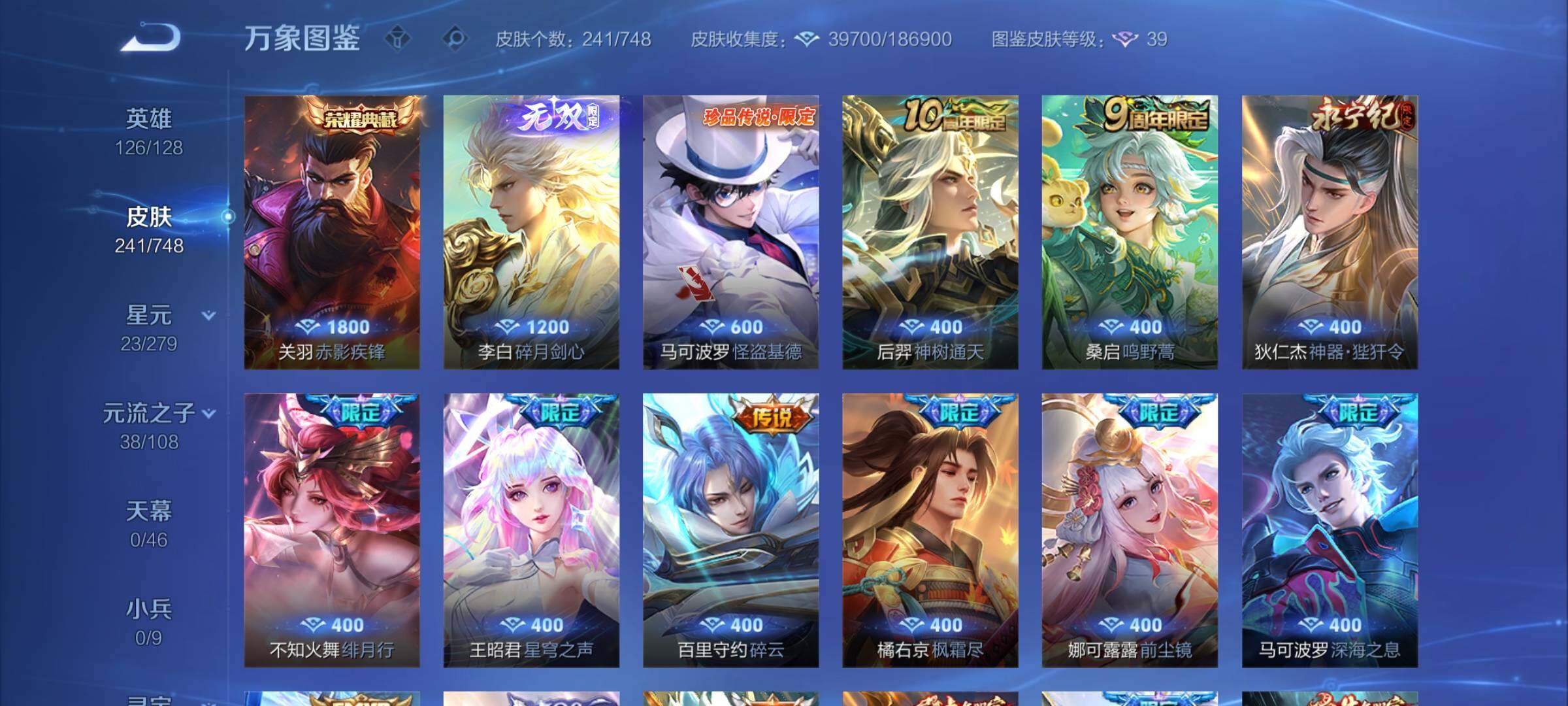 【店长推荐高质量·赤影疾锋·碎月剑心·怪盗基德·寅虎焰心·绯月行·神器狴犴令·前尘镜·枫霜尽·星穹之声·时雨天司·挚爱之约·异界灵契·碎云·深海之息·无双飞将·飞衡·可二次】w7129-安卓q-126英雄-241皮肤-4王者印记-170铭文-贵族积分5w【贵族8】【1典藏·1无双·1珍品传说·1星传说·23传说·17按键】【因赛季更新游戏段付以上号为准!】 【英雄全皮】:孙权全皮 【荣耀典