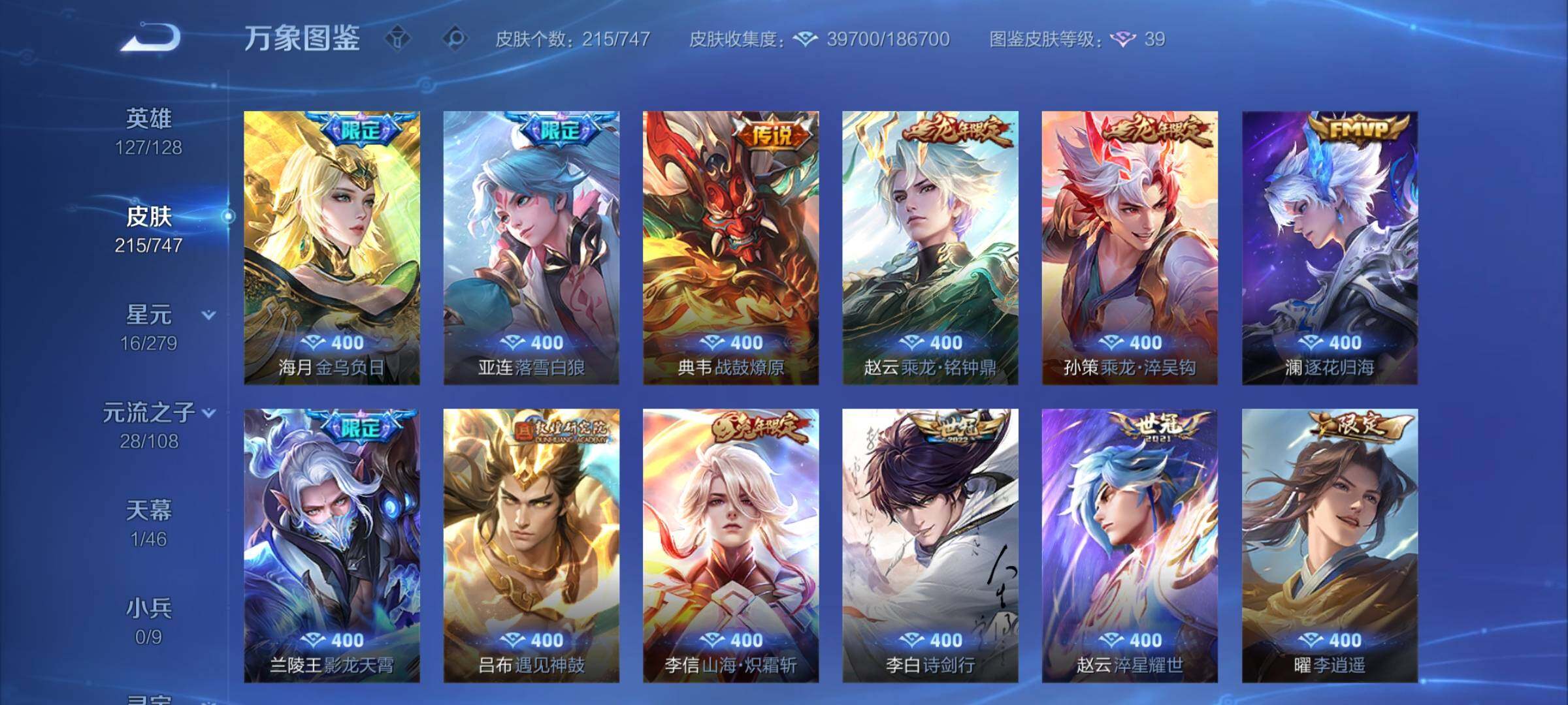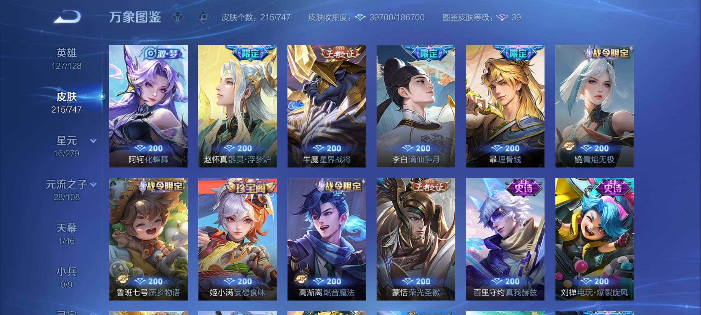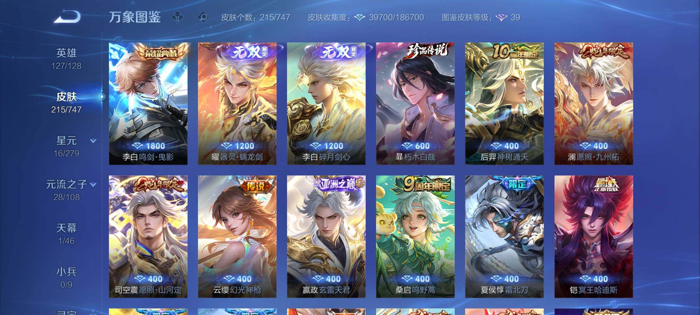 【精品推荐·准李白全皮·碎月剑心·器灵螭龙剑·鸣剑曳影·朽木白哉·愿照山河定·愿照九州拓·玄雷天君·霜北刀·冥王哈迪斯·金乌负日·落雪白狼·乘龙淬吴钩·乘龙铭钟鼎·山海炽霜斩·诗剑行·李·可二次】w7134-安卓q-127英雄-215皮肤-21王者印记-220铭文-贵族积分6w【贵族8】【1典藏·2无双·1珍品传说·1星传说·28传说·1天幕·14按键·幸运值】【因赛季更新游戏段付以上