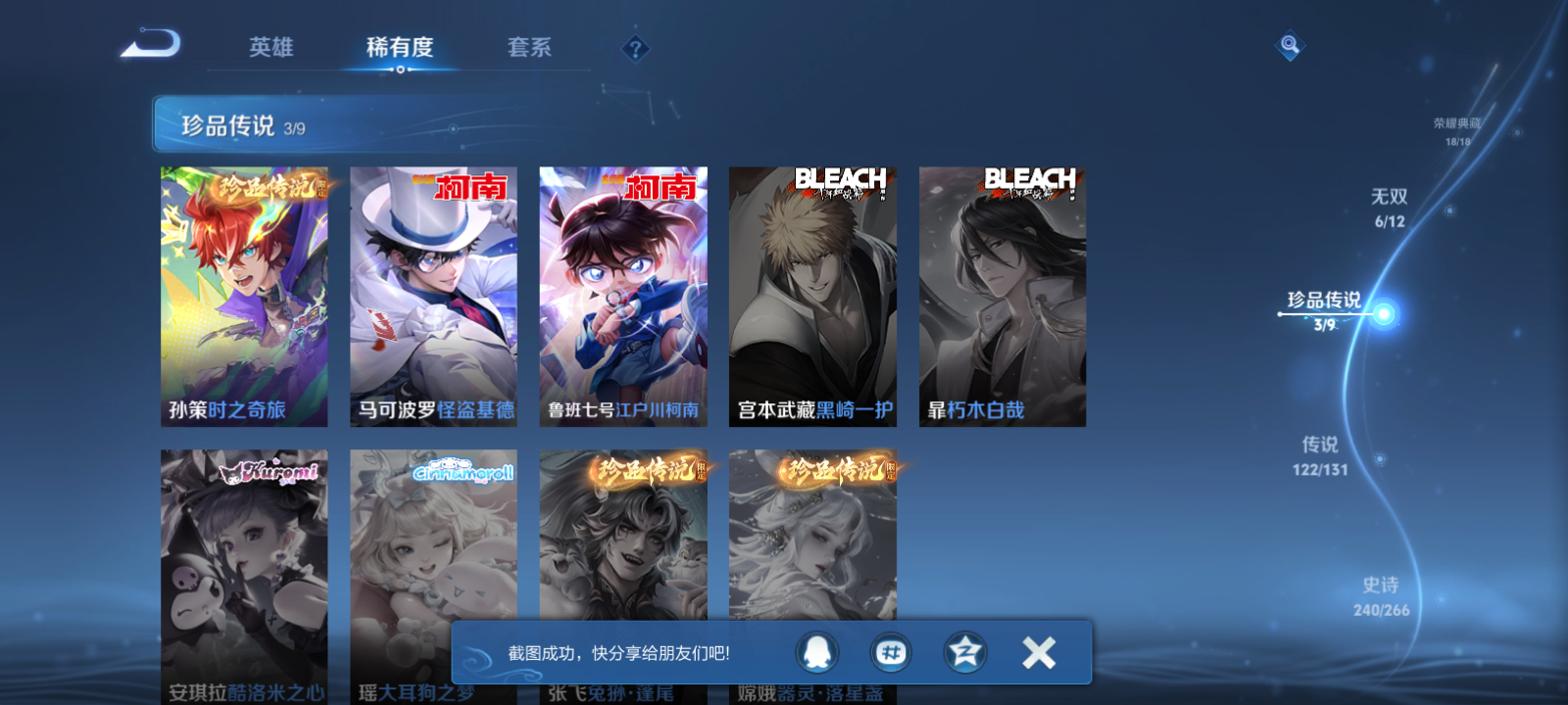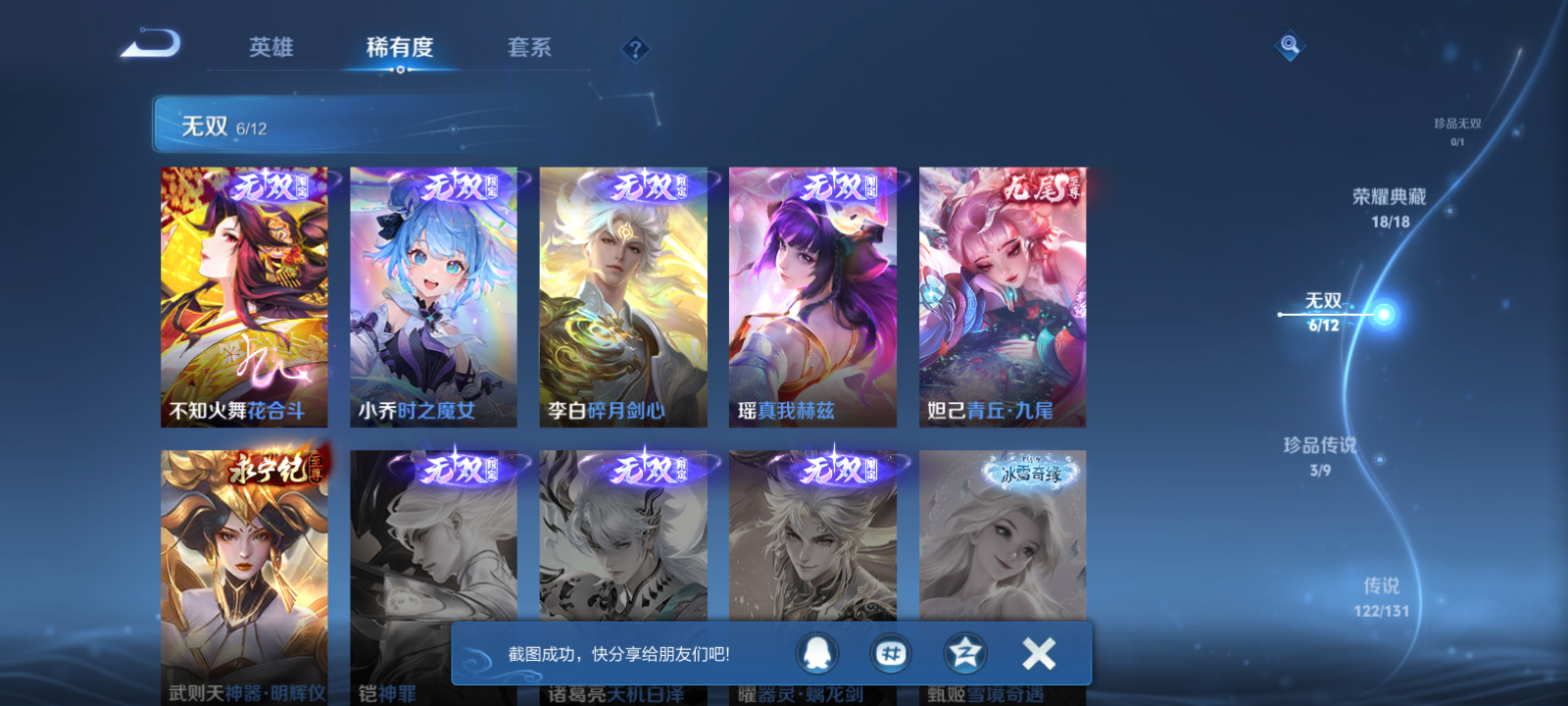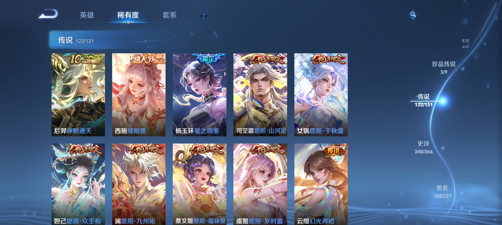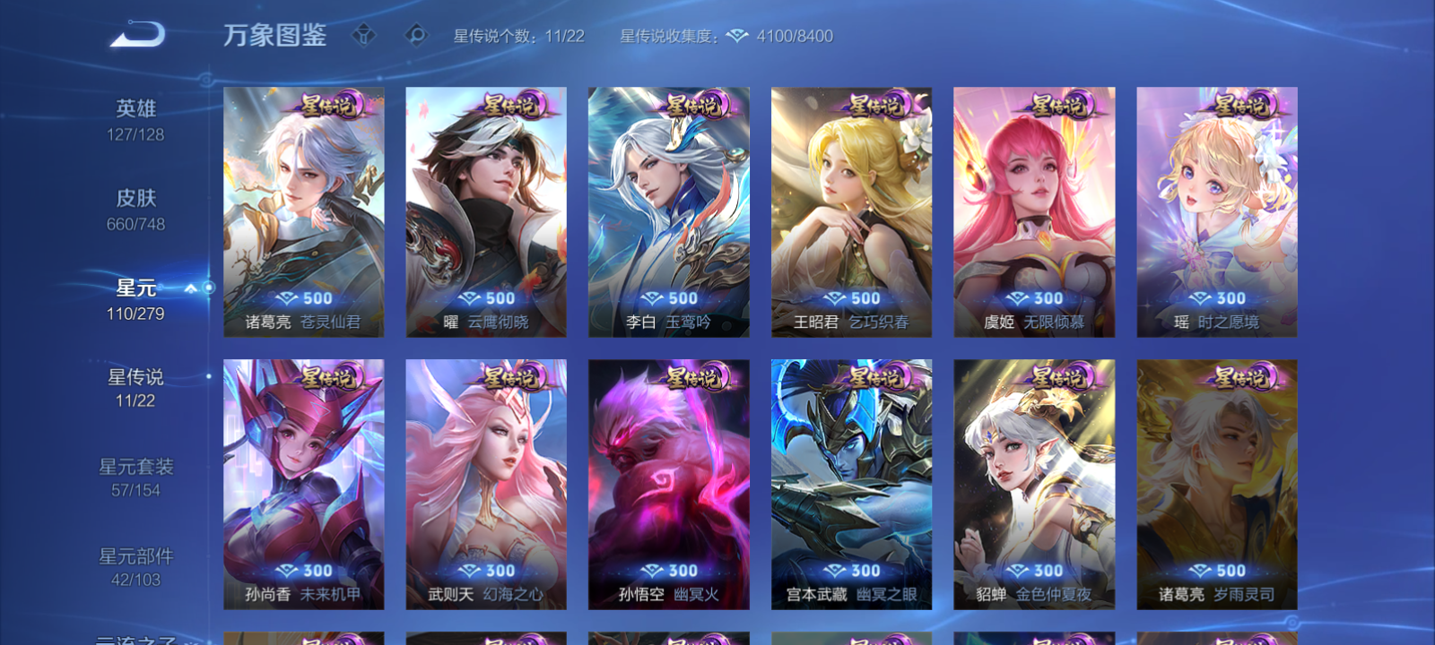 【王者荣耀】【lywz22220】珍品无双0 典藏18 无双6 珍品传说3 传说122 史诗239 英雄127 皮肤660 贵族10级 荣耀典藏:无限飓风号|全息碎影|天鹅之梦|大秦宣太后|杀手不太冷|武则天|神鉴启示录|银白咏叹调|赤影疾锋|幻阙歌|活力突击|九霄神辉|鸣剑·曳影|倪克斯神谕|弑呛猎影|星空梦想|星域神启|拾光映像|最初的交响__无双皮肤:时之魔女|碎月剑心|真我赫兹|花合斗|青丘·九尾|神器·明辉仪__珍品传说:江户川柯南|怪盗基德|孙策-时之奇旅__传说皮肤:鸣野蒿|枫霜尽|前尘镜|音你闪耀|深海之息|无尽星芒|无双飞将|挚爱花嫁|挚爱之约|启示之音|花朝如约|补天|异界灵契|绛天战甲|炽阳神光|启明星使|胖达荣荣|地狱之眼|地狱火|海洋之心|孙策-末日机甲|仲夏夜之梦|云霓雀翎|久胜战神|黄金狮子座|狄仁杰-超时空战士|黄金射手座|黄金白羊座|猫影幻舞|刘备-时之恋人|一念神魔|云鹰飞将|冠军飞将|飞鸢探春|李|游龙清影|乞巧织情|淬星耀世|瑶-时之祈愿|炽翼辉光|电玩·雷克斯|绯月行|浮生妄|鹤羽星尊|画中仙|记忆之芯|孙尚香-末日机甲|齐天大圣|白虎志|安琪拉-追逃游戏|大乔-时之奇旅|凤求凰|黄金天蝎座|金乌负日|惊梅引|铠-琥珀纪元|兰陵王-默契交锋|零号·赤焰|鲁班七号-时之奇旅|落雪白狼|吕布-曦玄引|马超-琥珀纪元|怒海麟威|祈雪灵祝|燃星之曲|诗剑行|时雨天司|霜月吟|碎云|太华|天魔缭乱|妄想奇谈|妄想实况|武陵仙君|武圣|貂蝉-曦玄引|项羽-无限倾心|小动物乐团|小乔-音你心动|星穹之声|亚瑟-追逃游戏|夜礼服假面|寅虎·瑞焰|影龙天霄|永恒水手月亮|虞姬-无限倾心|遇见胡旋|遇见神鼓|战鼓燎原|周瑜-音你心动|逐花归海|乘龙·淬吴钩|乘龙·铭钟鼎|乘龙·问璇玑|云缨-鹤归松栖|觅芳踪|山海·苍雷引|山海·炽霜斩|山海·琳琅生|神器·狴犴令|朵莉亚-心动手记|寅虎·赤拳|云中君-群星魔术团|至美·化雀舞|灼幽烈阳|冥王哈迪斯|映山客|牧神诗旅|张飞-百相守梦|玄雷天君|幻光神呛|祥瑞亨通|愿照·岁时盈|愿照·山河定|愿照·九州拓|愿照·众生和|愿照·福禄聚|星之鸣奏|愿照·千秋盛|续相思|神树通天__稀有限定:寅虎·御盾|寅虎·展翼|寅虎·心曲|奔雷神使|御风骁将|白晶晶|至尊宝|梅西|瑞麟志|青龙志|玄武志|朱雀志|虞姬-霸王别姬|大圣娶亲|一生所爱|引擎之心|纯白花嫁|岱宗|玄嵩|幽恒|飞衡|蔷薇恋人|奇迹圣诞|蜜橘之夏|虎魄|神威|烈魂|龙胆|青春决赛季|白鹤梁神女|乒乒小将|孙行者|猪悟能|女儿国国王|傲雪梅呛|玉兔公主|李小龙|梁祝|山海·碧波行|山海·玄木吟|神器·万象笔|时之彼端|狮舞东方|唐三藏|拒霜思|暗影游猎|白昼王子|百解令|百里守约-真我赫兹|百木心呛|冰锋战神|冰霜恋舞曲|嫦娥-如梦令|超元猎域|妲己-时之奇旅|大漠名商|地狱燃心|电玩高手|繁星吟游|凤凰于飞|高山流水|古海寻踪|海滩派对|海盐诗旅|航海奇遇记|后羿-如梦令|胡桃异想国|华丽摇滚|幻夜卜梦|皇家上将|辉光之辰|混沌棋|火炮绅士|剑破天穹|江河有灵|降魔|金庭之子|镜-真我赫兹|决胜骁骑|狂想玩偶喵|蓝屏警告|黎明之约|美猴王|梦圆繁星|迷踪丽影|魔法小厨娘|魔术师|花木兰-默契交锋|匿光决锋者|匿光破解者|匿光启智者|匿光侦查者|匿光追影者|女武神|奇幻香踪|千军破阵|擒涛扼浪|青焰无极|穷奇|驱傩正仪|燃音魔法|热情桑巴|荣光圣徽|沙漠行僧|圣诞老人|朔风刀|探海日志|饕餮|醍醐杖|天降福星|天狼绘梦者|天狼狩猎者|天狼溯光者|天狼运算者|天狼征服者|天穹祈灯|玩趣恶龙|阿古朵-顽趣|万华元夜|王者之锤|妄想食味|无心|五谷丰年|午后时光|纤云弄巧|项羽-霸王别姬|星界游侠|星空之诺|驯魔猎人|演武夺筹|夜都怪侠|夜都魔契|疑决卦|阴阳师|吟游魔法|银河之约|优雅恋人|游园惊梦|驭风魔法|遇见飞天|御旌|御銮|御狮|原初追逐者|云端筑梦师|云间偶戏|真爱魔法|逐梦之光|逐梦之星|逐梦之翼|逐梦之音|逐梦之影|暗夜贵公子|暗夜猫娘|暗隐猎兽者|暗渊魔法|白龙吟|白蛇|缤纷独角兽|冰冠公主|冰雪圆舞曲|苍穹之光|乘风破浪|乘龙·聚宝船|乘龙·忆丹青|大乔-猫狗日记|德古拉伯爵|地狱岩魂|电玩·爆裂旋风|电玩·兔顽号|电玩小子|浮梦罗烟|伽罗-琥珀纪元|功夫厨神|鬼剑武藏|唤灵魅影|黄金分割率|箭羽风息|节奏热浪|金属风暴|莱西奥-末日机甲|乐园奇幻夜|李元芳-蔬乡物语|龙鼓争鸣|龙骑士|吕布-末日机甲|玫瑰异探|魅力维加斯|魅语|梦奇-顽趣|女仆咖啡|偶像歌手|奇遇舞章|奇遇星旅|千筹问战|青蛇|热力回旋|赏金猎手|上官婉儿-群星魔术团|绅士熊喵|圣诞狂欢|圣诞恋歌|诗语江南|鲁班七号-蔬乡物语|水果甜心|水晶猎龙者|孙策-猫狗日记|滕王阁序|天才门将|天秀·幻梦|天秀·启明|天秀·音浪|完美假期|晚萤|赵云-未来纪元|嘻哈天王|闲日渔趣|星夜王子|雪上飞焰|雪夜绮愿|摇滚巨星|夜落电台|银翎春语|鹰眼统帅|永昼|幽灵船长|遇见神鹿|月团寄思|云中君-时之祈愿|职棒王牌|至美·乘鲤谣|钟无艳-超时空战士|周瑜-真爱至上|逐浪之夏|紫霞仙子|赵怀真-鹤归松栖|百里守约-百相守梦|老夫子-百相守梦|陌上桑|谪仙醉月|星界特工|噬灭天穹|敬我三分|炽弈燎原|撼地雄心|破空之剑|战舞者|东方月初|涂山红红|霜北刀|埋骨钱|顽岩魄|蔡文姬-夏日便利店|虞姬-夏日便利店|天穹之誓|浮光幕影|怒海争锋|海诺-心动手记|安琪拉-时之奇旅|修罗|曙光守护者|心灵战警|千年之狐|关羽-百相守梦|刘备-百相