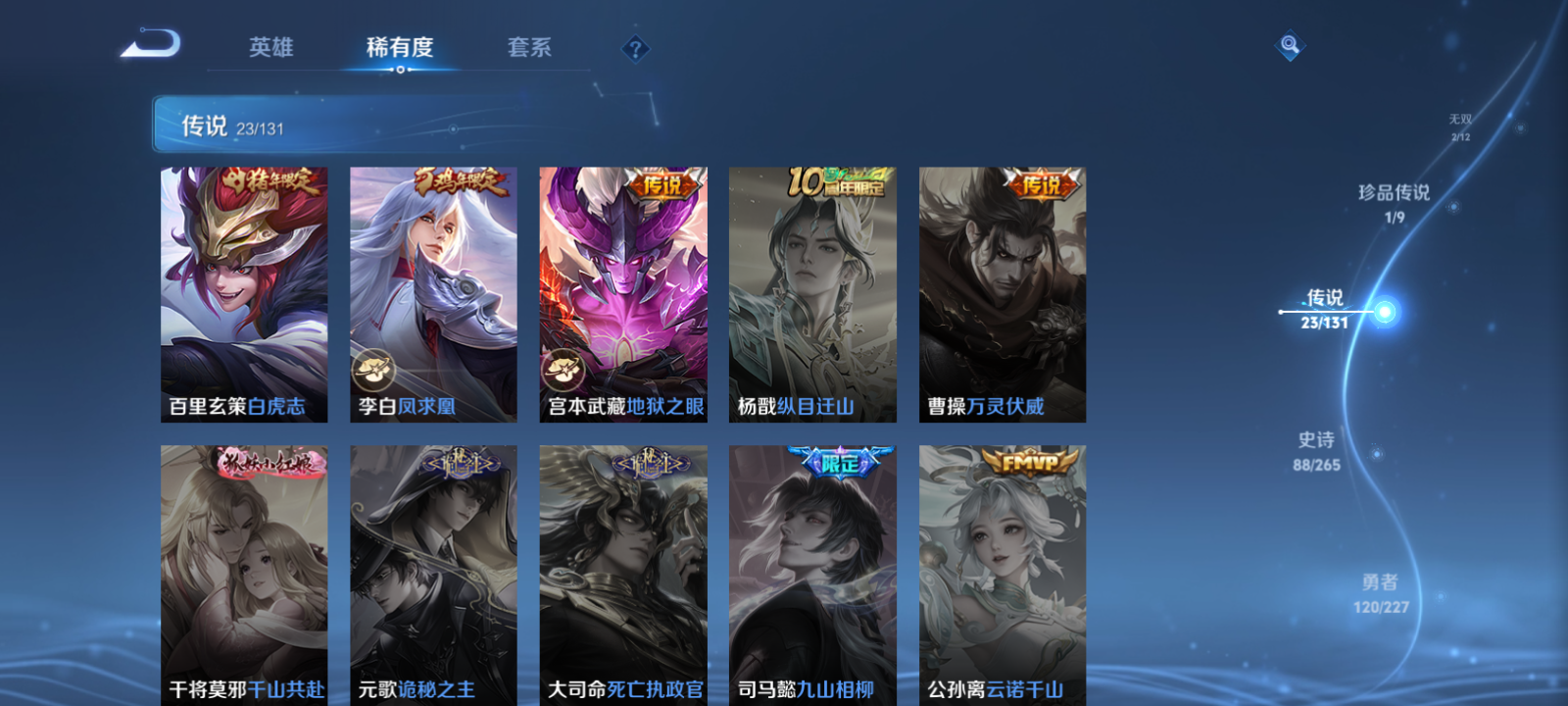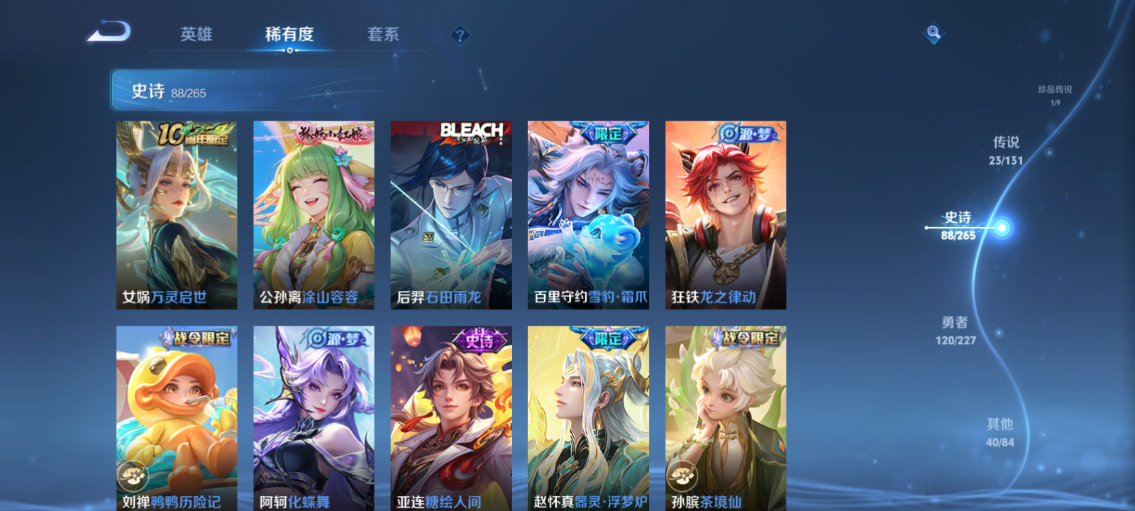 【王者荣耀】【lywz22174】珍品无双0 典藏3 无双2 珍品传说1 传说23 史诗88 英雄127 皮肤277 贵族7级 荣耀典藏:九霄神辉|鸣剑·曳影|弑呛猎影__无双皮肤:碎月剑心|器灵·螭龙剑__珍品传说:黑崎一护__传说皮肤:鸣野蒿|无尽星芒|无双飞将|绛天战甲|炽阳神光|启明星使|地狱之眼|云霓雀翎|一念神魔|李|淬星耀世|白虎志|凤求凰|零号·赤焰|祈雪灵祝|时雨天司|霜月吟|太华|逐花归海|幻光神呛|愿照·九州拓|愿照·千秋盛|神树通天__稀有限定:白晶晶|至尊宝|朱雀志|大圣娶亲|一生所爱|蔷薇恋人|神威|白鹤梁神女|傲雪梅呛|玉兔公主|李小龙|山海·玄木吟|神器·万象笔|时之彼端|白昼王子|冰霜恋舞曲|大漠名商|电玩高手|高山流水|古海寻踪|海滩派对|海盐诗旅|航海奇遇记|皇家上将|混沌棋|剑破天穹|金庭之子|狂想玩偶喵|魔术师|花木兰-默契交锋|匿光决锋者|千军破阵|擒涛扼浪|青焰无极|驱傩正仪|荣光圣徽|沙漠行僧|朔风刀|探海日志|醍醐杖|天穹祈灯|玩趣恶龙|万华元夜|妄想食味|无心|五谷丰年|午后时光|纤云弄巧|演武夺筹|疑决卦|阴阳师|御旌|御銮|原初追逐者|云间偶戏|暗夜贵公子|暗隐猎兽者|暗渊魔法|冰冠公主|冰雪圆舞曲|苍穹之光|德古拉伯爵|地狱岩魂|功夫厨神|鬼剑武藏|唤灵魅影|节奏热浪|金属风暴|龙骑士|吕布-末日机甲|魅力维加斯|魅语|梦奇-顽趣|女仆咖啡|偶像歌手|圣诞狂欢|圣诞恋歌|鲁班七号-蔬乡物语|水果甜心|水晶猎龙者|天秀·启明|晚萤|赵云-未来纪元|星夜王子|摇滚巨星|鹰眼统帅|永昼|幽灵船长|月团寄思|云中君-时之祈愿|逐浪之夏|紫霞仙子|谪仙醉月|星界特工|噬灭天穹|敬我三分|东方月初|天穹之誓|修罗|曙光守护者|心灵战警|特工魅影|心灵骇客|茶境仙|谧流熔炉|器灵·浮梦炉|糖绘人间|化蝶舞|御霄|原初探秘者|云中旅人|单词大作战|访茗客|苍威无极|墨子-神迹守卫|死神来了|刘禅-鸭鸭历险记|沈梦溪-鸭鸭历险记|雪豹·霜爪|龙之律动|布丁狗之约|虚灵犬护|石田雨龙|逆浪荇歌|涂山容容|荣光之誓|万灵启世|鹤鸣心笺__优质皮肤:尼罗河女神|创世神祝|孤猎|熊喵少女|午夜歌剧院|露花倒影|未来旅行|激情绿茵|海之征途|天启骑士|碧珀绯影|秩序猎龙将|森|绯红之刃|启蛰|画中游|芝加哥教父|街头旋风|绝影神呛|幸存者|赤焰之缨|福禄兄弟|前尘|特种部队|精灵王|剑舞者|范海辛|龙域领主|魇语军师|蔷薇王座|灼热之刃|战争女神|异域舞娘|精灵公主|修竹墨客|万圣前夜|功夫炙烤|潮玩探月行|瓷语鉴心|秘密基地|次元突破|鲨炮海盗猫|野性能量|丁香结|奇妙博物学|虹云星官|守护之力|坚韧之力|幻乐之宴|功夫老勺|幻想奇妙夜|海滩丽影|兔女郎|死亡骑士|黄金武士|少女阿狸|天使之翼|宫本武藏-未来纪元|东方不败|红桃皇后|忍·炎影|街头霸王|教廷特使|时空谍影|太极少年|幻泉雾影|危途狂花|胡桃狂想曲|潮玩牛仔|次元傲视|进击墨子号|拳王|时尚教父|白色死神|白执事|大发明家|哥特玫瑰|西施-雪境奇遇|金福满堂|星梦巡礼|缤纷绘卷|雾都夜雨|逐霄战戟|纽约教父|龙腾万里|霸王丸|乱世虎臣|敏锐之力|孙悟空-西部大镖客|龙舞盛年|汉昭烈帝|乓乓大师|五福同心|盾山-圆桌骑士|猎兽之王|万事如意|曜-归虚梦演|沉稳之力|完美运算|化身博士|花好人间|熔金海岸|潮玩骑士王|万象初新|苍林狼骑|特工战影|炽热元素使|秘证寻踪|春野闲踪|灵野札记|玫蓝誓约|命运加冕|潮玩士官长|小满鸭|死霸装|无双福将|锦麟游梦|踏浪烽翎__贵族等级:贵族7级__王者段位:荣耀王者打野对抗皮肤号【3典藏2无双1珍品】无双飞将,炽阳神光,愿照·千秋盛,愿照·九州拓,地狱之眼,霜月吟,逐花归海,无尽星芒,李 ,祈雪灵祝,时雨天司,零号·赤焰,一念神魔,太华,凤求凰,云霓雀翎,白虎志