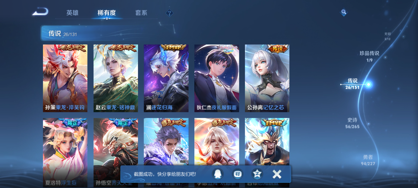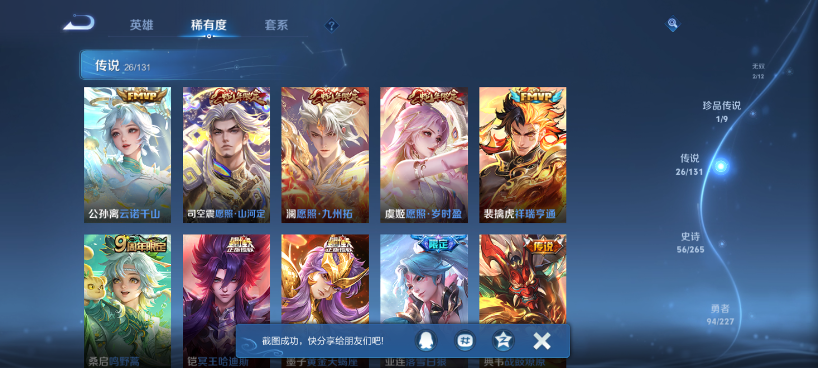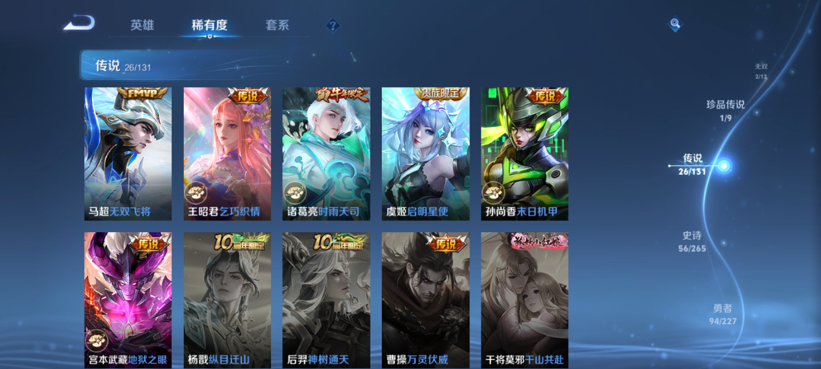 【王者荣耀】【lywz22228】珍品无双0 典藏1 无双2 珍品传说1 传说26 史诗56 英雄126 皮肤228 贵族8级 荣耀典藏:神鉴启示录__无双皮肤:群星魔术团|器灵·螭龙剑__珍品传说:怪盗基德__传说皮肤:鸣野蒿|无双飞将|启明星使|地狱之眼|乞巧织情|浮生妄|记忆之芯|孙尚香-末日机甲|齐天大圣|黄金天蝎座|落雪白狼|怒海麟威|时雨天司|夜礼服假面|战鼓燎原|逐花归海|乘龙·淬吴钩|乘龙·铭钟鼎|山海·苍雷引|山海·炽霜斩|冥王哈迪斯|祥瑞亨通|愿照·岁时盈|愿照·山河定|愿照·九州拓|云诺千山__稀有限定:至尊宝|龙胆|山海·玄木吟|古海寻踪|海滩派对|海盐诗旅|皇家上将|剑破天穹|狂想玩偶喵|魔术师|擒涛扼浪|青焰无极|燃音魔法|探海日志|天穹祈灯|妄想食味|星界游侠|阴阳师|原初追逐者|暗夜贵公子|暗渊魔法|冰雪圆舞曲|乘风破浪|德古拉伯爵|地狱岩魂|鬼剑武藏|唤灵魅影|节奏热浪|金属风暴|李元芳-蔬乡物语|龙鼓争鸣|吕布-末日机甲|玫瑰异探|魅力维加斯|偶像歌手|赏金猎手|绅士熊喵|鲁班七号-蔬乡物语|水果甜心|水晶猎龙者|孙策-猫狗日记|天秀·启明|星夜王子|摇滚巨星|鹰眼统帅|逐浪之夏|紫霞仙子|百里守约-百相守梦|老夫子-百相守梦|陌上桑|谪仙醉月|噬灭天穹|破空之剑|顽岩魄|蔡文姬-夏日便利店|虞姬-夏日便利店|天穹之誓|浮光幕影|海诺-心动手记|刘备-百相守梦|特工魅影|茶境仙|谧流熔炉|器灵·浮梦炉|化蝶舞|孙悟空-神迹守卫|访茗客|暖冬·兔眠|灵卜魔法|苍威无极|圣弓游侠|落雪兰心|刘禅-鸭鸭历险记|沈梦溪-鸭鸭历险记|龙之律动|布丁狗之约|虚灵犬护|石田雨龙|逆浪荇歌|黄忠-百相守梦|荣光之誓__优质皮肤:一千零一夜|创世神祝|年年有余|埃及法老|孤猎|木偶奇遇记|熊喵少女|午夜歌剧院|露花倒影|未来旅行|激情绿茵|天启骑士|碧珀绯影|秩序猎龙将|超能战警|维京掠夺者|踏雪寻梅|启蛰|战争骑士|生化警戒|威尼斯狂欢|第七人偶|潮流仙人|芝加哥教父|街头旋风|地府判官|幸存者|赤焰之缨|福禄兄弟|隐刃|特种部队|精灵王|龙域领主|爱与和平|占星师|花间舞|极冰防御线|花见巫女|棒球奇才|蔷薇王座|灼热之刃|帝国元帅|霓裳曲|加勒比小姐|动物派对|绒语心约|长夏之忆|潮玩探月行|秘密基地|野性能量|丁香结|功夫老勺|兔女郎|死亡骑士|黄金武士|少女阿狸|天使之翼|玩偶对对碰|宫本武藏-未来纪元|红桃皇后|忍·炎影|街头霸王|金色潮汐|破局者|王牌新星|西部游侠|太极少年|乐园追猎者|幻泉雾影|潮玩造梦师|危途狂花|胡桃狂想曲|铁甲之心|黑桃队长|拳王|时尚教父|救世之瞳|白色死神|哥特玫瑰|西施-雪境奇遇|金福满堂|星梦巡礼|灵卦秘语|爆裂喵拳|景韶洛都|雾都夜雨|龙腾万里|乱世虎臣|敏锐之力|龙舞盛年|乓乓大师|蒙犽-归虚梦演|万事如意|曜-归虚梦演|唤灵魔甲|太乙真人-圆桌骑士|沉稳之力|赤莲之焰|程咬金-群星魔术团|花好人间|熔金海岸|春野之旅|蔚蓝守将|特工战影|妄想特派|秘证寻踪|春野闲踪|灵野札记|玫蓝誓约|命运加冕|死霸装|锦麟游梦|踏浪烽翎|克喵|哪吒-罗小黑战记|逐霄之志__贵族等级:贵族8级__王者段位:无双王者打野射手皮肤号 虞姬典藏2无双 马可珍品传说 祥瑞亨通,落雪白狼,乘龙·铭钟鼎,乘龙·淬吴钩,逐花归海,浮生妄,愿照·九州拓,愿照·山河定得到那个限定皮肤