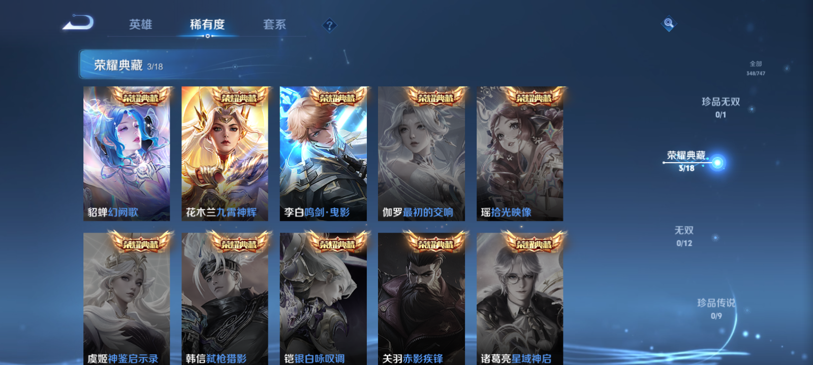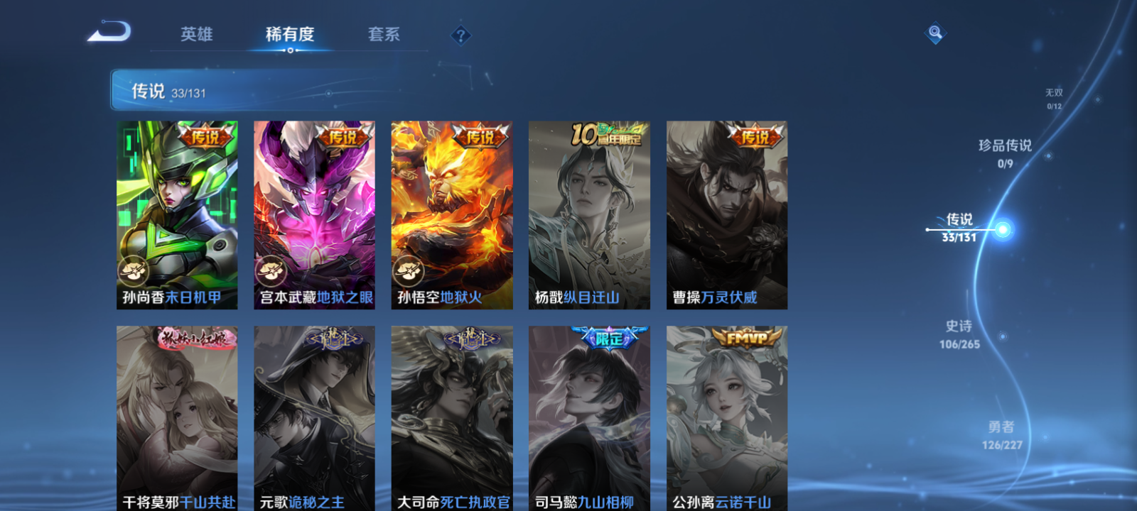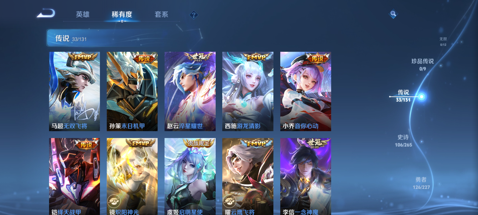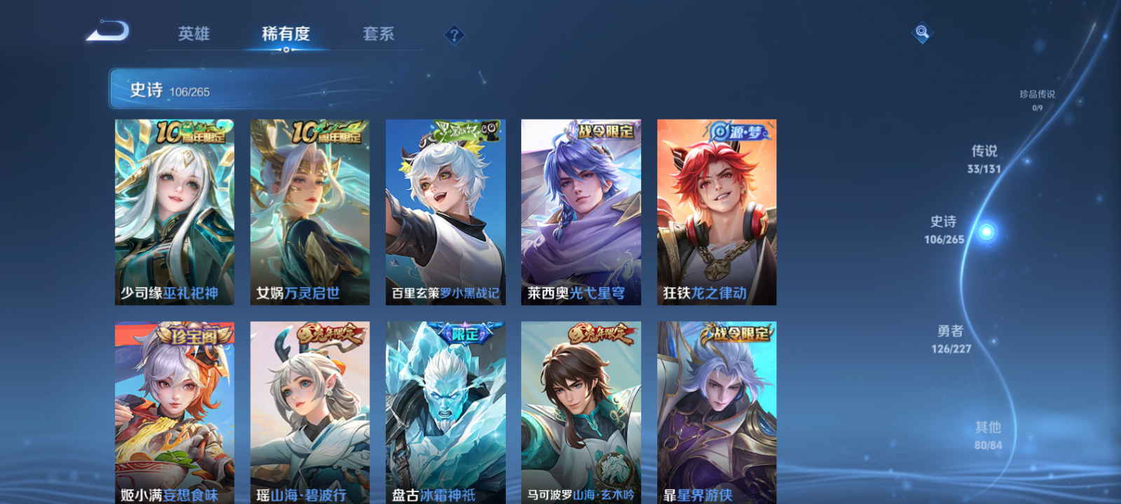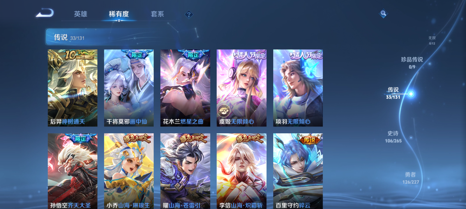 【王者荣耀】【lywz22275】珍品无双0 典藏3 无双0 珍品传说0 传说33 史诗106 英雄126 皮肤348 贵族9级 荣耀典藏:幻阙歌|九霄神辉|鸣剑·曳影__传说皮肤:无双飞将|绛天战甲|炽阳神光|启明星使|胖达荣荣|地狱之眼|地狱火|孙策-末日机甲|久胜战神|黄金狮子座|黄金白羊座|猫影幻舞|刘备-时之恋人|一念神魔|云鹰飞将|冠军飞将|游龙清影|淬星耀世|画中仙|孙尚香-末日机甲|齐天大圣|白虎志|凤求凰|燃星之曲|碎云|项羽-无限倾心|小乔-音你心动|永曜之星|虞姬-无限倾心|山海·苍雷引|山海·炽霜斩|山海·琳琅生|神树通天__稀有限定:至尊宝|青龙志|朱雀志|虞姬-霸王别姬|玄嵩|幽恒|飞衡|蜜橘之夏|虎魄|神威|烈魂|龙胆|青春决赛季|李小龙|梁祝|山海·碧波行|山海·玄木吟|神器·万象笔|狮舞东方|白昼王子|冰锋战神|冰霜神祇|大漠名商|繁星吟游|古海寻踪|海滩派对|海盐诗旅|后羿-如梦令|华丽摇滚|皇家上将|辉光之辰|混沌棋|金庭之子|凯尔特女王|狂想玩偶喵|蓝屏警告|迷踪丽影|魔术师|擒涛扼浪|穷奇|驱傩正仪|朔风刀|死亡摇滚|饕餮|醍醐杖|天穹祈灯|玩趣恶龙|万华元夜|妄想食味|无心|五谷丰年|项羽-霸王别姬|星界游侠|星空之诺|演武夺筹|妖精王|疑决卦|阴阳师|银河之约|遇见飞天|御旌|御銮|御狮|原初追逐者|云端筑梦师|逐梦之星|暗夜贵公子|暗夜猫娘|暗隐猎兽者|暗渊魔法|白龙吟|白蛇|缤纷独角兽|冰冠公主|冰雪圆舞曲|苍穹之光|乘风破浪|大乔-猫狗日记|德古拉伯爵|地狱岩魂|电玩小子|功夫厨神|鬼剑武藏|黄金分割率|箭羽风息|节奏热浪|金属风暴|乐园奇幻夜|龙骑士|吕布-末日机甲|魅力维加斯|魅语|女仆咖啡|偶像歌手|奇遇舞章|赏金猎手|绅士熊喵|圣诞狂欢|圣诞恋歌|水果甜心|水晶猎龙者|孙策-猫狗日记|滕王阁序|天才门将|天秀·启明|晚萤|赵云-未来纪元|嘻哈天王|星夜王子|雪上飞焰|摇滚巨星|鹰眼统帅|永昼|幽灵船长|钟无艳-超时空战士|逐浪之夏|紫霞仙子|安琪拉-时之奇旅|修罗|曙光守护者|心灵战警|千年之狐|无限星赏官|舞动绿茵|特工魅影|心灵骇客|御霄|狰|烛龙|原初探秘者|重明|云中旅人|单词大作战|朔望之晖|钟馗-神迹守卫|暖冬·兔眠|夺宝奇兵|落雪兰心|死神来了|华尔街大亨|龙之律动|布丁狗之约|虚灵犬护|光弋星穹|往忆晖光|百里玄策-罗小黑战记|荣光之誓|万灵启世|巫礼祀神|鹤鸣心笺__优质皮肤:尼罗河女神|一千零一夜|创世神祝|年年有余|埃及法老|孤猎|木偶奇遇记|熊喵少女|午夜歌剧院|露花倒影|激情绿茵|海之征途|天启骑士|碧珀绯影|秩序猎龙将|锦衣卫|冰刃幻境|森|超能战警|英喵野望|维京掠夺者|海军大将|绯红之刃|踏雪寻梅|启蛰|战争骑士|伊势巫女|画中游|生化警戒|威尼斯狂欢|第七人偶|潮流仙人|芝加哥教父|街头旋风|绝影神呛|地府判官|荷鲁斯之眼|幸存者|赤焰之缨|福禄兄弟|隐刃|前尘|特种部队|三太子|精灵王|剑舞者|范海辛|星航指挥官|龙域领主|爱与和平|占星师|花间舞|魇语军师|极冰防御线|花见巫女|棒球奇才|东海龙王|蔷薇王座|灼热之刃|精准探案法|圣殿之光|帝国元帅|战争女神|霓裳曲|加勒比小姐|阿摩司公爵|异域舞娘|精灵公主|修竹墨客|万圣前夜|暗都幽影|功夫炙烤|潮玩探月行|秘密基地|次元突破|鲨炮海盗猫|野性能量|丁香结|虹云星官|科学大爆炸|守护之力|坚韧之力|幻乐之宴|功夫老勺|命运角斗场|幻想奇妙夜|海滩丽影|阿尔法小队|兔女郎|死亡骑士|黄金武士|少女阿狸|天使之翼|玩偶对对碰|宫本武藏-未来纪元|红桃皇后|忍·炎影|爱心护理|街头霸王|教廷特使|金色潮汐|破局者|西部游侠|太极少年|乐园追猎者|牛运亨通|幻泉雾影|潮玩造梦师|危途狂花|黑桃队长|进击墨子号|拳王|时尚教父|救世之瞳|白色死神|程咬金-星际陆战队|白执事|大发明家|致命风华|哥特玫瑰|星梦巡礼|缤纷绘卷|掌控之力|纽约教父|龙腾万里|霸王丸|乱世虎臣|敏锐之力|西施-归虚梦演|孙悟空-西部大镖客|牛魔-西部大镖客|鲁班大师-归虚梦演|龙舞盛年|汉昭烈帝|乓乓大师|五福同心|盾山-圆桌骑士|猎兽之王|蒙犽-归虚梦演|万事如意|曜-归虚梦演|唤灵魔甲|太乙真人-圆桌骑士|沉稳之力|完美运算|化身博士|花好人间|万象初新|蔚蓝守将|特工战影|炽热元素使|春野闲踪|灵野札记|命运加冕|无双福将|云械蓝图|径山谋武|逐霄之志__贵族等级:贵族9级__王者段位:无双王者边路射手皮肤号 金标项羽 3典藏 无限倾心,永曜之星,山海·苍雷引,启明星使,凤求凰,白虎志,淬星耀世等限定皮肤