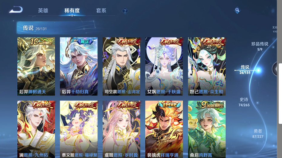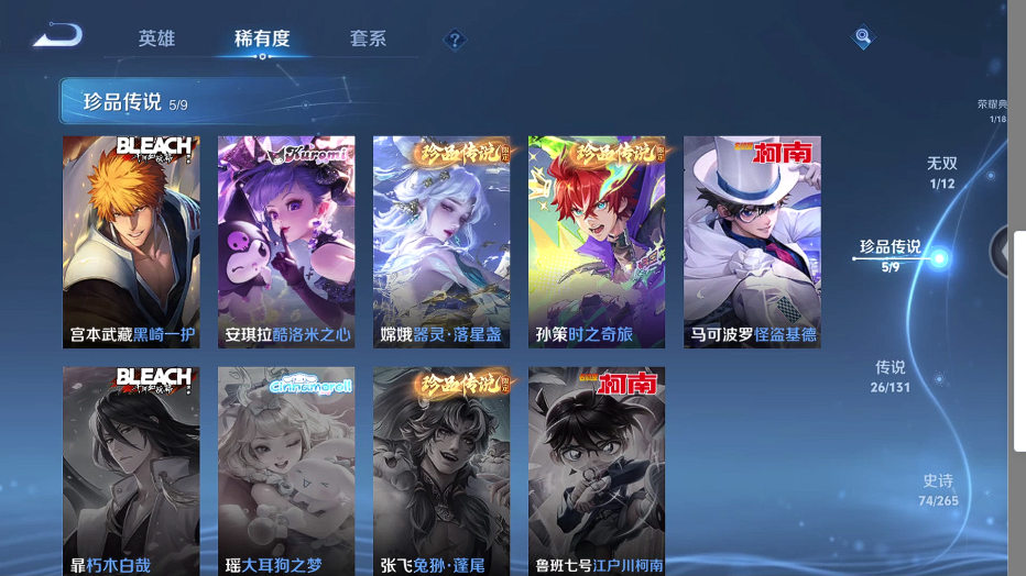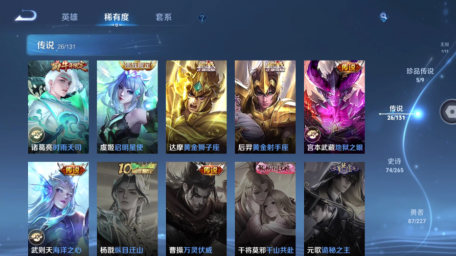 【王者荣耀】【lywz22285】珍品无双0 典藏1 无双1 珍品传说5 传说26 史诗75 英雄126 皮肤237 贵族7级 荣耀典藏:鸣剑·曳影__无双皮肤:器灵·螭龙剑__珍品传说:怪盗基德|孙策-时之奇旅|器灵·落星盏|酷洛米之心|黑崎一护__传说皮肤:鸣野蒿|启明星使|地狱之眼|海洋之心|黄金狮子座|黄金射手座|淬星耀世|浮生妄|铠-琥珀纪元|落雪白狼|祈雪灵祝|时雨天司|妄想实况|貂蝉-曦玄引|乘龙·铭钟鼎|山海·炽霜斩|冥王哈迪斯|祥瑞亨通|愿照·岁时盈|愿照·山河定|愿照·九州拓|愿照·众生和|愿照·福禄聚|愿照·千秋盛|千劫归真|神树通天__稀有限定:神威|烈魂|孙行者|神器·万象笔|时之彼端|拒霜思|百解令|冰霜神祇|大漠名商|繁星吟游|古海寻踪|海滩派对|海盐诗旅|后羿-如梦令|皇家上将|剑破天穹|魔术师|花木兰-默契交锋|青焰无极|驱傩正仪|燃音魔法|沙漠行僧|探海日志|天穹祈灯|妄想食味|纤云弄巧|阴阳师|银河之约|原初追逐者|暗隐猎兽者|白蛇|缤纷独角兽|冰雪圆舞曲|苍穹之光|乘风破浪|大乔-猫狗日记|德古拉伯爵|地狱岩魂|伽罗-琥珀纪元|功夫厨神|鬼剑武藏|黄金分割率|箭羽风息|节奏热浪|乐园奇幻夜|李元芳-蔬乡物语|龙鼓争鸣|魅力维加斯|偶像歌手|青蛇|绅士熊喵|圣诞狂欢|诗语江南|鲁班七号-蔬乡物语|水果甜心|水晶猎龙者|天秀·启明|晚萤|赵云-未来纪元|星夜王子|雪夜绮愿|摇滚巨星|鹰眼统帅|永昼|逐浪之夏|紫霞仙子|谪仙醉月|噬灭天穹|破空之剑|战舞者|埋骨钱|蔡文姬-夏日便利店|虞姬-夏日便利店|天穹之誓|浮光幕影|修罗|曙光守护者|心灵战警|无限星赏官|特工魅影|心灵骇客|茶境仙|谧流熔炉|万物之道|器灵·浮梦炉|云中旅人|孙悟空-神迹守卫|访茗客|灵卜魔法|苍威无极|刘禅-鸭鸭历险记|沈梦溪-鸭鸭历险记|龙之律动|布丁狗之约|虚灵犬护|逆浪荇歌|光弋星穹|往忆晖光|巫礼祀神|鹤鸣心笺__优质皮肤:一千零一夜|埃及法老|孤猎|午夜歌剧院|露花倒影|未来旅行|激情绿茵|海之征途|天启骑士|冰刃幻境|超能战警|英喵野望|维京掠夺者|海军大将|踏雪寻梅|战争骑士|伊势巫女|威尼斯狂欢|第七人偶|绝影神呛|地府判官|特种部队|精灵王|范海辛|占星师|花间舞|魇语军师|极冰防御线|棒球奇才|东海龙王|蔷薇王座|灼热之刃|战争女神|霓裳曲|加勒比小姐|异域舞娘|精灵公主|动物派对|异域游侠|暗都幽影|功夫炙烤|暖冬絮语|潮玩探月行|瓷语鉴心|次元突破|鲨炮海盗猫|幻乐之宴|功夫老勺|命运角斗场|幻想奇妙夜|海滩丽影|兔女郎|死亡骑士|黄金武士|天使之翼|宫本武藏-未来纪元|红桃皇后|忍·炎影|爱心护理|街头霸王|金色潮汐|漠中幻影|时空谍影|决胜大满贯|潮玩造梦师|胡桃狂想曲|黑桃队长|拳王|时尚教父|白执事|大发明家|哥特玫瑰|西施-雪境奇遇|金福满堂|星梦巡礼|灵卦秘语|爆裂喵拳|雾都夜雨|逐霄战戟|龙腾万里|乱世虎臣|经纬探寻者|西施-归虚梦演|孙悟空-西部大镖客|热血海滩|龙舞盛年|乓乓大师|万事如意|曜-归虚梦演|唤灵魔甲|太乙真人-圆桌骑士|沉稳之力|程咬金-群星魔术团|完美运算|熔金海岸|春野之旅|蔚蓝守将|特工战影|妄想特派|命运加冕|潮玩士官长|死霸装|张良-罗小黑战记__贵族等级:贵族7级__王者段位:永恒钻石【金标嫦娥 廉颇】边路打野皮肤号 1典藏 1无双5珍品传说 祈雪灵祝,海洋之心,祥瑞亨通,浮生妄,落雪白狼,乘龙·铭钟鼎,琥珀纪元 满蛇年限定套等限定皮肤