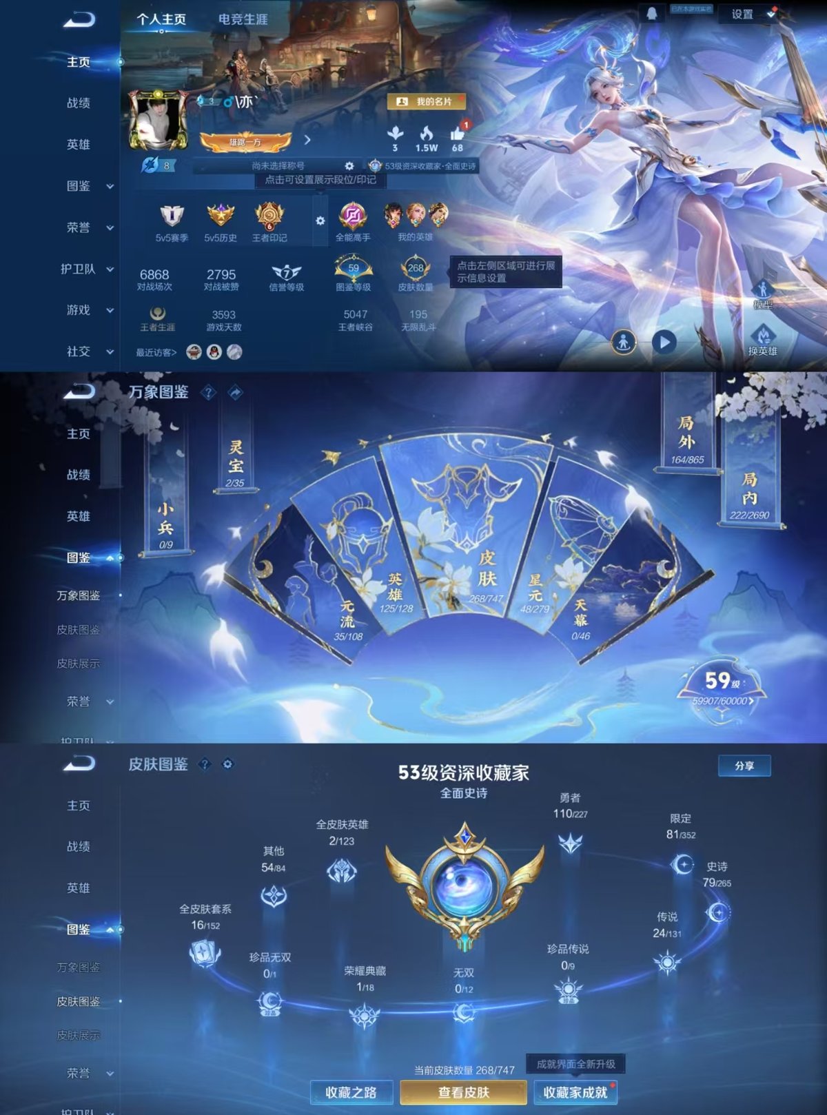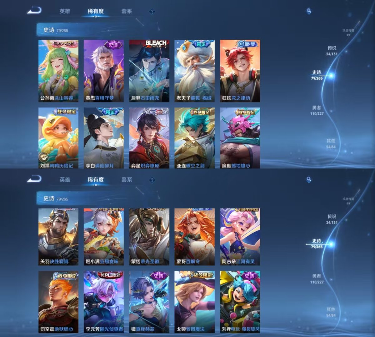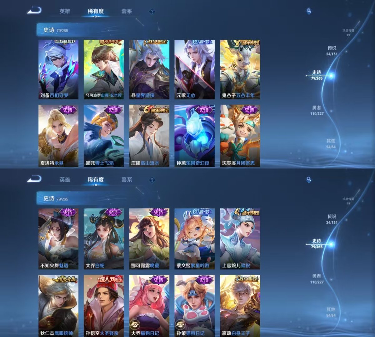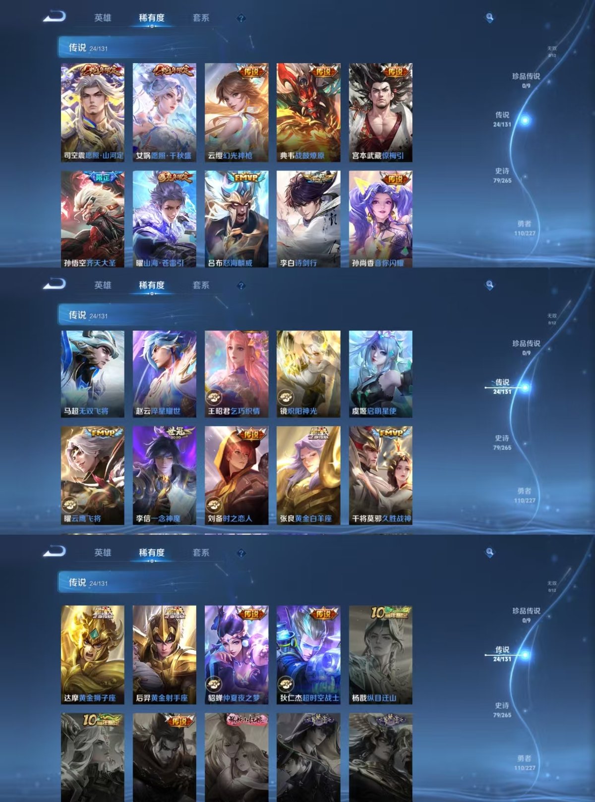 _2290807-实名:可修改贵族等级:v8英雄数:125皮肤数:268荣耀水晶:最初的交响传说皮:黄金狮子座黄金射手座云鹰飞将黄金白羊座久胜战神炽阳神光一念神魔仲夏夜之梦乞巧织情时之恋人-刘备淬星耀世超时空战士-狄仁杰无双飞将音你闪耀山海·苍雷引惊梅引典韦战鼓燎原幻光神呛限定皮:遇见飞天李小龙梁祝至尊宝大圣娶亲高山流水五谷丰年诗剑行怒海麟威山海·玄木吟齐天大圣愿照·千秋盛愿照·山河定
