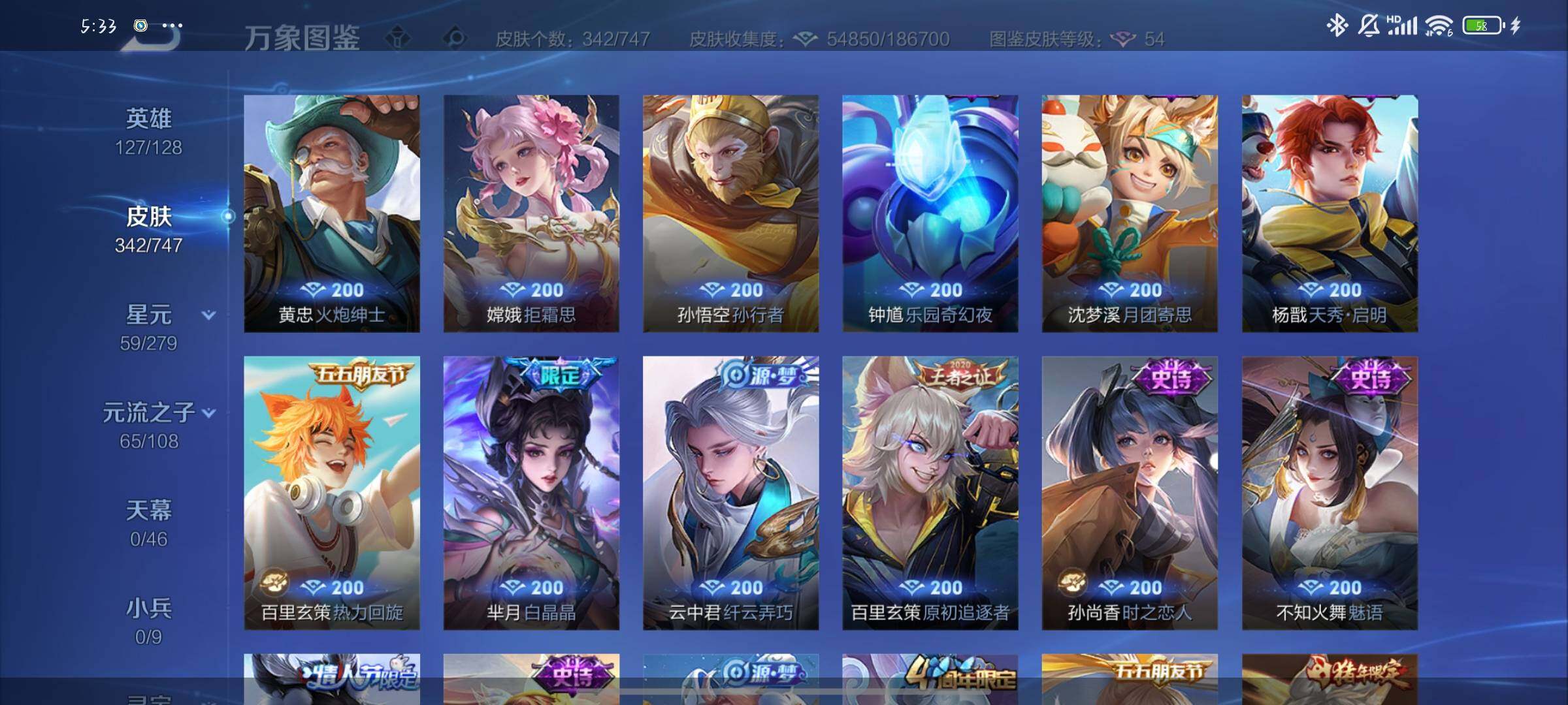 【店铺主推·精品质量国标号·43段打野·40段发育路·小国高渐离·金标阿珂·金标芈月·金标暃·满龙年限定·碎月剑心·最初的交响·寅虎赤拳·愿照九州拓·愿照岁时盈·落雪白狼·马超琥珀纪元·铠琥珀纪元·霜月吟·妄想实况·画中仙·燃星之曲·项羽无限倾心·山海苍雷引·无双飞将·可二次】w7186-安卓q-127英雄-342皮肤-14王者印记-250铭文-贵族积分9w【贵族8】【1典藏·1无双·2星