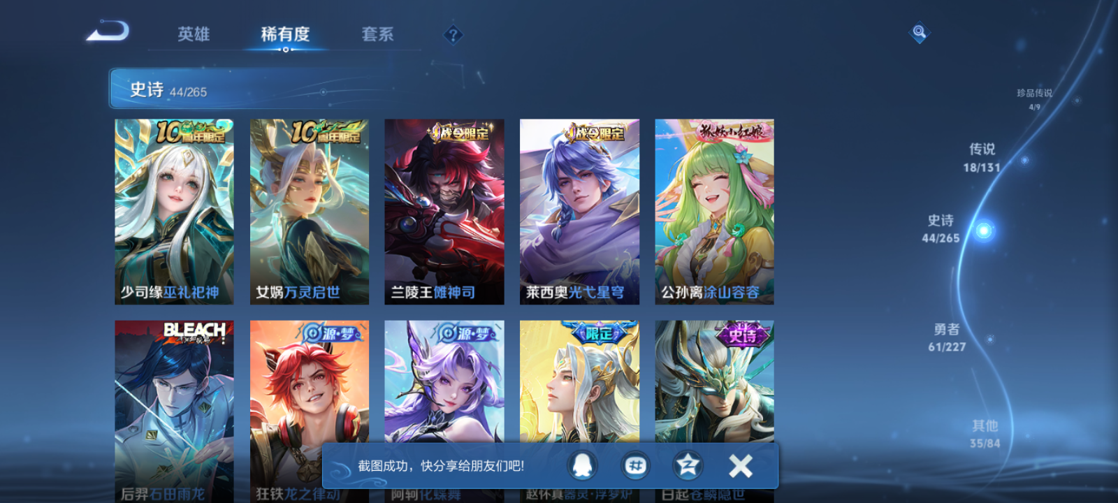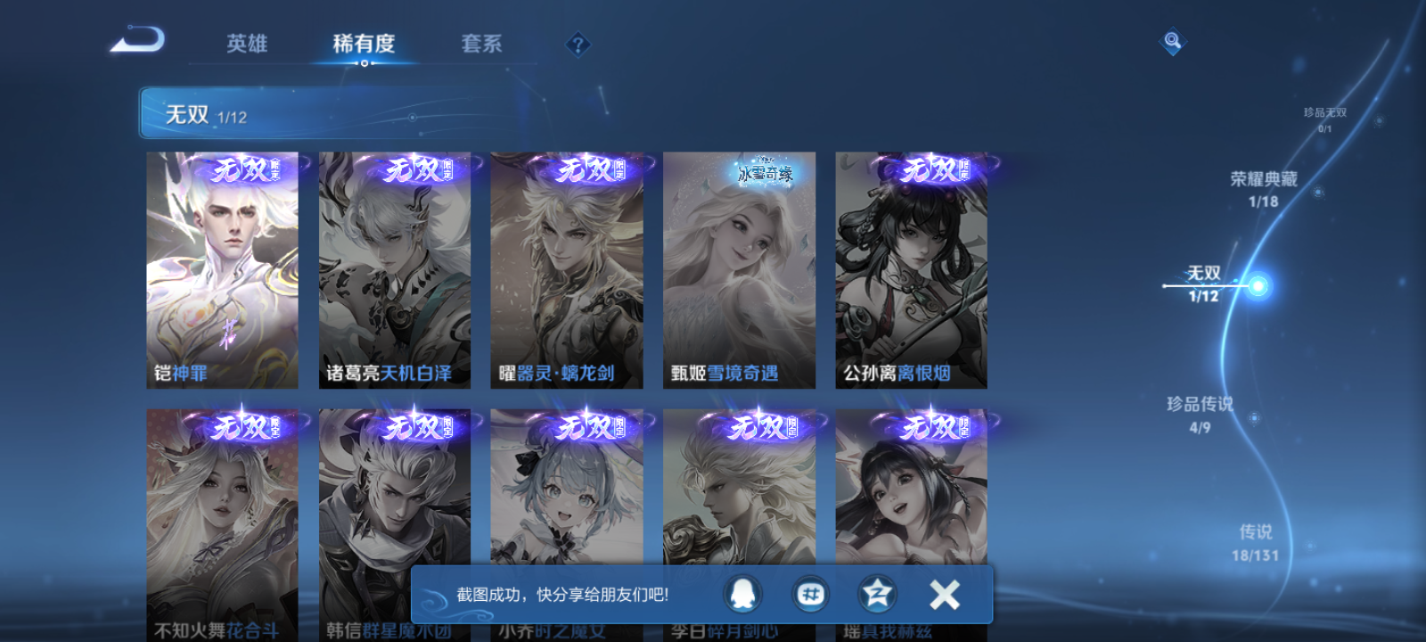 【王者荣耀】【lywz22231】珍品无双0 典藏1 无双1 珍品传说4 传说18 史诗44 英雄126 皮肤164 贵族8级 荣耀典藏:九霄神辉__无双皮肤:神罪__珍品传说:江户川柯南|怪盗基德|孙策-时之奇旅|器灵·落星盏__传说皮肤:鸣野蒿|音你闪耀|花朝如约|炽阳神光|启明星使|地狱之眼|地狱火|仲夏夜之梦|黄金狮子座|黄金白羊座|一念神魔|淬星耀世|惊梅引|映山客|祥瑞亨通|神树通天|纵目迁山__稀有限定:神威|烈魂|冰锋战神|冰霜恋舞曲|海滩派对|皇家上将|迷踪丽影|魔术师|阴阳师|冰冠公主|冰雪圆舞曲|乘风破浪|乘龙·聚宝船|大乔-猫狗日记|功夫厨神|鬼剑武藏|黄金分割率|节奏热浪|吕布-末日机甲|女仆咖啡|赏金猎手|圣诞恋歌|诗语江南|水果甜心|水晶猎龙者|天秀·启明|星夜王子|摇滚巨星|鹰眼统帅|遇见神鹿|紫霞仙子|百里守约-百相守梦|老夫子-百相守梦|星界特工|噬灭天穹|敬我三分|破空之剑|霜北刀|虞姬-夏日便利店|天穹之誓|孙尚香-时之恋人|茶境仙|谧流熔炉|苍鳞隐世|器灵·浮梦炉|化蝶舞|孙悟空-神迹守卫|流音漫舞|访茗客|龙之律动|虚灵犬护|石田雨龙|涂山容容|光弋星穹|傩神司|往忆晖光|荣光之誓|万灵启世|巫礼祀神|鹤鸣心笺__优质皮肤:一千零一夜|埃及法老|露花倒影|激情绿茵|海之征途|秩序猎龙将|超能战警|海军大将|踏雪寻梅|启蛰|生化警戒|第七人偶|潮流仙人|街头旋风|幸存者|隐刃|剑舞者|范海辛|星航指挥官|龙域领主|爱与和平|花间舞|魇语军师|极冰防御线|花见巫女|东海龙王|灼热之刃|精准探案法|霓裳曲|修竹墨客|怪诞之夜|动物派对|潮玩探月行|虎啸剑宗|次元突破|丁香结|幻乐之宴|功夫老勺|幻想奇妙夜|海滩丽影|阿尔法小队|死亡骑士|黄金武士|少女阿狸|宫本武藏-未来纪元|红桃皇后|爱心护理|街头霸王|西部游侠|牛运亨通|次元傲视|拳王|哥特玫瑰|魅影绮裳|西施-雪境奇遇|景韶洛都|浪漫序章|掌控之力|雾都夜雨|逐霄战戟|铁骨偃魂|龙腾万里|孙悟空-西部大镖客|鲁班大师-归虚梦演|龙舞盛年|汉昭烈帝|乓乓大师|五福同心|曜-归虚梦演|太乙真人-圆桌骑士|完美运算|花好人间|万象初新|苍林狼骑|蔚蓝守将|春野闲踪|死霸装|张良-罗小黑战记|径山谋武|逐霄之志__贵族等级:贵族8级__王者段位:非凡王者无双神罪 典藏九霄神辉 4珍品器灵·落星盏,时之奇旅,江户川柯南,怪盗基德 霜北刀,黄金狮子座,纵目迁山,神树通天,地狱火,启明星使,炽阳神光,仲夏夜之梦,黄金白羊座,祥瑞亨通,地狱之眼,淬星耀世,音你闪耀,惊梅引,一念神魔,花朝如约,映山客