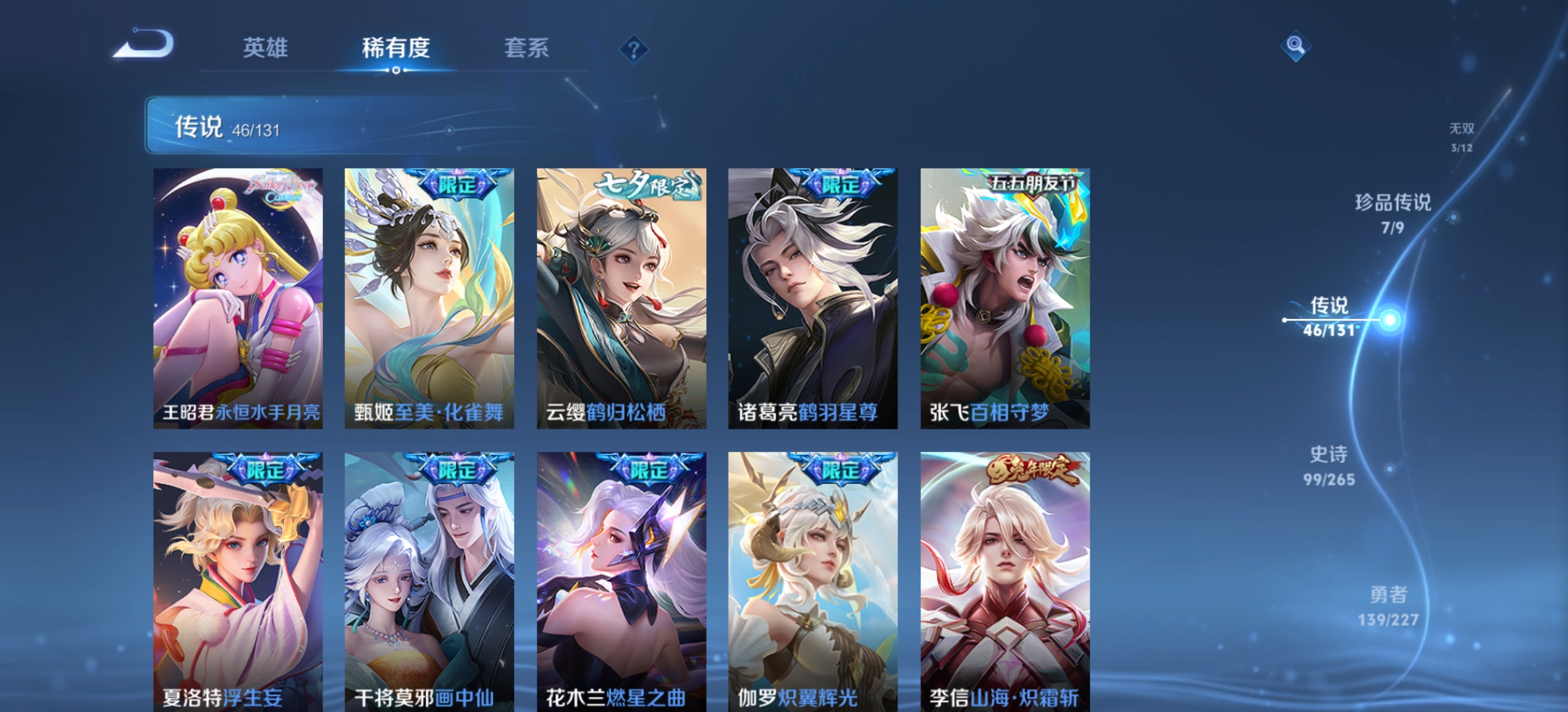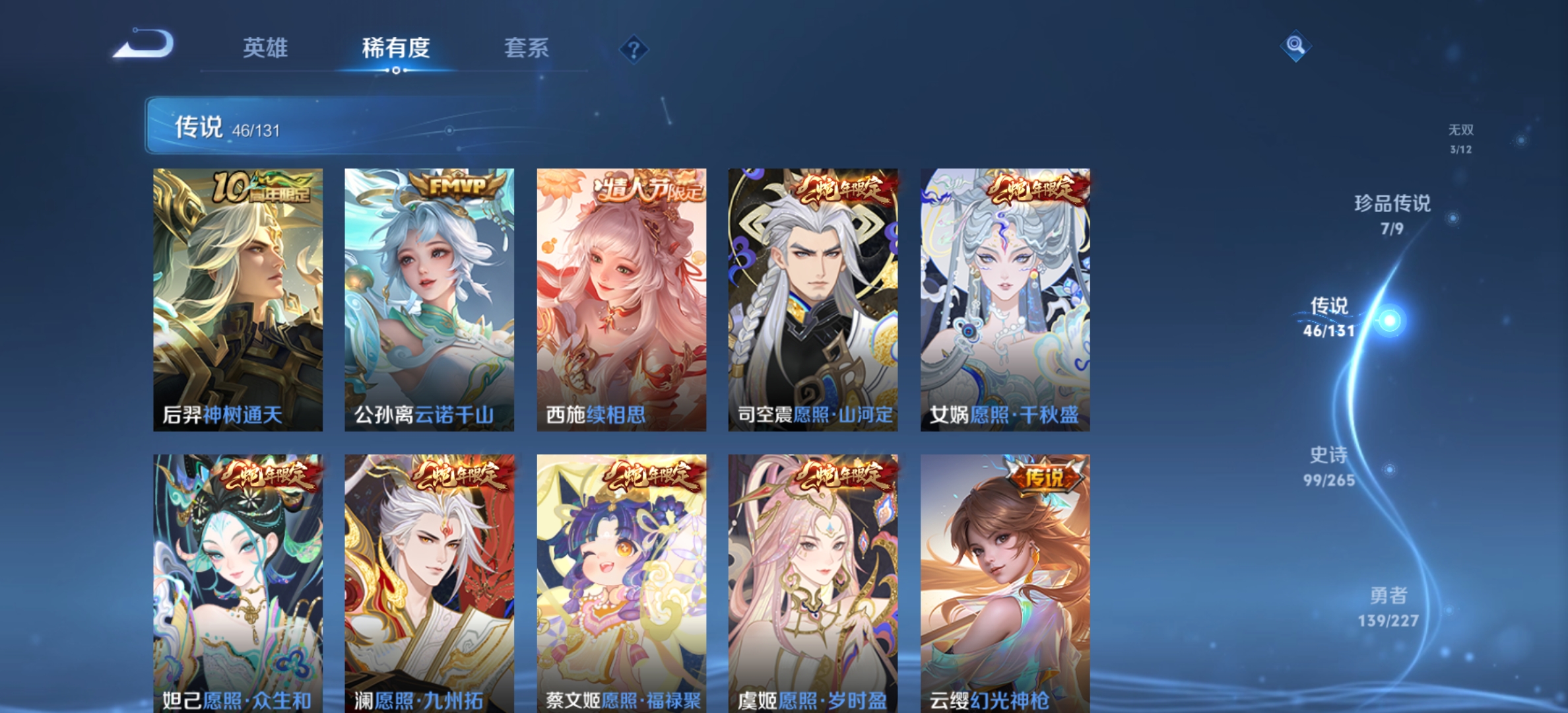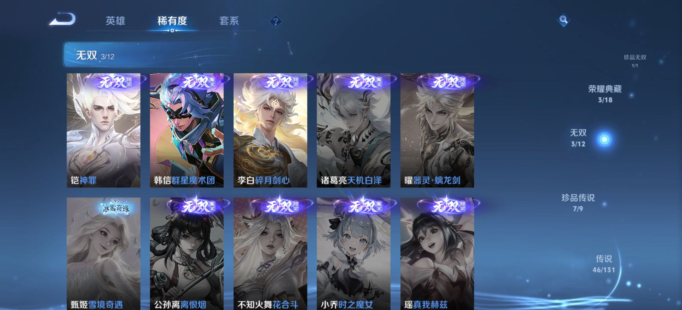 【王者荣耀】【lywz22282】珍品无双1 典藏3 无双3 珍品传说7 传说46 史诗99 英雄127 皮肤370 贵族9级 珍品无双:馥梦繁花__荣耀典藏:神鉴启示录|幻阙歌|最初的交响__无双皮肤:群星魔术团|碎月剑心|神罪__珍品传说:江户川柯南|怪盗基德|器灵·落星盏|大耳狗之梦|酷洛米之心|朽木白哉|黑崎一护__传说皮肤:鸣野蒿|前尘镜|挚爱花嫁|启示之音|炽阳神光|启明星使|地狱之眼|仲夏夜之梦|黄金狮子座|猫影幻舞|云鹰飞将|冠军飞将|淬星耀世|炽翼辉光|绯月行|浮生妄|鹤羽星尊|画中仙|孙尚香-末日机甲|马超-琥珀纪元|祈雪灵祝|燃星之曲|霜月吟|太华|貂蝉-曦玄引|永恒水手月亮|逐花归海|乘龙·淬吴钩|乘龙·铭钟鼎|乘龙·问璇玑|云缨-鹤归松栖|山海·炽霜斩|朵莉亚-心动手记|至美·化雀舞|张飞-百相守梦|玄雷天君|幻光神呛|愿照·岁时盈|愿照·山河定|愿照·九州拓|愿照·众生和|愿照·福禄聚|愿照·千秋盛|续相思|云诺千山|神树通天__稀有限定:寅虎·心曲|白晶晶|一生所爱|孙行者|玉兔公主|李小龙|神器·万象笔|拒霜思|暗影游猎|百解令|嫦娥-如梦令|大漠名商|繁星吟游|古海寻踪|海滩派对|海盐诗旅|皇家上将|混沌棋|剑破天穹|江河有灵|美猴王|魔法小厨娘|魔术师|奇幻香踪|擒涛扼浪|青焰无极|驱傩正仪|燃音魔法|探海日志|醍醐杖|天狼溯光者|天穹祈灯|妄想食味|星界游侠|演武夺筹|阴阳师|驭风魔法|云间偶戏|逐梦之音|暗隐猎兽者|白蛇|缤纷独角兽|冰冠公主|冰雪圆舞曲|乘风破浪|乘龙·聚宝船|乘龙·忆丹青|地狱岩魂|伽罗-琥珀纪元|功夫厨神|鬼剑武藏|唤灵魅影|箭羽风息|节奏热浪|金属风暴|乐园奇幻夜|李元芳-蔬乡物语|吕布-末日机甲|玫瑰异探|魅力维加斯|魅语|女仆咖啡|偶像歌手|奇遇舞章|青蛇|上官婉儿-群星魔术团|圣诞狂欢|圣诞恋歌|诗语江南|鲁班七号-蔬乡物语|水果甜心|水晶猎龙者|孙策-猫狗日记|天才门将|晚萤|摇滚巨星|鹰眼统帅|幽灵船长|遇见神鹿|至美·乘鲤谣|逐浪之夏|紫霞仙子|赵怀真-鹤归松栖|百里守约-百相守梦|老夫子-百相守梦|谪仙醉月|噬灭天穹|炽弈燎原|破空之剑|东方月初|涂山红红|蔡文姬-夏日便利店|虞姬-夏日便利店|天穹之誓|浮光幕影|海诺-心动手记|曙光守护者|心灵战警|千年之狐|关羽-百相守梦|刘备-百相守梦|舞动绿茵|特工魅影|心灵骇客|茶境仙|谧流熔炉|化蝶舞|云中旅人|玲珑珍味|孙悟空-神迹守卫|流音漫舞|访茗客|暖冬·兔眠|灵卜魔法|苍威无极|刘禅-鸭鸭历险记|沈梦溪-鸭鸭历险记|龙之律动|布丁狗之约|虚灵犬护|布丁狗之誓|小牛鸭|石田雨龙|逆浪荇歌|孙策-百相守梦|周瑜-百相守梦|黄忠-百相守梦|织梦人|涂山容容|光弋星穹|往忆晖光|荣光之誓|巫礼祀神|鹤鸣心笺__优质皮肤:尼罗河女神|一千零一夜|创世神祝|年年有余|埃及法老|孤猎|熊喵少女|午夜歌剧院|露花倒影|未来旅行|海之征途|碧珀绯影|秩序猎龙将|冰刃幻境|森|超能战警|英喵野望|维京掠夺者|海军大将|绯红之刃|踏雪寻梅|启蛰|战争骑士|伊势巫女|画中游|生化警戒|威尼斯狂欢|第七人偶|潮流仙人|芝加哥教父|街头旋风|绝影神呛|地府判官|荷鲁斯之眼|幸存者|赤焰之缨|福禄兄弟|隐刃|前尘|特种部队|精灵王|剑舞者|范海辛|龙域领主|爱与和平|占星师|花间舞|魇语军师|极冰防御线|花见巫女|东海龙王|蔷薇王座|灼热之刃|精准探案法|圣殿之光|帝国元帅|战争女神|霓裳曲|加勒比小姐|阿摩司公爵|异域舞娘|精灵公主|修竹墨客|万圣前夜|动物派对|长夏之忆|功夫炙烤|潮玩探月行|秘密基地|次元突破|鲨炮海盗猫|野性能量|丁香结|虹云星官|守护之力|坚韧之力|幻乐之宴|功夫老勺|命运角斗场|海滩丽影|阿尔法小队|兔女郎|死亡骑士|黄金武士|少女阿狸|天使之翼|玩偶对对碰|红桃皇后|忍·炎影|爱心护理|街头霸王|教廷特使|鸿运当头|金色潮汐|漠中幻影|时空谍影|决胜大满贯|王牌新星|零食大作战|西部游侠|太极少年|乐园追猎者|牛运亨通|幻泉雾影|危途狂花|契约魔法|潮玩牛仔|重装意志|次元傲视|无尽征程|黑桃队长|幽兰居士|拳王|时尚教父|救世之瞳|白色死神|白执事|大发明家|哥特玫瑰|魅影绮裳|西施-雪境奇遇|金福满堂|星梦巡礼|灵卦秘语|爆裂喵拳|猪八戒-西部大镖客|掌控之力|雾都夜雨|逐霄战戟|铁骨偃魂|纽约教父|龙腾万里|乱世虎臣|敏锐之力|西施-归虚梦演|孙悟空-西部大镖客|牛魔-西部大镖客|鲁班大师-归虚梦演|热血海滩|龙舞盛年|乓乓大师|五福同心|猎兽之王|蒙犽-归虚梦演|万事如意|曜-归虚梦演|太乙真人-圆桌骑士|沉稳之力|程咬金-群星魔术团|花好人间|熔金海岸|万象初新|潮玩骑兵|苍林狼骑|劲辣红锅|特工战影|妄想特派|秘证寻踪|春野闲踪|玫蓝誓约|命运加冕|潮玩士官长|小满鸭|死霸装|无双福将|锦麟游梦|踏浪烽翎|戏梦巡演|落日弦歌|克喵|哪吒-罗小黑战记|张良-罗小黑战记|径山谋武|逐霄之志__贵族等级:贵族9级__王者段位:至尊星耀2限定天幕 59按键 4星传说 贵族9 貂蝉珍品无双7珍品5典藏1无双