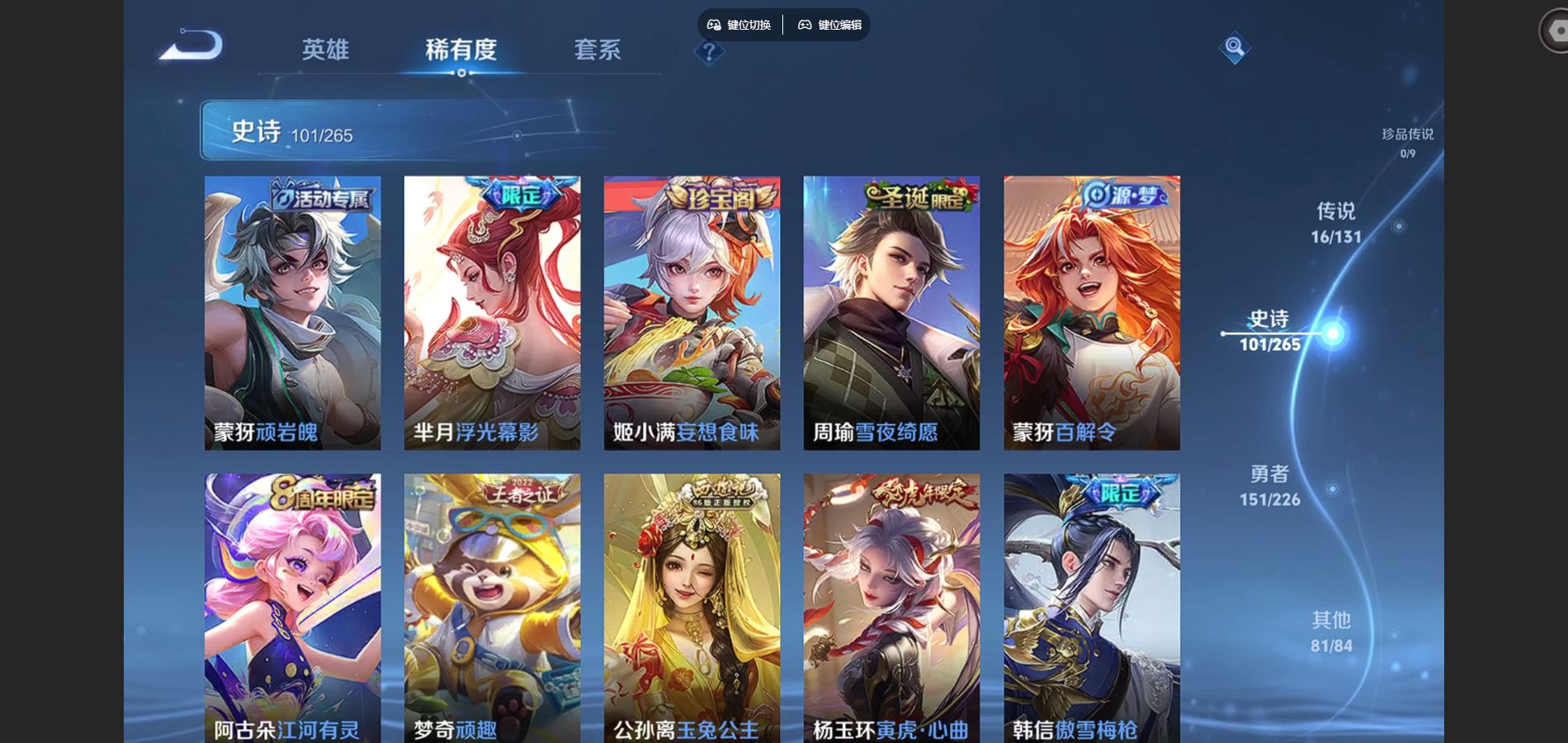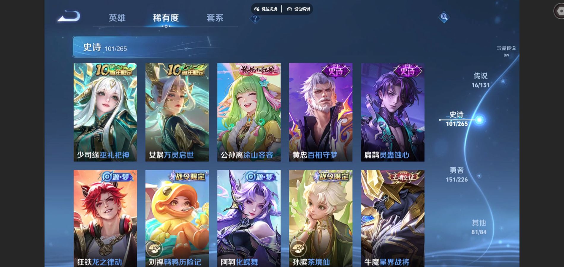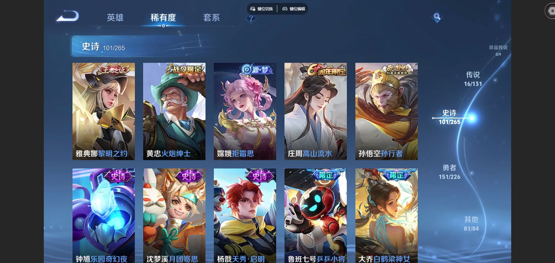 2290983-背包1水晶未兑换 352皮肤4典藏16传说 王者印记13 打野17段 对抗路19段 3星传说 寅虎焰心 星际治安官 未来机甲【全皮英雄】 阿轲全皮 刘邦全皮 钟馗全皮 影全皮 【典藏】 武则天 全息碎影 大秦宣太后 弑呛猎影 【传说】 神树通天 愿照众生和 鸣野蒿 启明星使 时雨天司 寅虎瑞焰 武圣 李 零号赤焰 遇见胡旋 游龙清影 地狱火 久胜战神 超时空战士男 海洋之