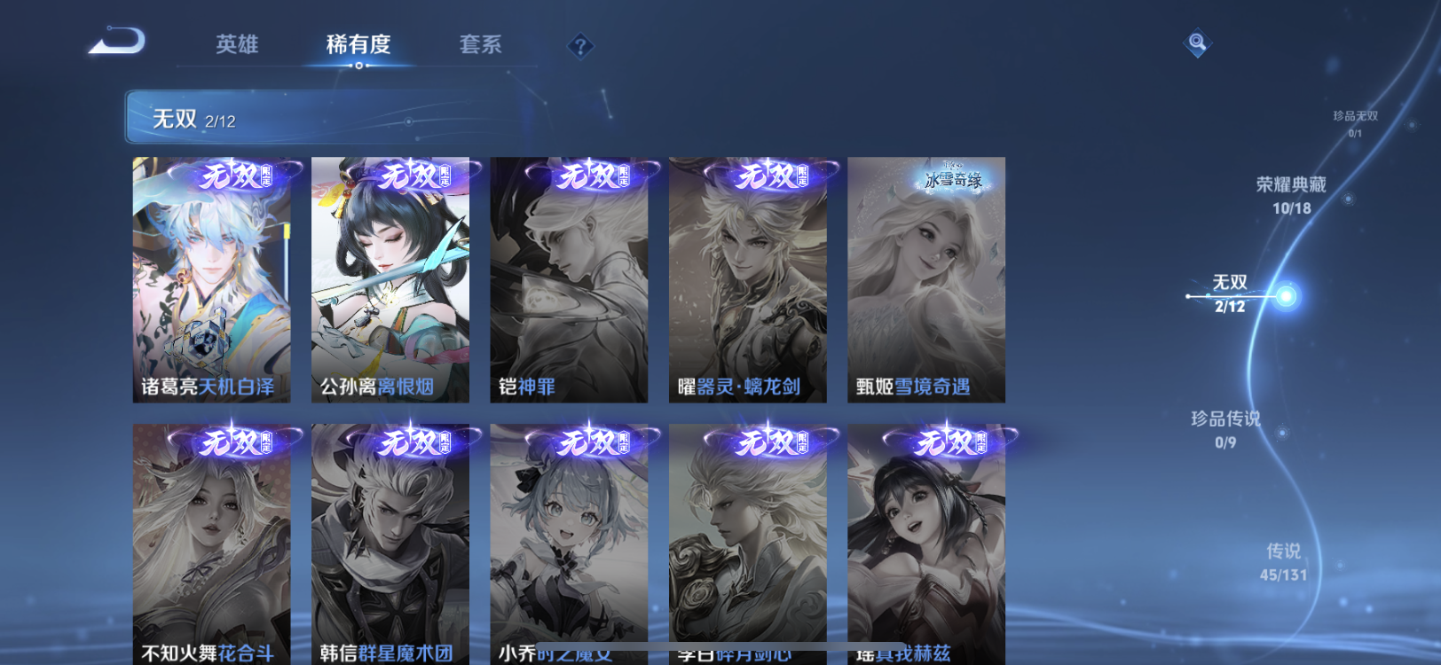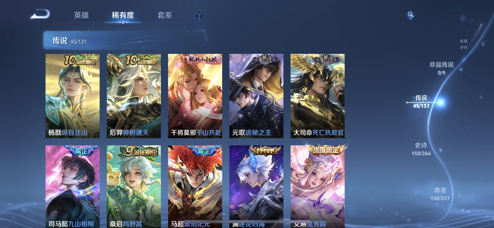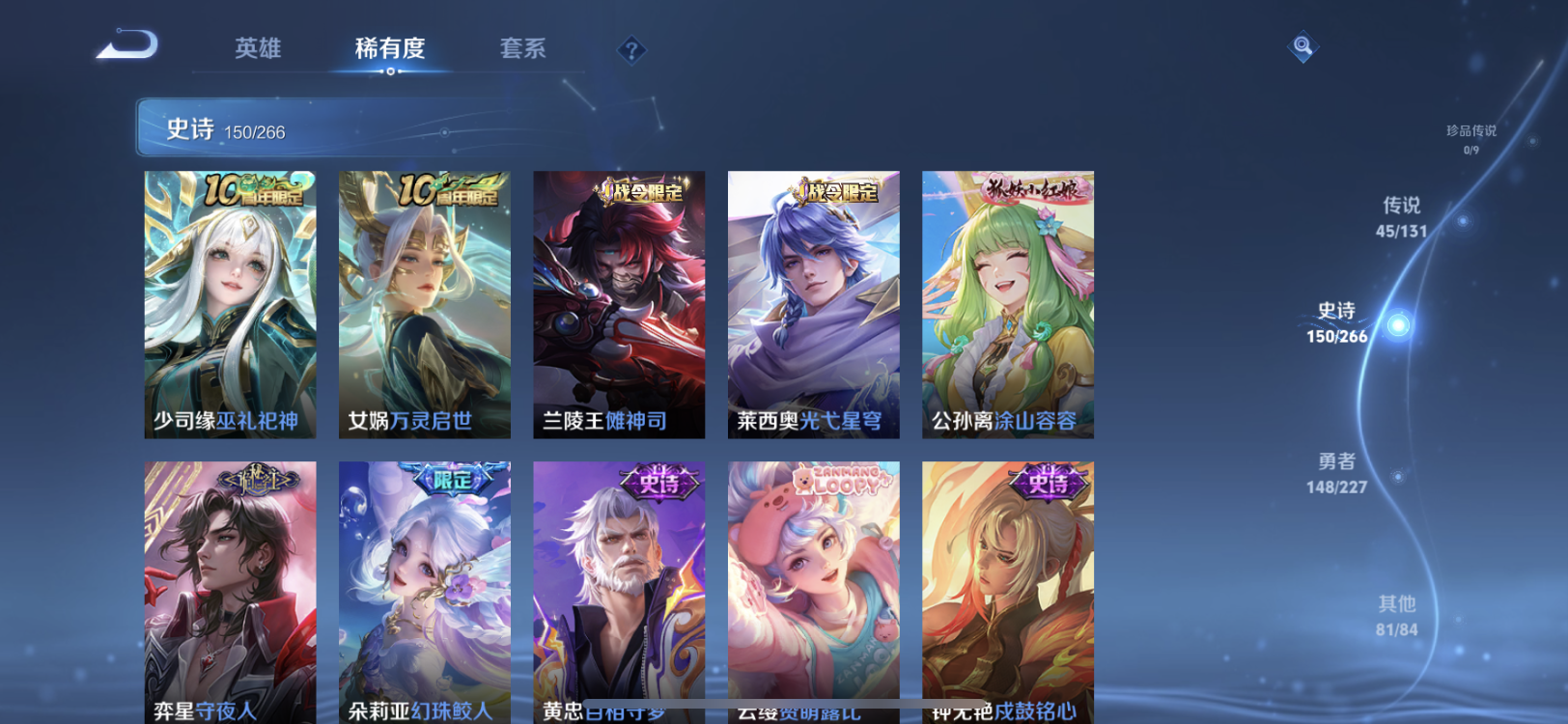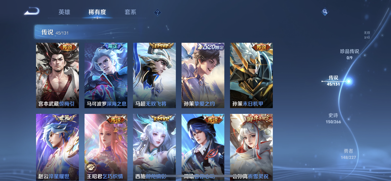 【王者荣耀】【lywz22135】珍品无双0 典藏10 无双2 珍品传说0 传说45 史诗149 英雄127 皮肤436 贵族10级 荣耀典藏:无限飓风号|全息碎影|大秦宣太后|银白咏叹调|赤影疾锋|幻阙歌|活力突击|九霄神辉|鸣剑·曳影|星域神启__无双皮肤:离恨烟|天机白泽__传说皮肤:鸣野蒿|深海之息|无双飞将|挚爱之约|绛天战甲|炽阳神光|启明星使|胖达荣荣|地狱火|孙策-末日机甲|仲夏夜之梦|久胜战神|黄金狮子座|狄仁杰-超时空战士|黄金白羊座|猫影幻舞|刘备-时之恋人|一念神魔|云鹰飞将|冠军飞将|游龙清影|乞巧织情|淬星耀世|孙尚香-末日机甲|白虎志|凤求凰|惊梅引|零号·赤焰|马超-琥珀纪元|祈雪灵祝|时雨天司|太华|天魔缭乱|武陵仙君|武圣|永曜之星|周瑜-音你心动|逐花归海|觅芳踪|九山相柳|死亡执政官|诡秘之主|千山共赴|神树通天|纵目迁山__稀有限定:奔雷神使|御风骁将|白晶晶|至尊宝|梅西|瑞麟志|青龙志|玄武志|朱雀志|虞姬-霸王别姬|大圣娶亲|一生所爱|岱宗|玄嵩|幽恒|飞衡|蜜橘之夏|虎魄|神威|烈魂|龙胆|白鹤梁神女|孙行者|猪悟能|李小龙|梁祝|山海·碧波行|狮舞东方|唐三藏|拒霜思|暗影游猎|冰锋战神|冰霜恋舞曲|冰霜神祇|嫦娥-如梦令|大漠名商|电玩高手|繁星吟游|凤凰于飞|高山流水|海滩派对|海盐诗旅|航海奇遇记|后羿-如梦令|胡桃异想国|皇家上将|辉光之辰|混沌棋|金庭之子|凯尔特女王|狂想玩偶喵|蓝屏警告|黎明之约|炼金王|迷踪丽影|魔术师|匿光决锋者|匿光启智者|女武神|千军破阵|擒涛扼浪|穷奇|驱傩正仪|荣光圣徽|沙漠行僧|朔风刀|探海日志|醍醐杖|天狼绘梦者|天狼狩猎者|天狼征服者|玩趣恶龙|万华元夜|妄想食味|五谷丰年|午后时光|项羽-霸王别姬|星界游侠|星空之诺|驯魔猎人|演武夺筹|夜都怪侠|疑决卦|阴阳师|吟游魔法|银河之约|遇见飞天|御旌|御銮|原初追逐者|云间偶戏|真爱魔法|逐梦之星|暗夜贵公子|暗夜猫娘|暗隐猎兽者|白龙吟|白蛇|缤纷独角兽|冰冠公主|冰雪圆舞曲|苍穹之光|乘风破浪|大乔-猫狗日记|德古拉伯爵|地狱岩魂|电玩小子|功夫厨神|鬼剑武藏|唤灵魅影|黄金分割率|箭羽风息|节奏热浪|金属风暴|乐园奇幻夜|龙骑士|吕布-末日机甲|魅力维加斯|魅语|梦奇-顽趣|女仆咖啡|偶像歌手|青蛇|赏金猎手|绅士熊喵|圣诞狂欢|圣诞恋歌|诗语江南|水果甜心|水晶猎龙者|孙策-猫狗日记|天才门将|天秀·启明|天秀·音浪|晚萤|赵云-未来纪元|嘻哈天王|星夜王子|雪上飞焰|摇滚巨星|鹰眼统帅|永昼|幽灵船长|遇见神鹿|逐浪之夏|紫霞仙子|老夫子-百相守梦|噬灭天穹|破空之剑|东方月初|涂山红红|顽岩魄|蔡文姬-夏日便利店|虞姬-夏日便利店|天穹之誓|浮光幕影|安琪拉-时之奇旅|修罗|曙光守护者|心灵战警|千年之狐|无限星赏官|舞动绿茵|特工魅影|心灵骇客|狰|烛龙|原初探秘者|重明|云中旅人|玲珑珍味|单词大作战|朔望之晖|钟馗-神迹守卫|孙悟空-神迹守卫|流音漫舞|暖冬·兔眠|夺宝奇兵|圣弓游侠|墨子-神迹守卫|死神来了|华尔街大亨|灵蛊蚀心|龙之律动|孙策-百相守梦|周瑜-百相守梦|戍鼓铭心|赞萌露比|幻珠鲛人|黄忠-百相守梦|守夜人|涂山容容|光弋星穹|傩神司|往忆晖光|荣光之誓|万灵启世|巫礼祀神|鹤鸣心笺__优质皮肤:尼罗河女神|一千零一夜|创世神祝|年年有余|埃及法老|孤猎|木偶奇遇记|熊喵少女|午夜歌剧院|露花倒影|未来旅行|激情绿茵|海之征途|天启骑士|碧珀绯影|秩序猎龙将|锦衣卫|冰刃幻境|森|超能战警|英喵野望|维京掠夺者|海军大将|绯红之刃|踏雪寻梅|启蛰|战争骑士|伊势巫女|画中游|生化警戒|威尼斯狂欢|第七人偶|潮流仙人|芝加哥教父|街头旋风|绝影神呛|地府判官|荷鲁斯之眼|幸存者|赤焰之缨|福禄兄弟|隐刃|前尘|特种部队|三太子|精灵王|剑舞者|范海辛|星航指挥官|龙域领主|爱与和平|占星师|花间舞|魇语军师|极冰防御线|花见巫女|棒球奇才|东海龙王|蔷薇王座|灼热之刃|精准探案法|圣殿之光|帝国元帅|神奇女侠|战争女神|霓裳曲|加勒比小姐|阿摩司公爵|异域舞娘|精灵公主|修竹墨客|万圣前夜|动物派对|绒语心约|暗都幽影|功夫炙烤|潮玩探月行|瓷语鉴心|秘密基地|次元突破|鲨炮海盗猫|野性能量|丁香结|奇妙博物学|虹云星官|科学大爆炸|守护之力|坚韧之力|幻乐之宴|功夫老勺|命运角斗场|幻想奇妙夜|海滩丽影|阿尔法小队|兔女郎|死亡骑士|黄金武士|少女阿狸|天使之翼|玩偶对对碰|宫本武藏-未来纪元|红桃皇后|忍·炎影|爱心护理|街头霸王|教廷特使|金色潮汐|时空谍影|破局者|零食大作战|西部游侠|太极少年|牛运亨通|幻泉雾影|危途狂花|胡桃狂想曲|契约魔法|紫罗兰之誓|重装意志|次元傲视|无尽征程|黑桃队长|制霸全明星|拳王|时尚教父|救世之瞳|白色死神|爱与正义|程咬金-星际陆战队|白执事|大发明家|致命风华|哥特玫瑰|魅影绮裳|星梦巡礼|猪八戒-西部大镖客|缤纷绘卷|掌控之力|逐霄战戟|纽约教父|龙腾万里|霸王丸|乱世虎臣|敏锐之力|西施-归虚梦演|孙悟空-西部大镖客|牛魔-西部大镖客|鲁班大师-归虚梦演|汉昭烈帝|乓乓大师|五福同心|盾山-圆桌骑士|猎兽之王|蒙犽-归虚梦演|万事如意|曜-归虚梦演|唤灵魔甲|太乙真人-圆桌骑士|沉稳之力|赤莲之焰|化身博士|花好人间|熔金海岸|潮玩骑士王|万象初新|蔚蓝守将|特工战影|炽热元素使|无双福将|踏浪烽翎|云械蓝图|克喵|青衿临川|哪吒-罗小黑战记|张良-罗小黑战记|径山谋武