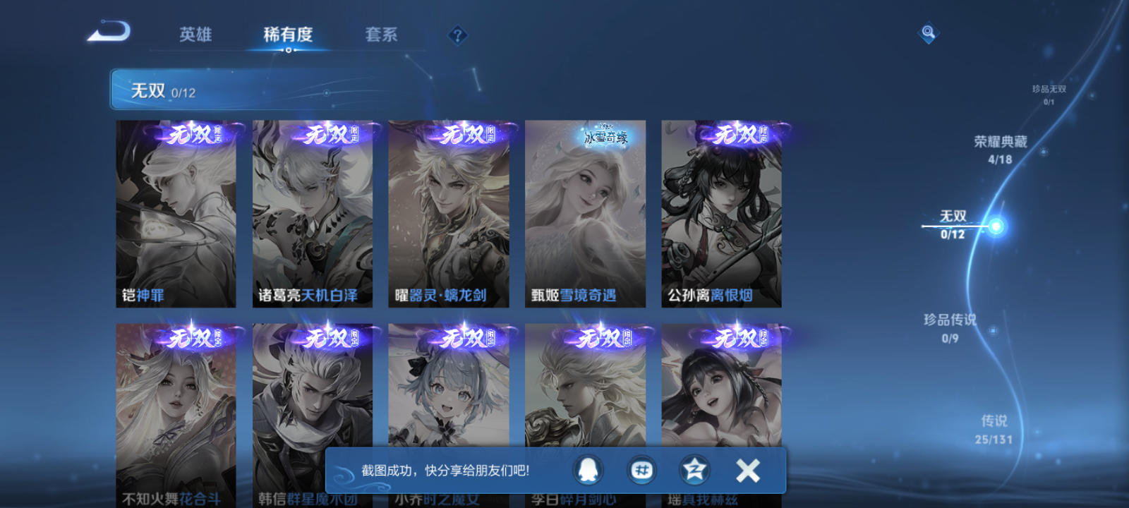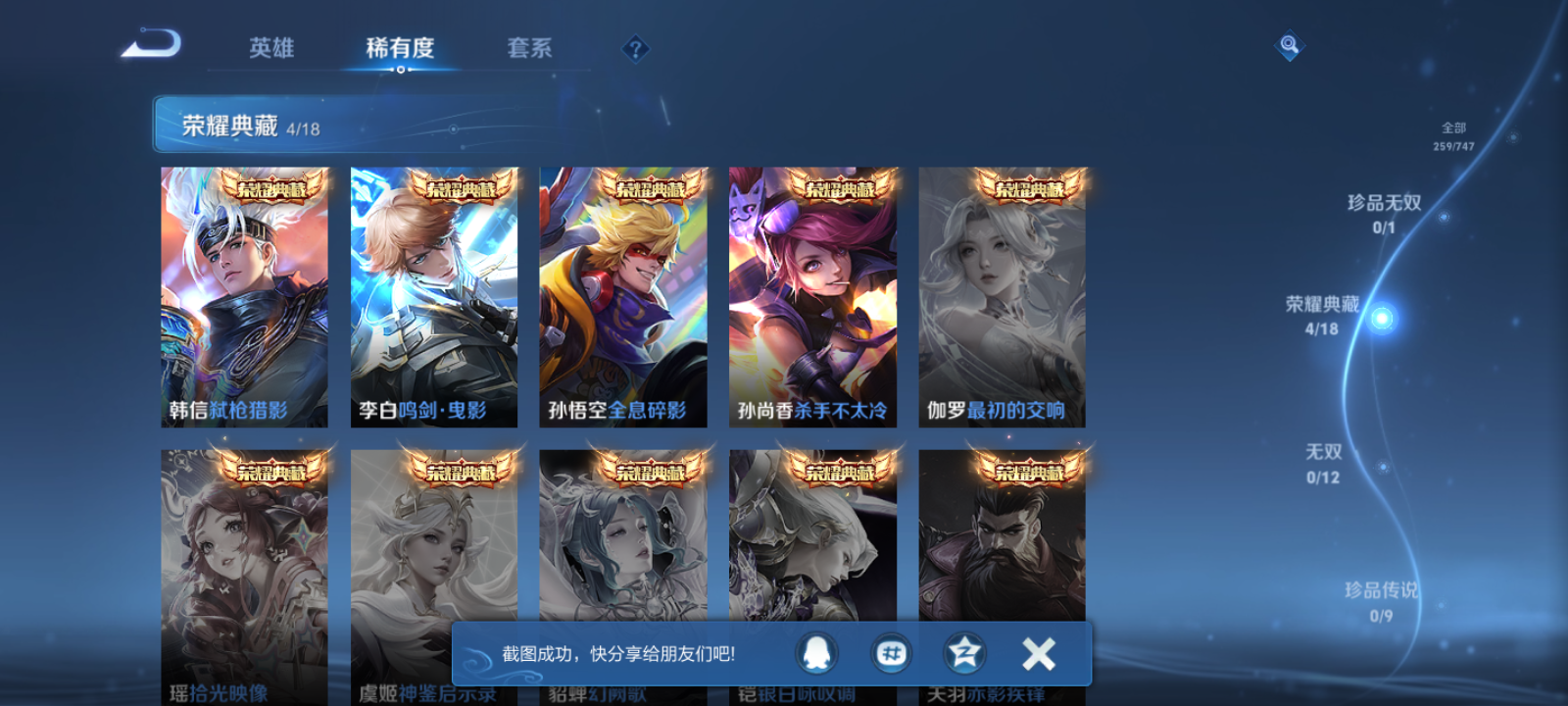 【王者荣耀】【lywz22216】珍品无双0 典藏4 无双0 珍品传说0 传说25 史诗82 英雄125 皮肤259 贵族0级 荣耀典藏:全息碎影|杀手不太冷|鸣剑·曳影|弑呛猎影__传说皮肤:炽阳神光|启明星使|地狱之眼|地狱火|仲夏夜之梦|云霓雀翎|久胜战神|黄金狮子座|狄仁杰-超时空战士|黄金射手座|一念神魔|云鹰飞将|冠军飞将|李|孙尚香-末日机甲|白虎志|零号·赤焰|怒海麟威|祈雪灵祝|时雨天司|太华|武陵仙君|武圣|永曜之星|战鼓燎原__稀有限定:至尊宝|青龙志|朱雀志|虞姬-霸王别姬|大圣娶亲|引擎之心|飞衡|蔷薇恋人|蜜橘之夏|神威|烈魂|青春决赛季|傲雪梅呛|李小龙|梁祝|山海·玄木吟|神器·万象笔|狮舞东方|暗影游猎|白昼王子|冰霜恋舞曲|古海寻踪|海滩派对|海盐诗旅|胡桃异想国|皇家上将|辉光之辰|混沌棋|剑破天穹|金庭之子|决胜骁骑|狂想玩偶喵|蓝屏警告|黎明之约|魔术师|擒涛扼浪|穷奇|驱傩正仪|沙漠行僧|朔风刀|死亡摇滚|饕餮|醍醐杖|天狼绘梦者|天狼狩猎者|天穹祈灯|万华元夜|王者之锤|无心|纤云弄巧|驯魔猎人|演武夺筹|疑决卦|阴阳师|游园惊梦|御旌|御銮|御狮|原初追逐者|云间偶戏|逐梦之光|暗夜猫娘|暗隐猎兽者|暗渊魔法|白龙吟|缤纷独角兽|冰雪圆舞曲|苍穹之光|德古拉伯爵|电玩小子|功夫厨神|鬼剑武藏|唤灵魅影|黄金分割率|箭羽风息|节奏热浪|金属风暴|龙骑士|魅力维加斯|魅语|女仆咖啡|偶像歌手|青蛇|热力回旋|赏金猎手|上官婉儿-群星魔术团|圣诞狂欢|圣诞恋歌|水果甜心|水晶猎龙者|孙策-猫狗日记|晚萤|鹰眼统帅|幽灵船长|逐浪之夏|紫霞仙子|修罗|曙光守护者|千年之狐|孙尚香-时之恋人|无限星赏官|特工魅影|心灵骇客|御霄|狰|烛龙|原初探秘者|重明|云中旅人|单词大作战|朔望之晖|钟馗-神迹守卫|达摩-星际陆战队|仙境爱丽丝__优质皮肤:一千零一夜|年年有余|孤猎|木偶奇遇记|熊喵少女|午夜歌剧院|激情绿茵|海之征途|天启骑士|秩序猎龙将|锦衣卫|冰刃幻境|英喵野望|维京掠夺者|绯红之刃|启蛰|战争骑士|伊势巫女|画中游|威尼斯狂欢|第七人偶|芝加哥教父|街头旋风|绝影神呛|地府判官|荷鲁斯之眼|幸存者|赤焰之缨|福禄兄弟|隐刃|三太子|剑舞者|范海辛|星航指挥官|龙域领主|占星师|花间舞|魇语军师|极冰防御线|花见巫女|棒球奇才|东海龙王|灼热之刃|战争女神|加勒比小姐|阿摩司公爵|异域舞娘|精灵公主|修竹墨客|万圣前夜|潮玩探月行|瓷语鉴心|秘密基地|次元突破|鲨炮海盗猫|野性能量|丁香结|奇妙博物学|科学大爆炸|坚韧之力|功夫老勺|幻想奇妙夜|海滩丽影|阿尔法小队|兔女郎|死亡骑士|黄金武士|少女阿狸|玩偶对对碰|宫本武藏-未来纪元|红桃皇后|忍·炎影|爱心护理|街头霸王|教廷特使|决胜大满贯|契约魔法|重装意志|次元傲视|无尽征程|黑桃队长|进击墨子号|拳王|时尚教父|鲤鱼之梦|救世之瞳|白色死神|爱与正义|程咬金-星际陆战队|白执事|大发明家|致命风华|哥特玫瑰|猪八戒-西部大镖客|缤纷绘卷|掌控之力|纽约教父|龙腾万里|霸王丸|乱世虎臣|敏锐之力|西施-归虚梦演|孙悟空-西部大镖客|牛魔-西部大镖客|汉昭烈帝|猎兽之王|蒙犽-归虚梦演|万事如意|曜-归虚梦演|唤灵魔甲|沉稳之力|赤莲之焰|化身博士|潮玩骑士王|万象初新|炽热元素使__贵族等级:无贵族等级__王者段位:至尊星耀25传说4典藏 鸣剑·曳影,杀手不太冷,全息碎影,弑呛猎影 炽阳神光,李 ,祈雪灵祝,时雨天司,启明星使,零号·赤焰,武圣,地狱之眼,云鹰飞将,一念神魔,黄金狮子座,永曜之星,太华,久胜战神,云霓雀翎,黄金射手座,白虎志,冠军飞将,仲夏夜之梦,超时空战士,武陵仙君,末日机甲,地狱火,战鼓燎原,怒海麟威