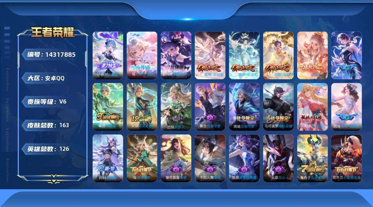 [14317885]贵族6-163皮0典藏7传说1无双2珍品传说-3个英雄全皮 安卓手q439区163皮0典藏7传说1无双2珍品传说v6 营地id1796908455至尊星耀iii【珍品传说皮肤】:酷洛米之心大耳狗之梦【无双皮肤】:时之魔女【传说皮肤】:神树通天续相思愿照·众生和愿照·岁时盈星之鸣奏鸣野蒿愿照·福禄聚【史诗皮肤】:末日机甲幽灵船长冰冠公主万灵启世巫礼祀